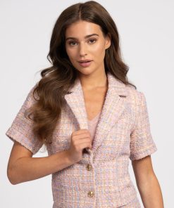 NIKKIE Women’s Cropped Tweed Blazer With Glitter Thread | Flamingo