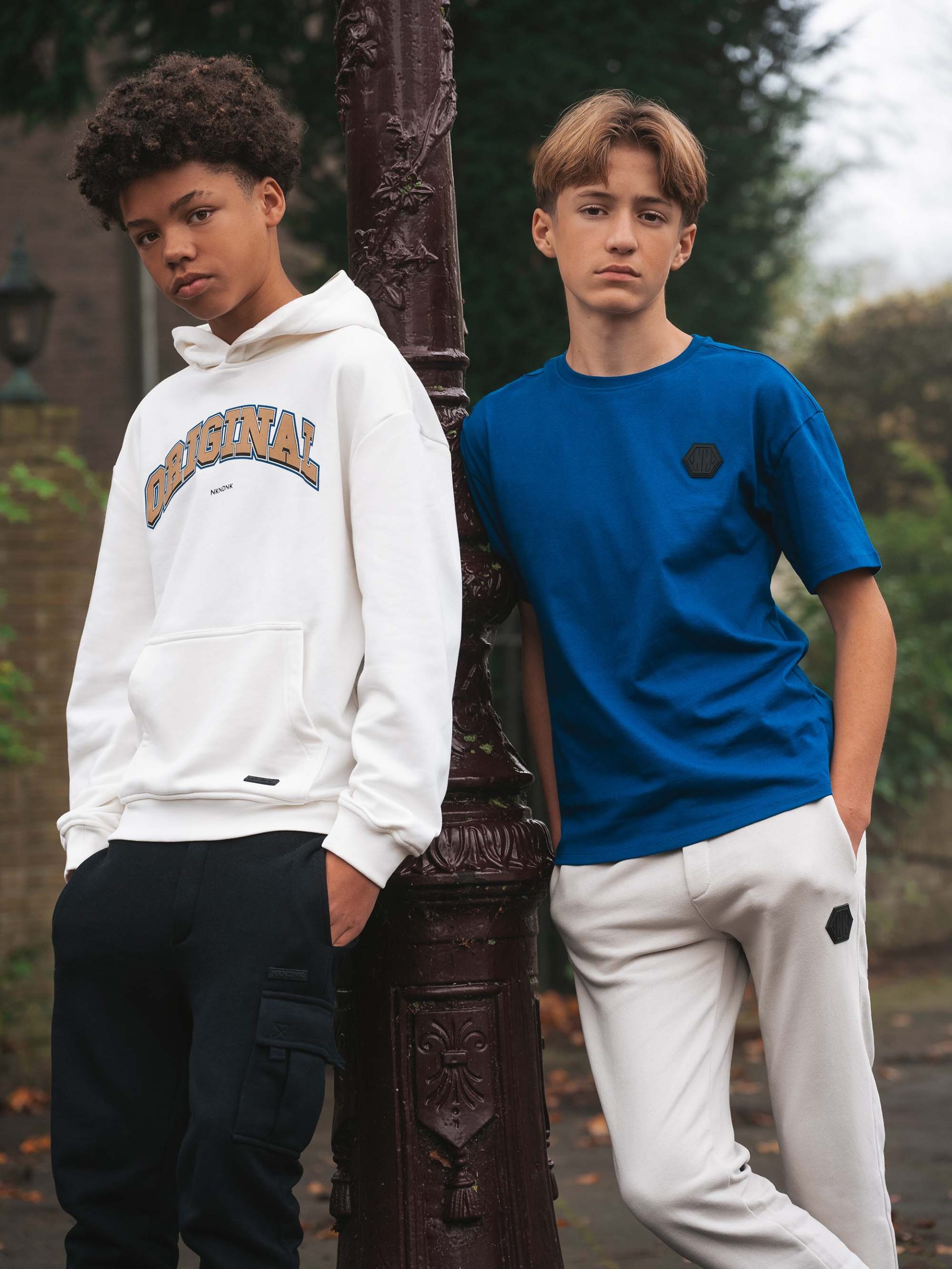 Product descriptionLoose-fitting sweatpants with pockets, elastic waistband and logo patch.