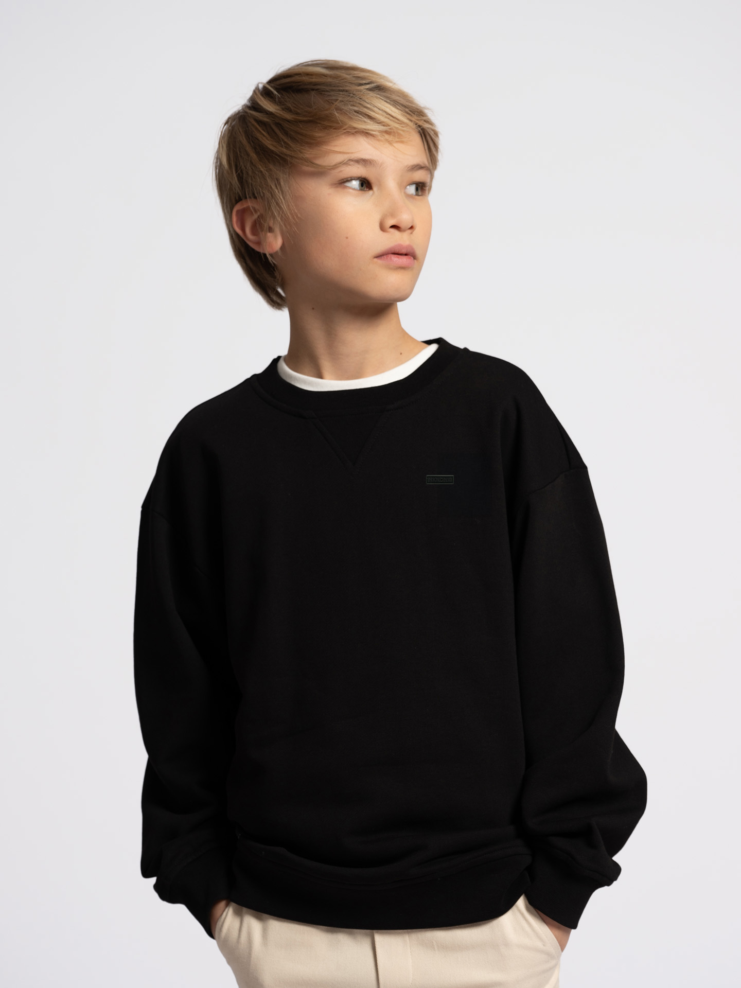 NIKKIE Kid’s Boy Oversized Sweater With Logo Patch | Black