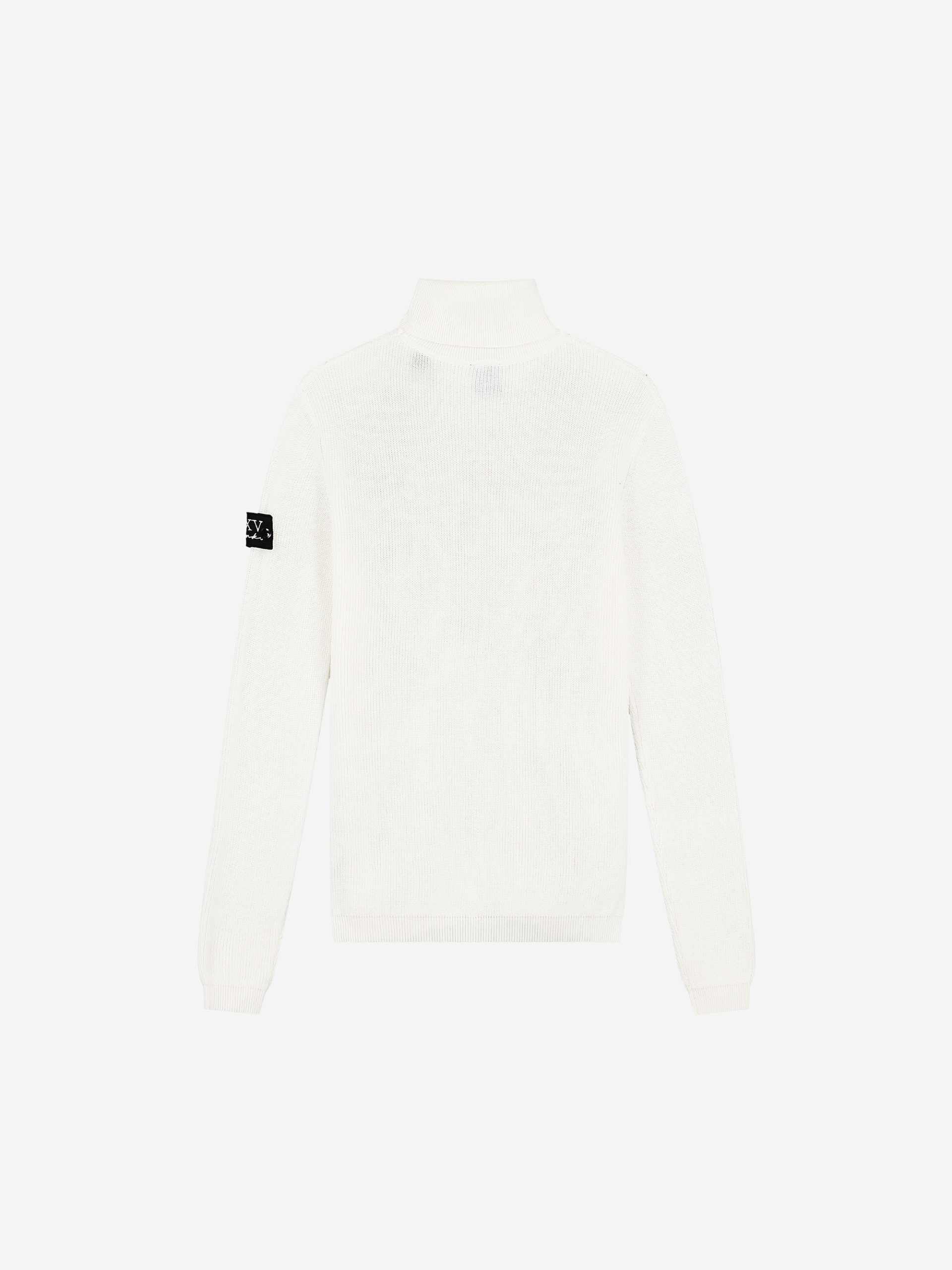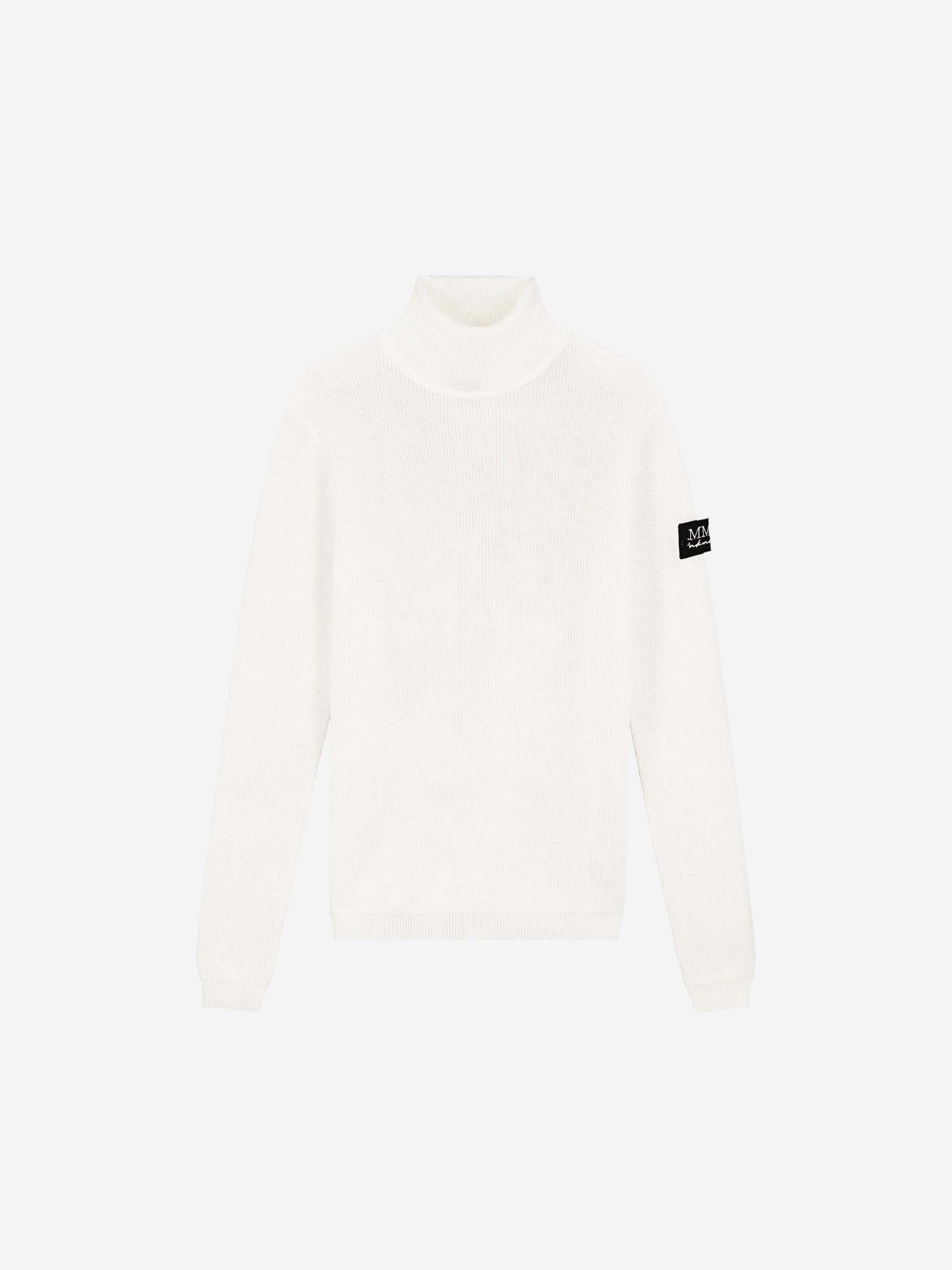 Product descriptionTurtleneck with removable logo on the sleeve. The sweater has a ribbed fabric with stretch and a regular fit.
