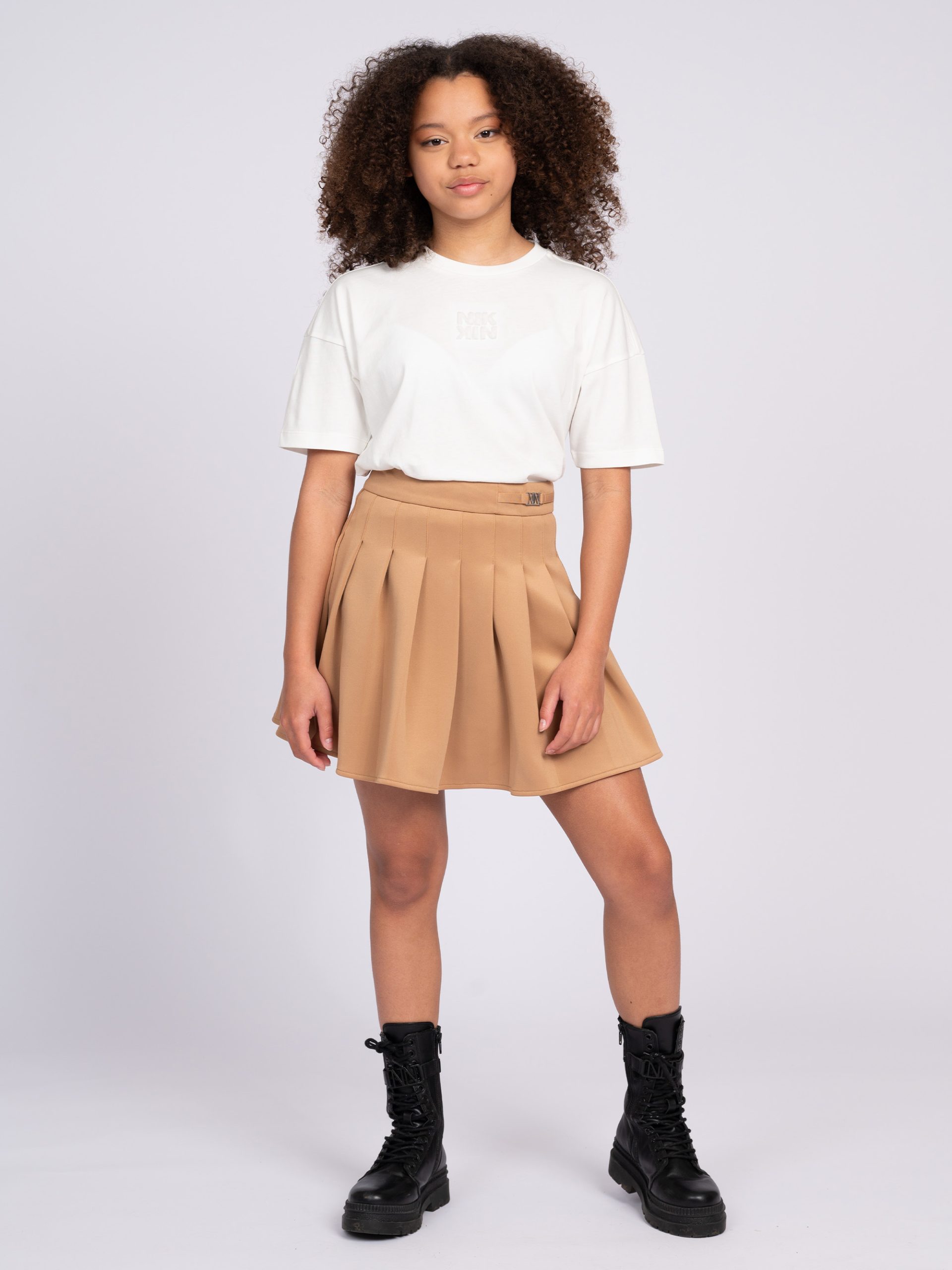 Product descriptionA-line skirt with pleats and a subtle NIK&NIK logo. The skirt has a zipper and no stretch.