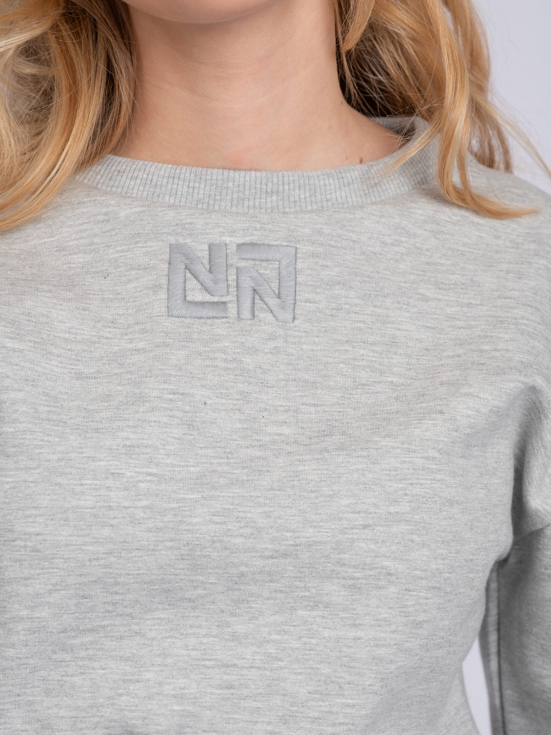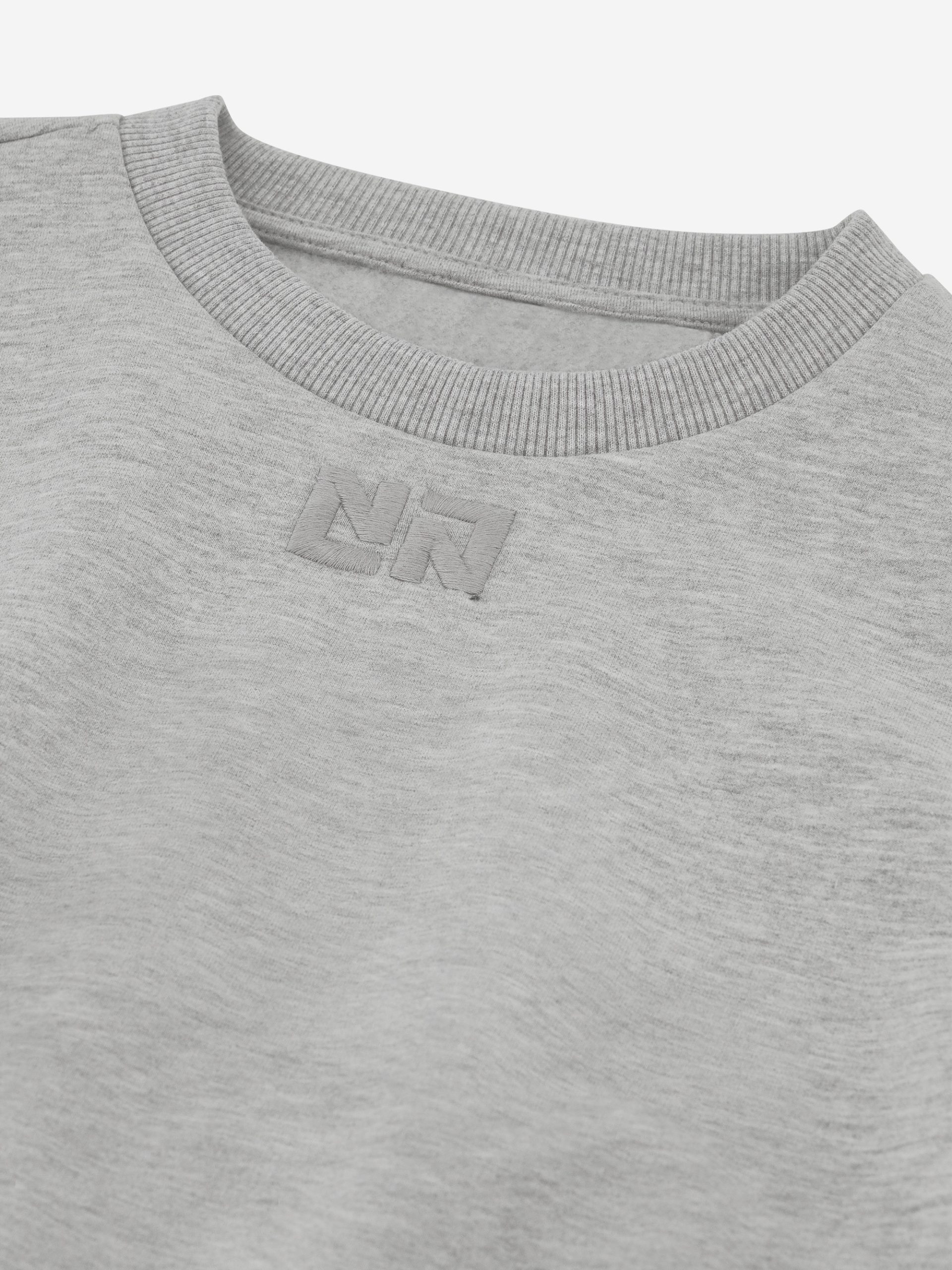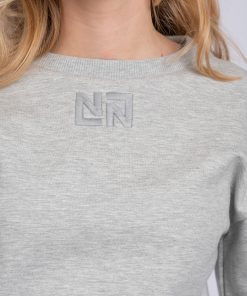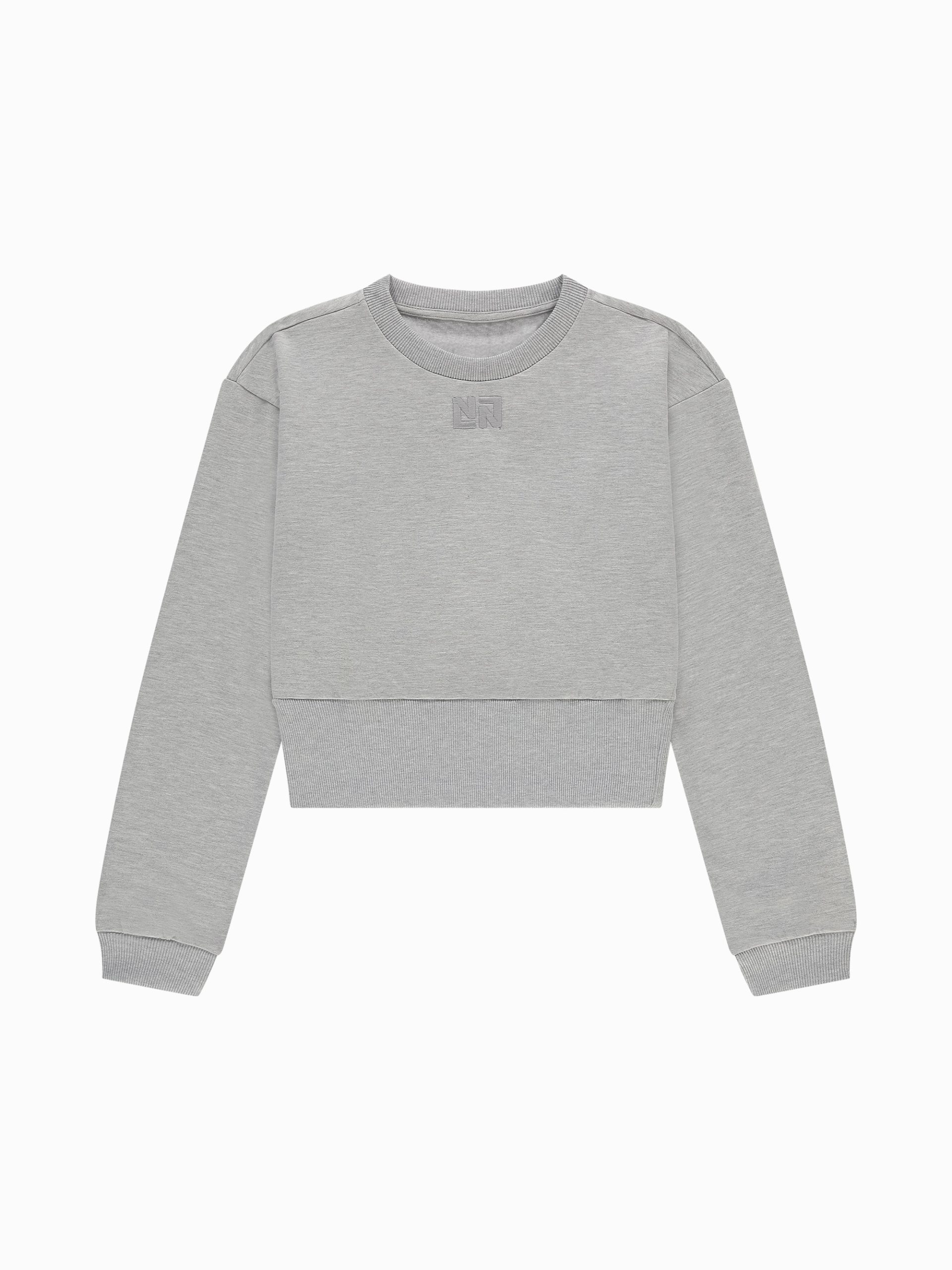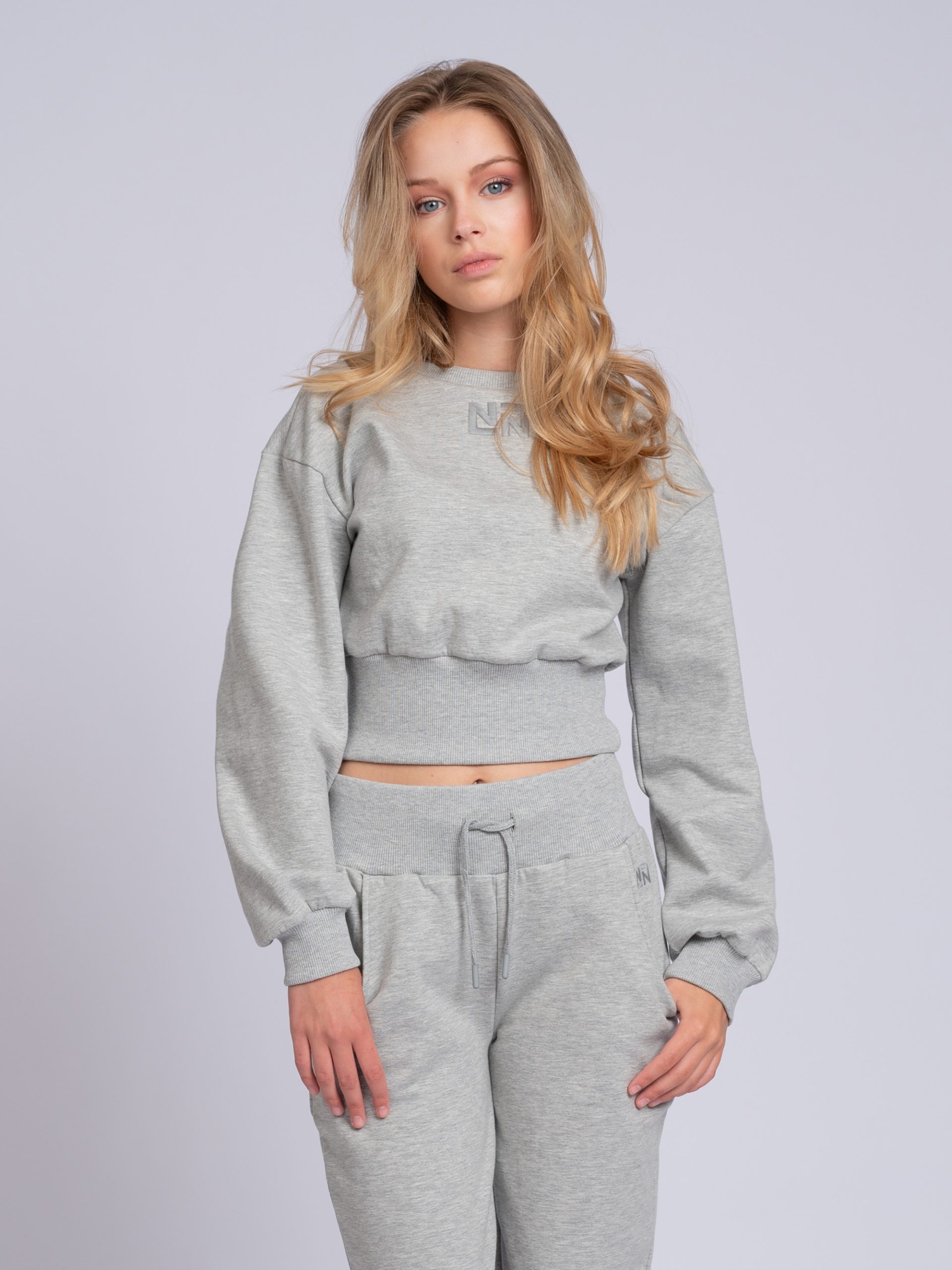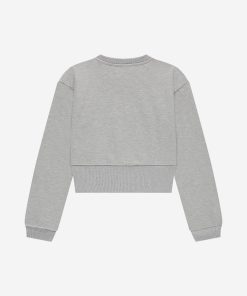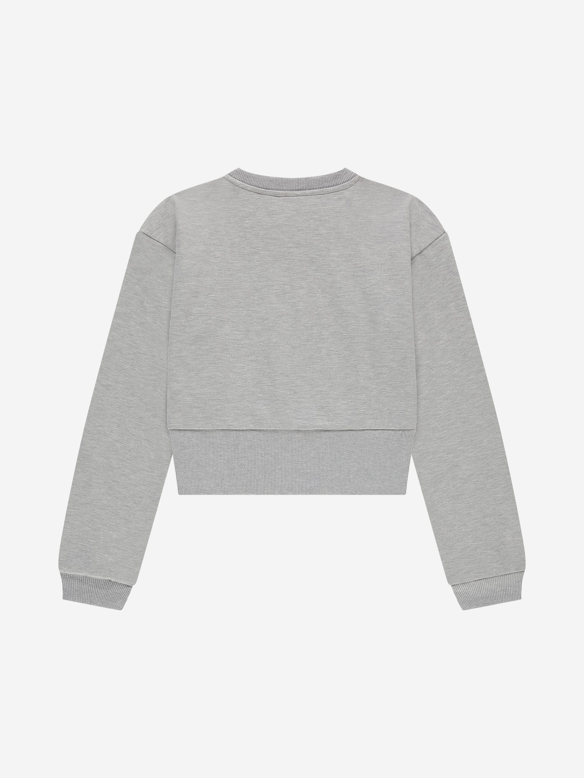 NIKKIE Kid’s Girl Cropped Sweater With Wide Elastic Waistband | Light Grey Melange