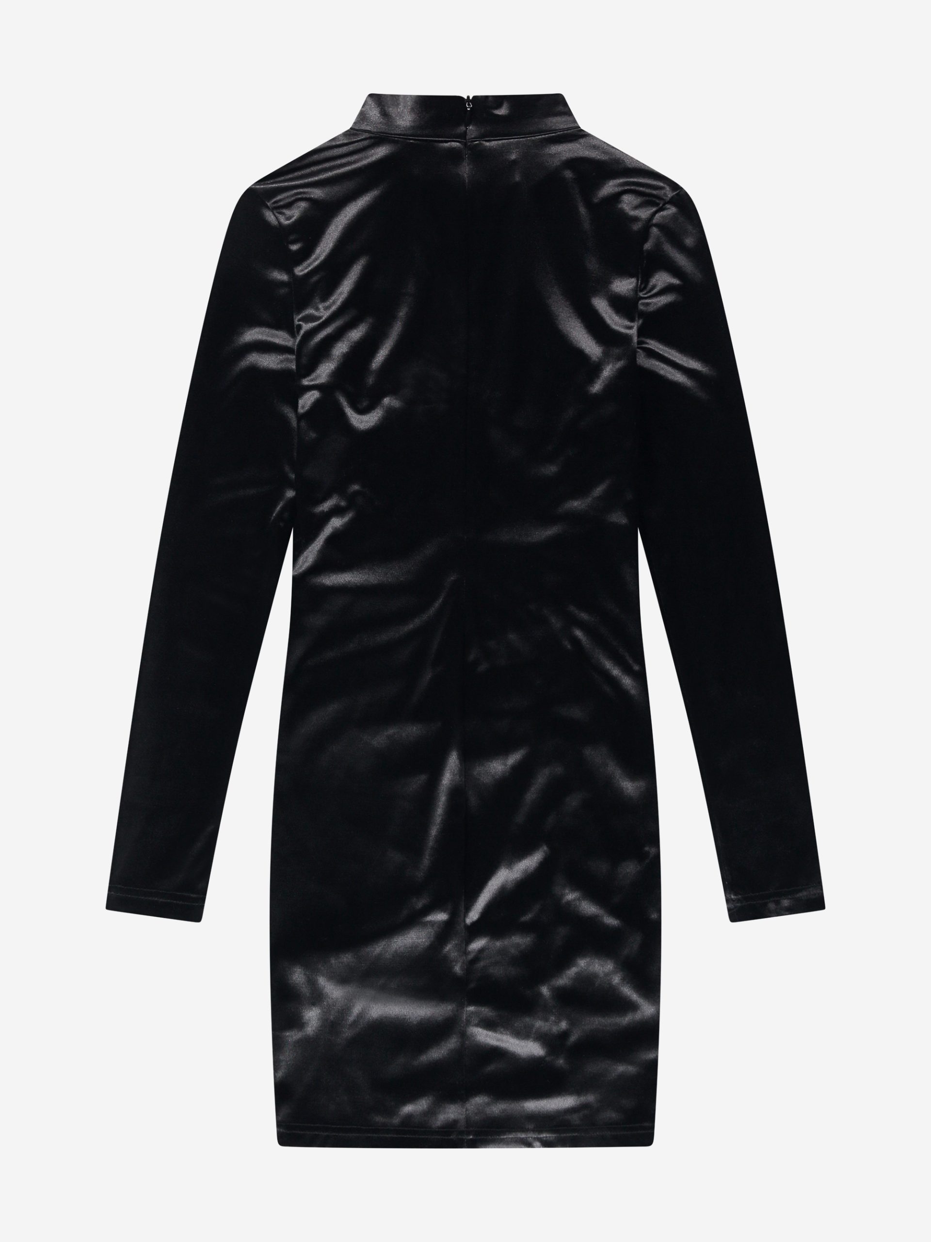 Product descriptionVelvet look dress with a fitted fit, round neck and a draped detail. The dress has a lot of stretch, a zipper on the back and a subtle NIK&NIK logo.