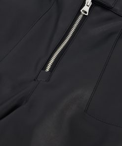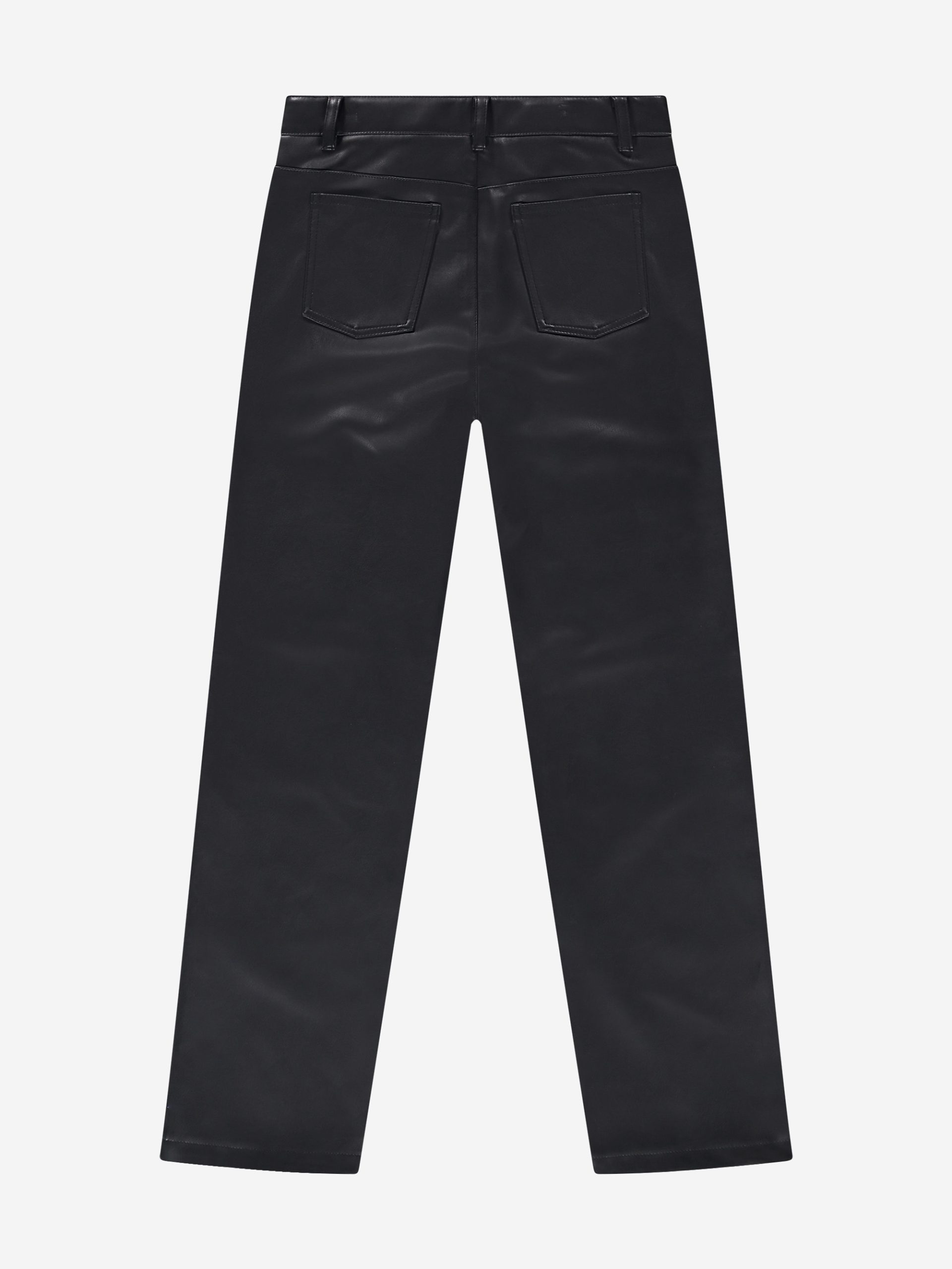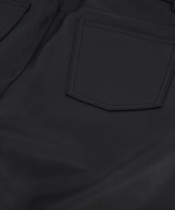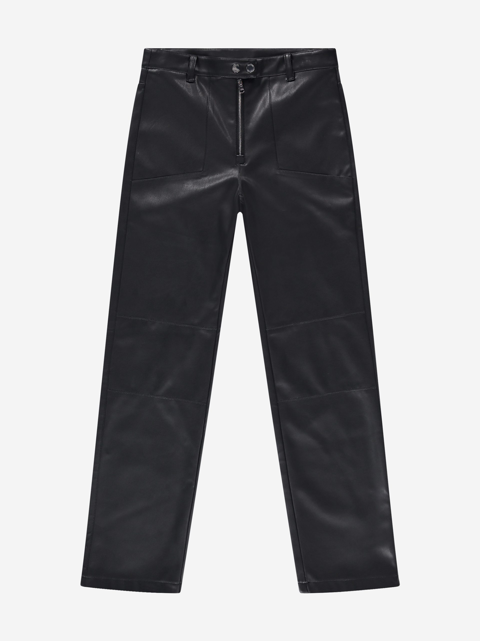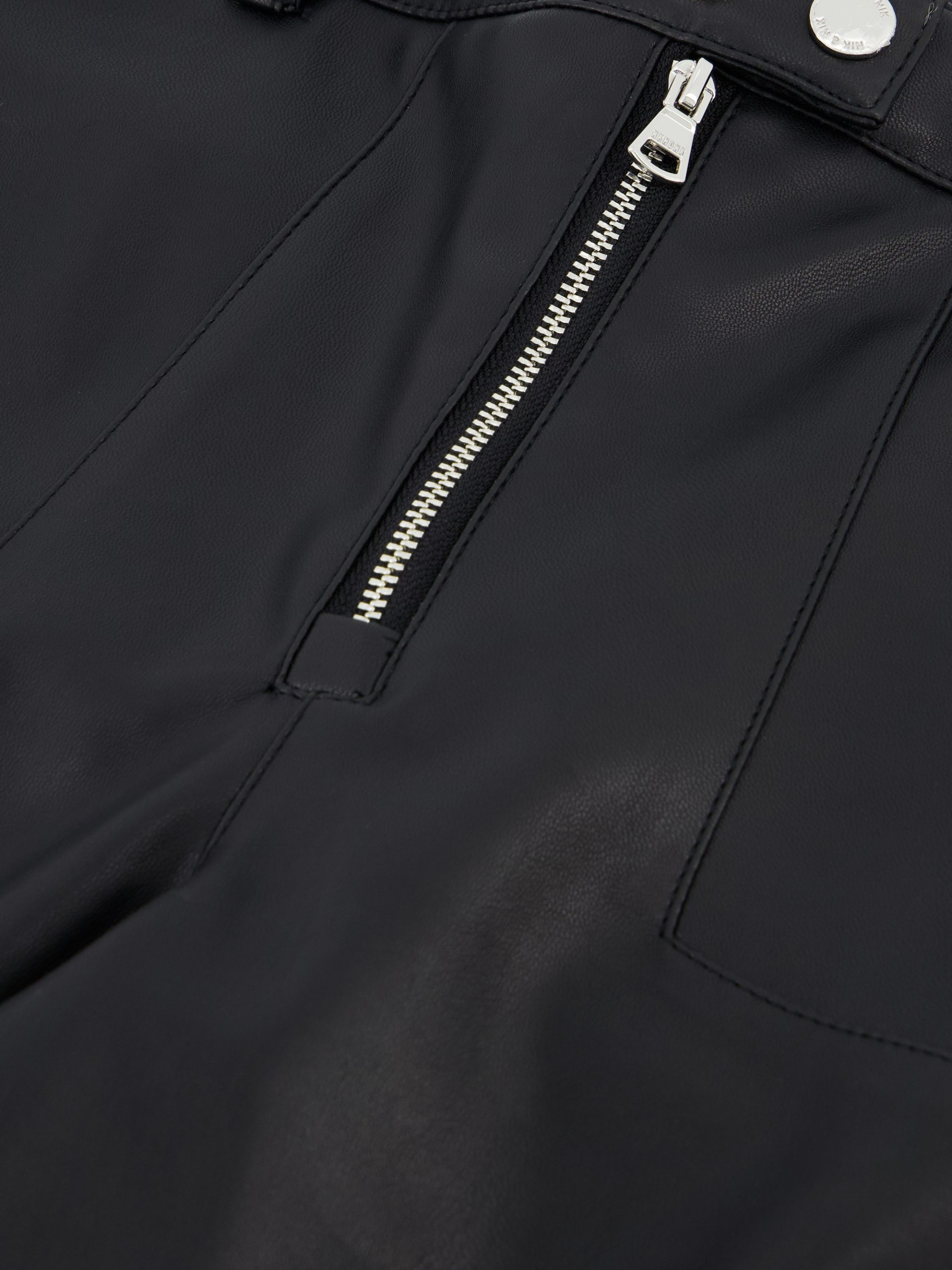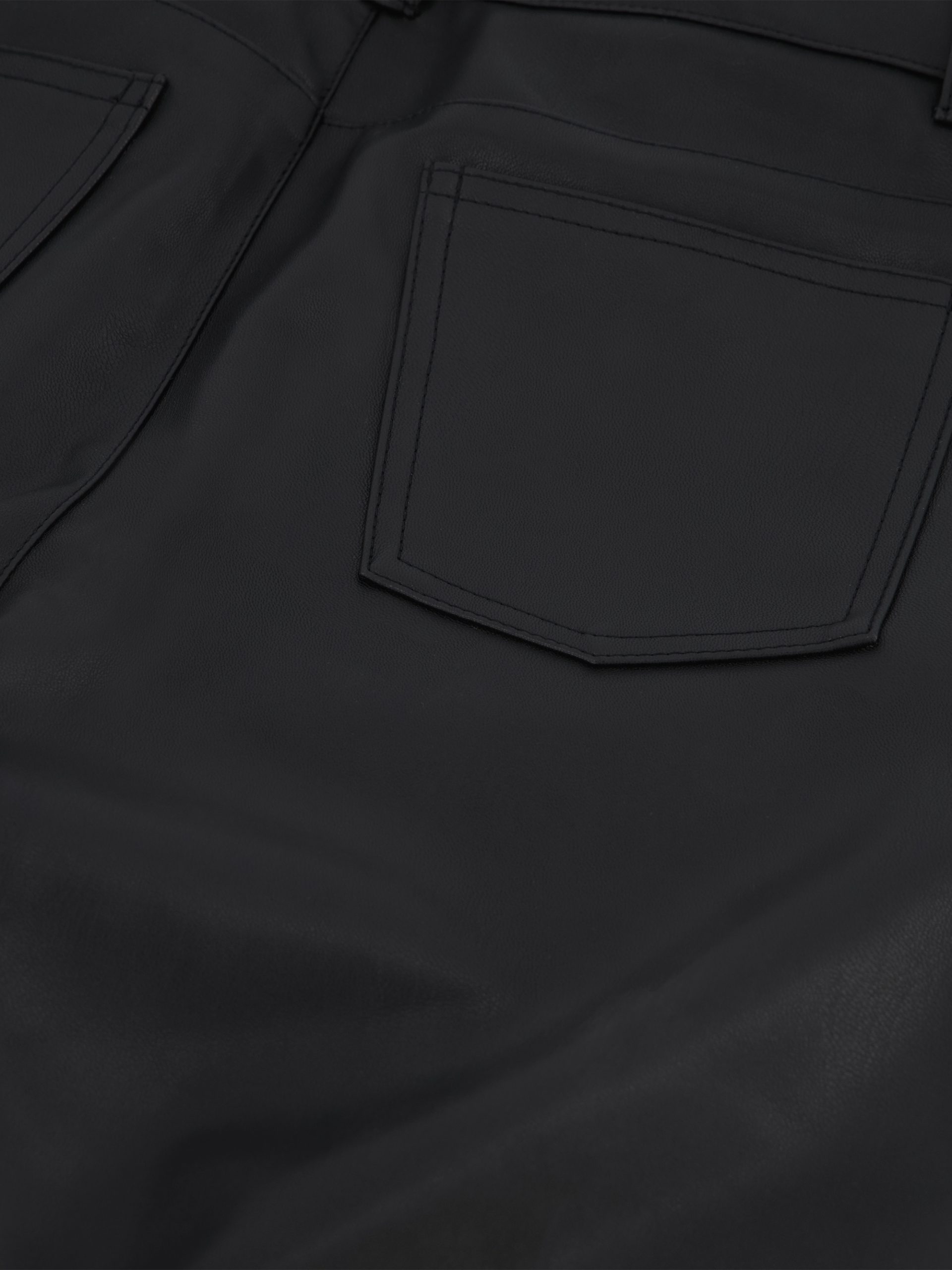 Product descriptionFaux leather pants with pockets at the back, a medium-high waist and a zipper and button closure. The pants have a normal fit and no stretch.