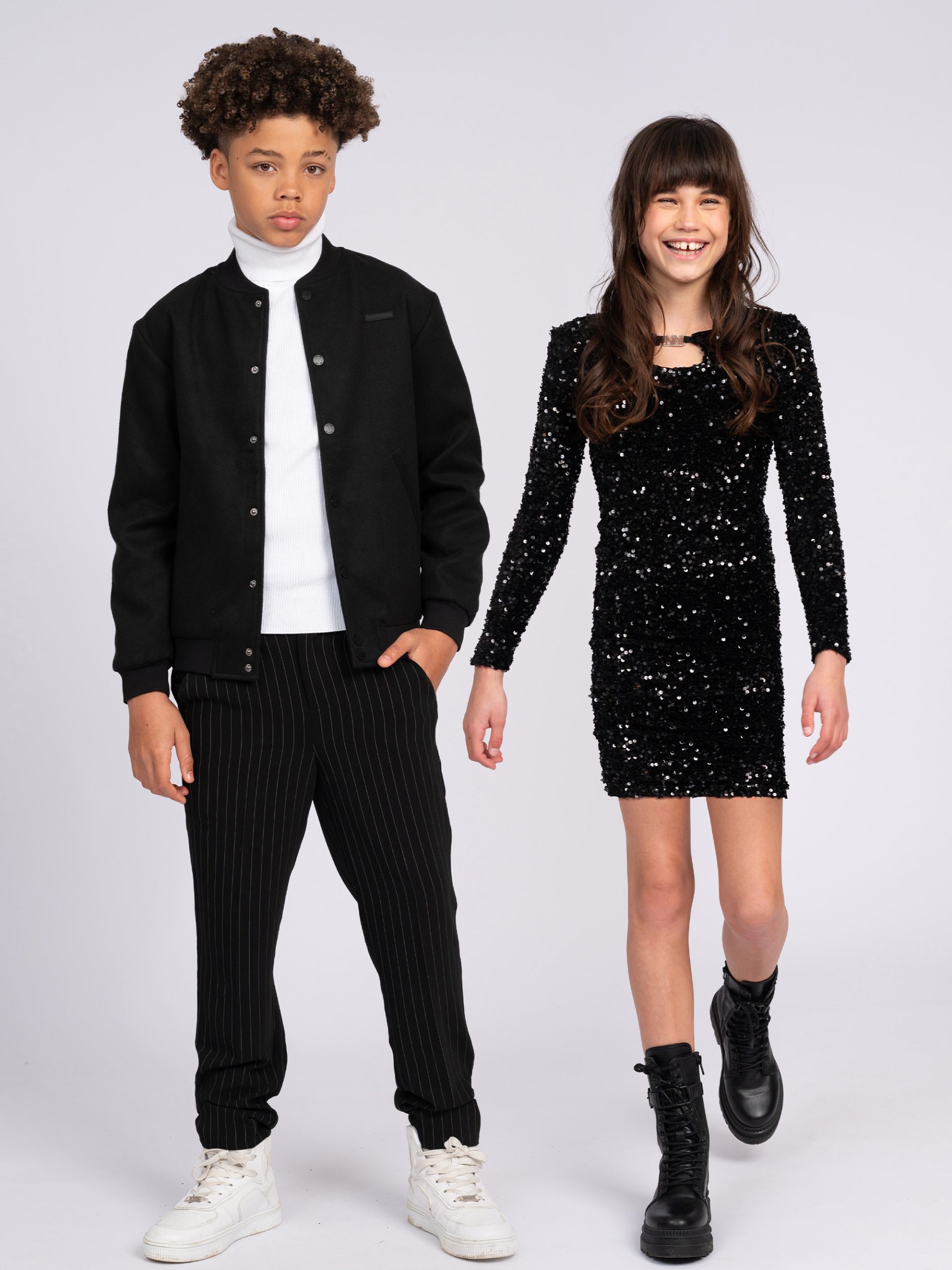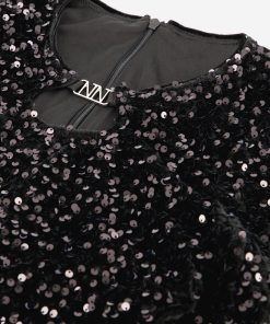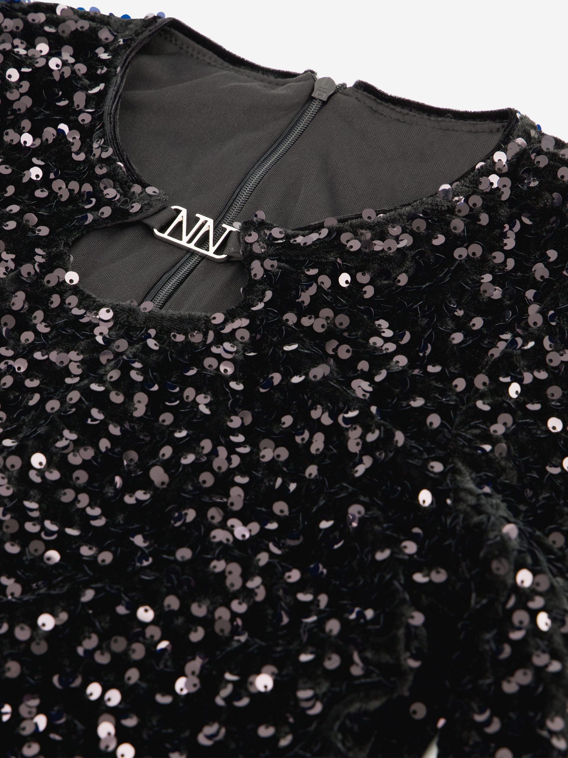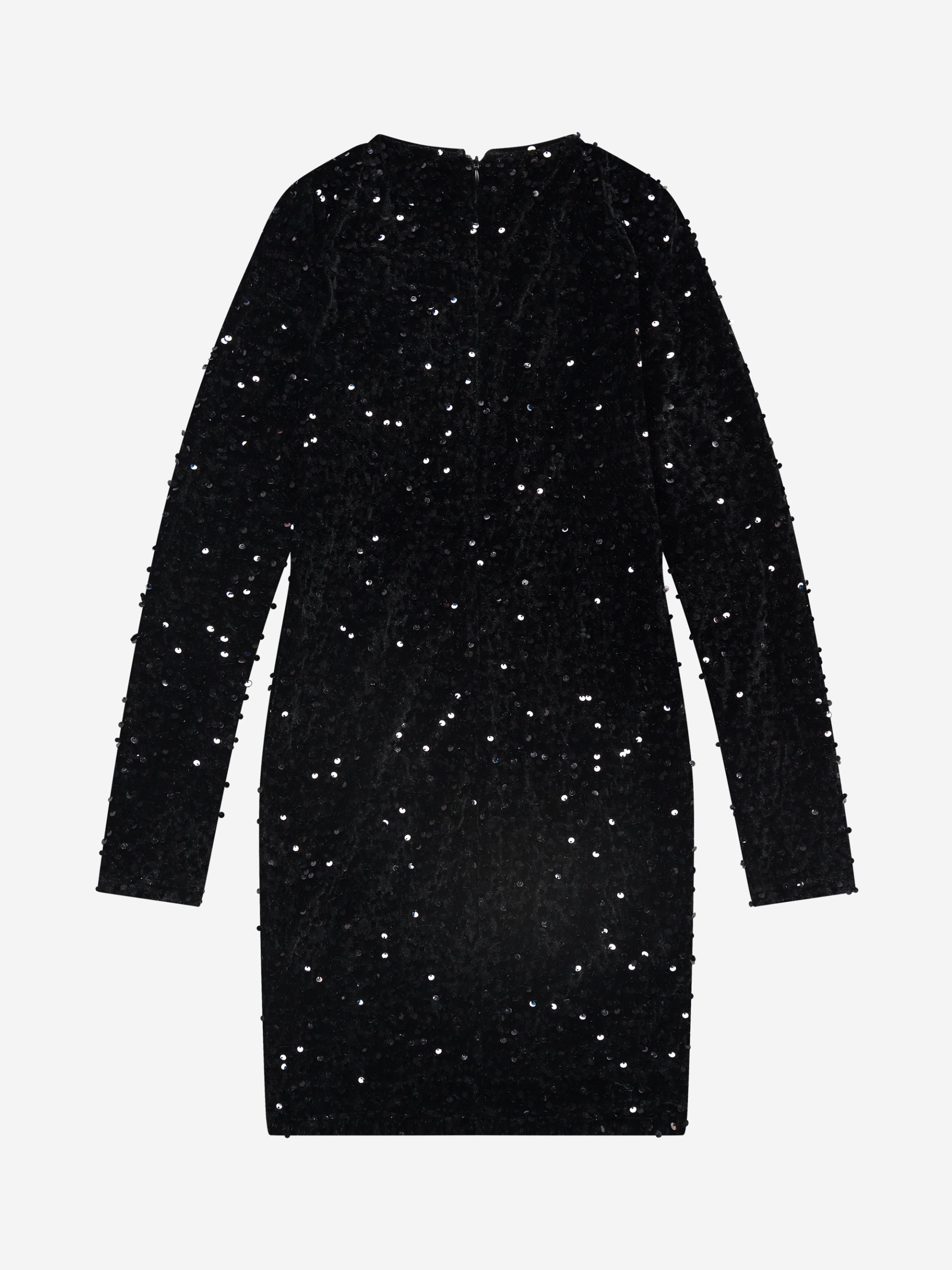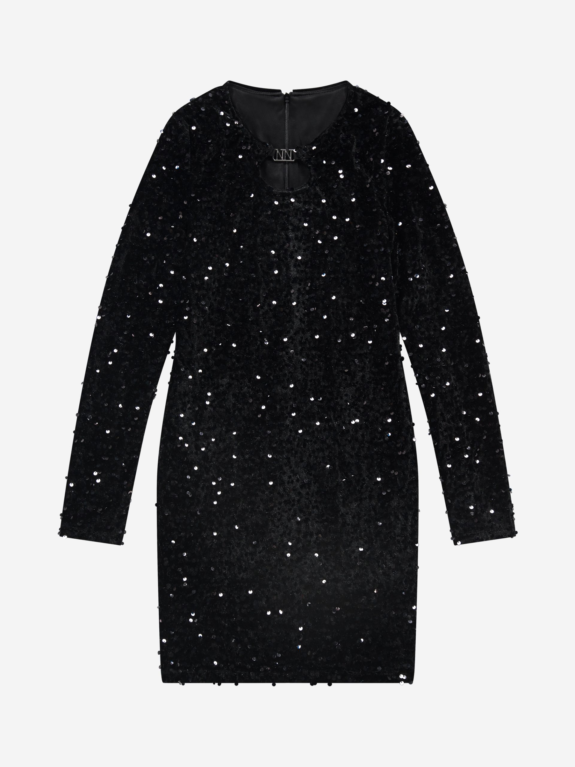 Product descriptionFitted dress with sequins, a zipper on the back and a round neck. The dress has a lot of stretch and an open detail at the neck with a NIK&NIK logo.
