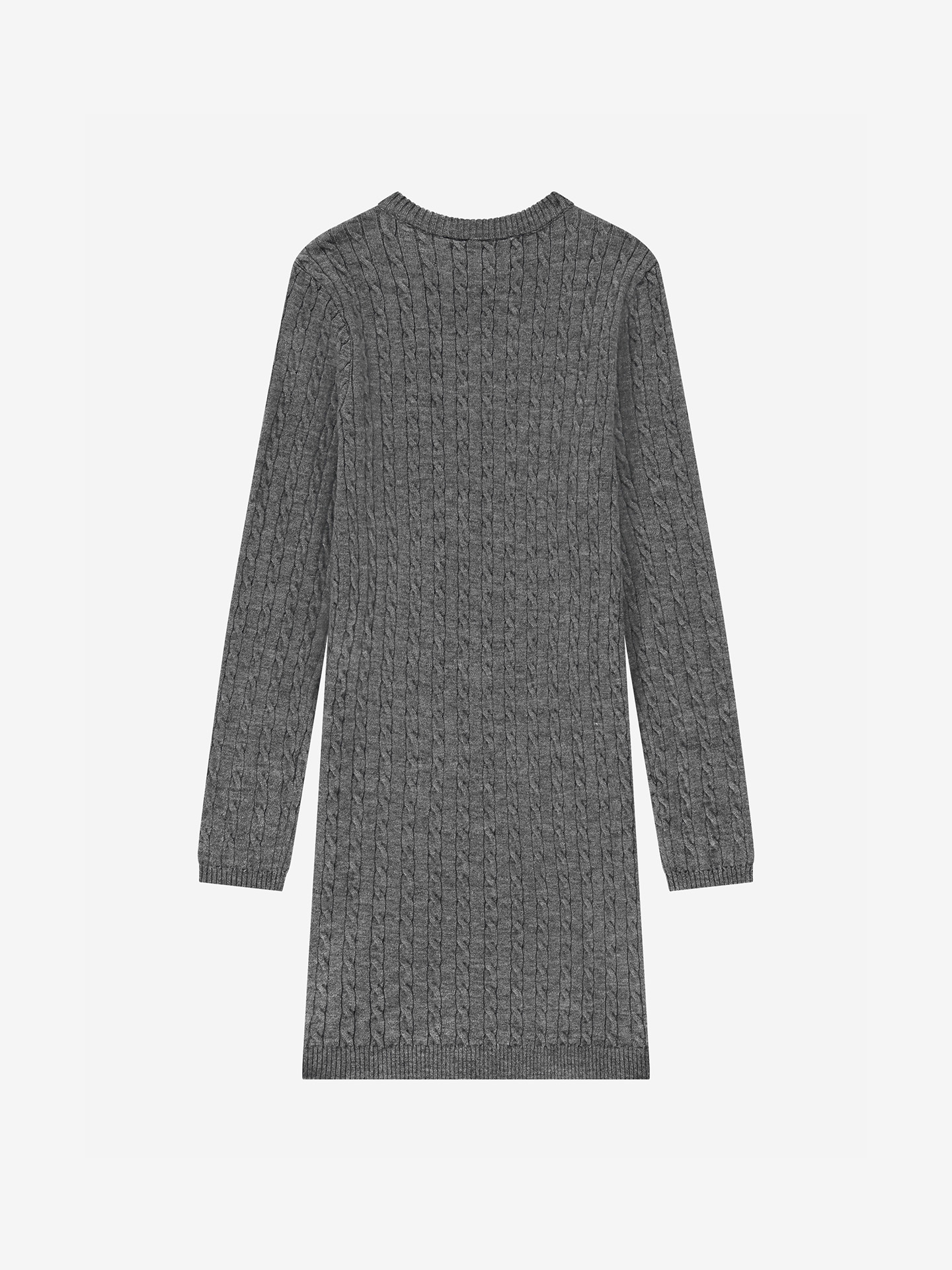 Product descriptionKnitted dress with a classic cable knit pattern, a round neck, and a logo detail. The dress features ribbed cuffs and a regular fit.