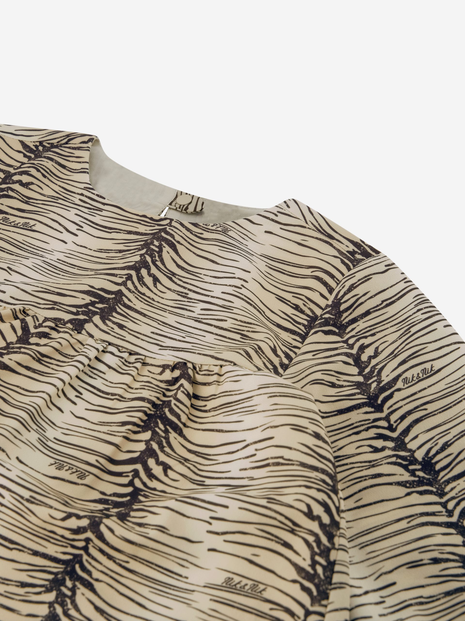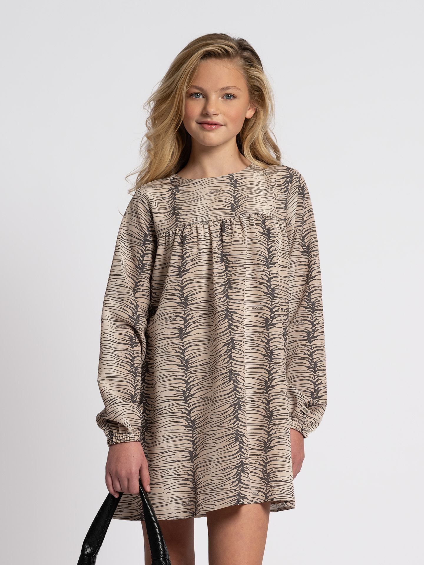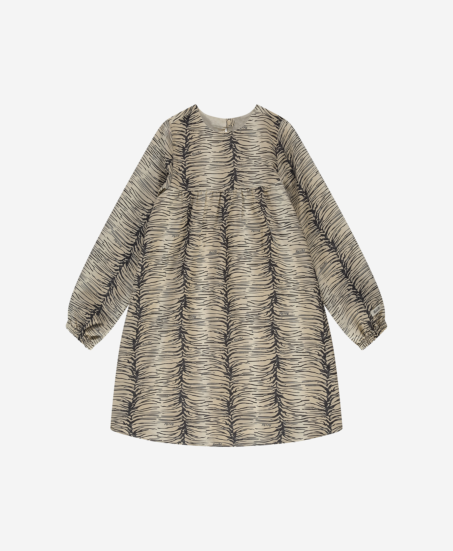 Product descriptionLoose-fitting dress with an animal print, a round neckline, and subtle logos. The dress has long puff sleeves and a snap closure.