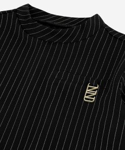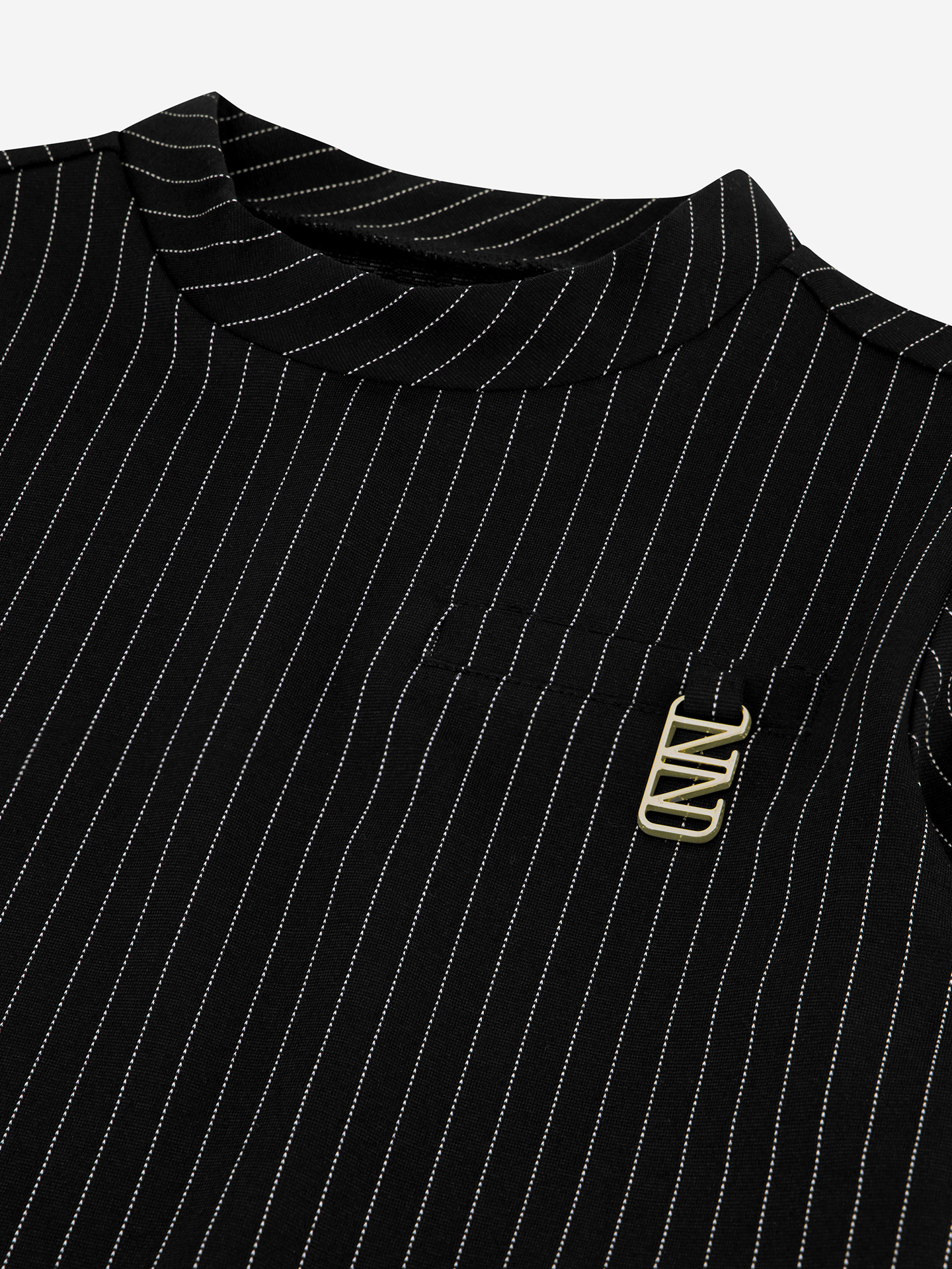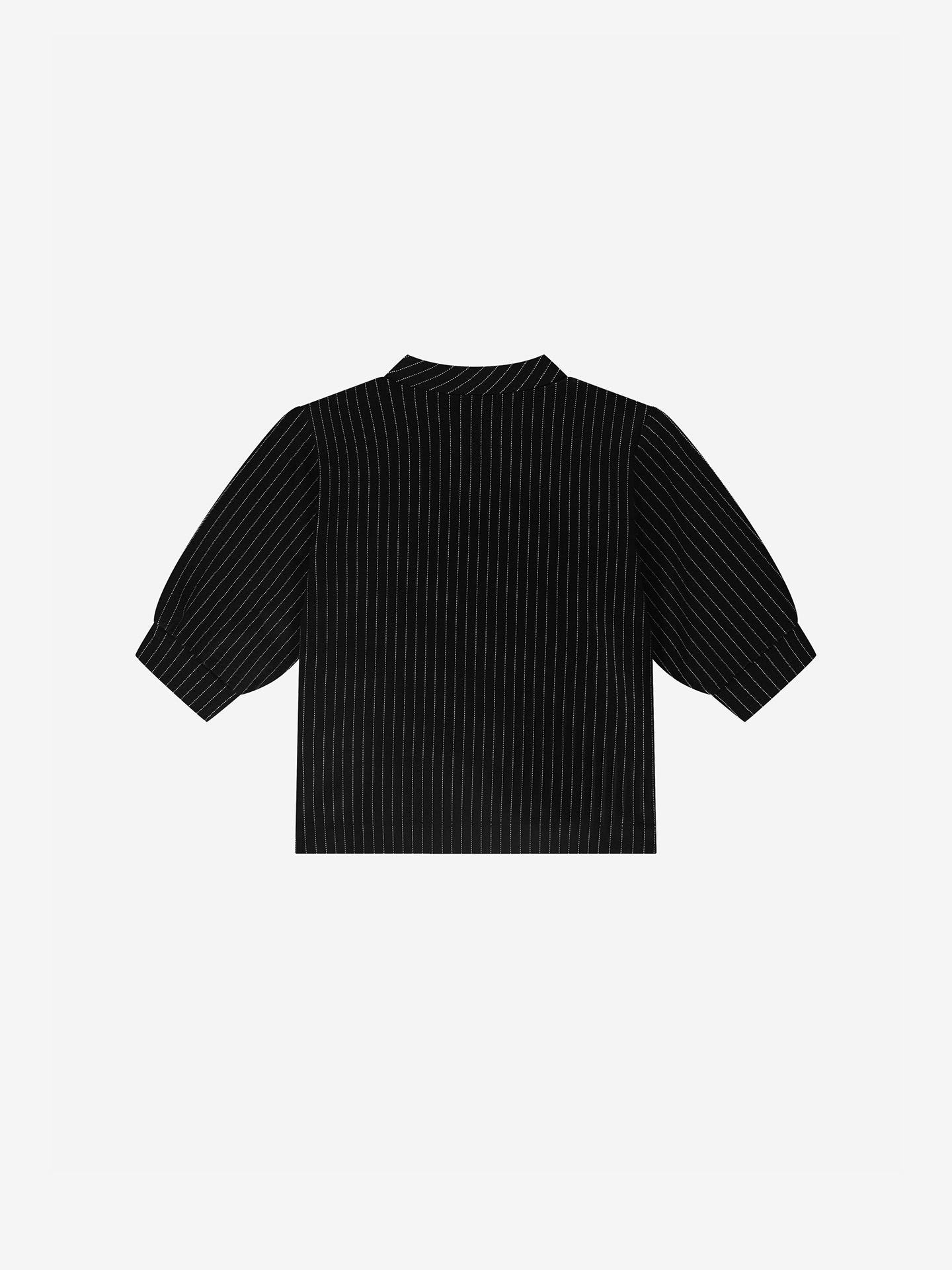 Product descriptionPinstripe top with a round neck, mid-length puff sleeves, and a logo detail.