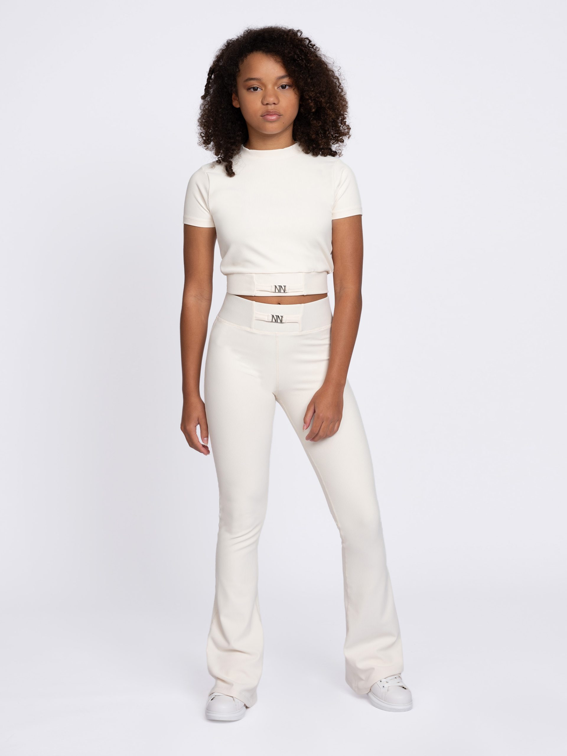 Product descriptionRibbed flared trousers with an elastic waistband, a high waist and a logo detail.