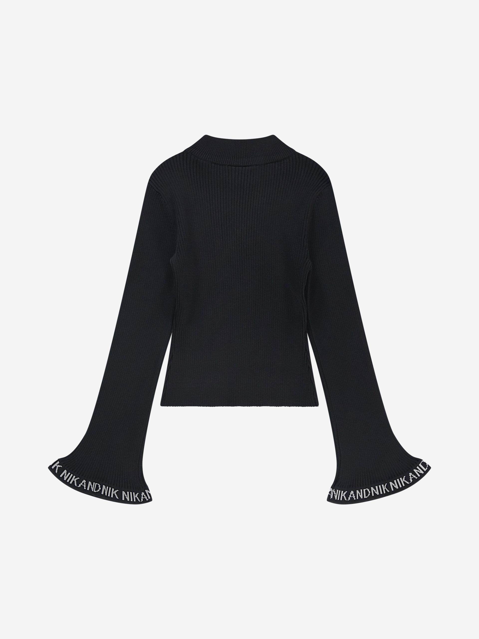 Product descriptionRibbed sweater with a high neck and flared sleeves with a NIK&NIK logo. The sweater has a normal fit and a lot of stretch.