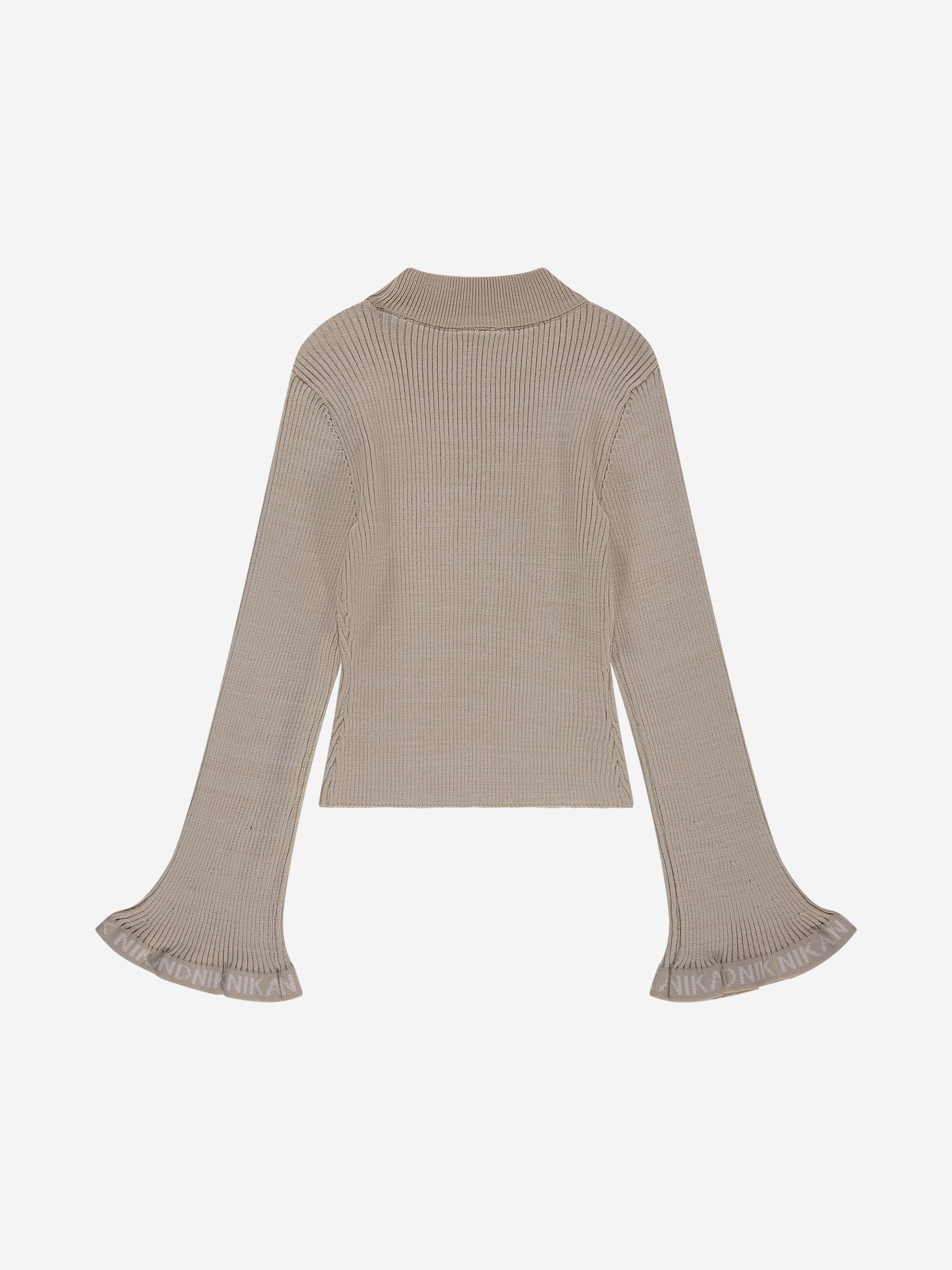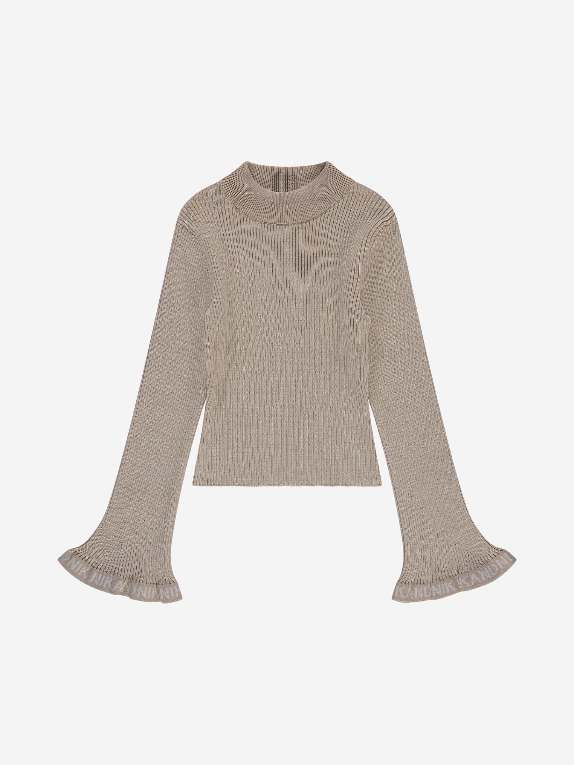 Product descriptionRibbed sweater with a high neck and flared sleeves with a NIK&NIK logo. The sweater has a normal fit and a lot of stretch.
