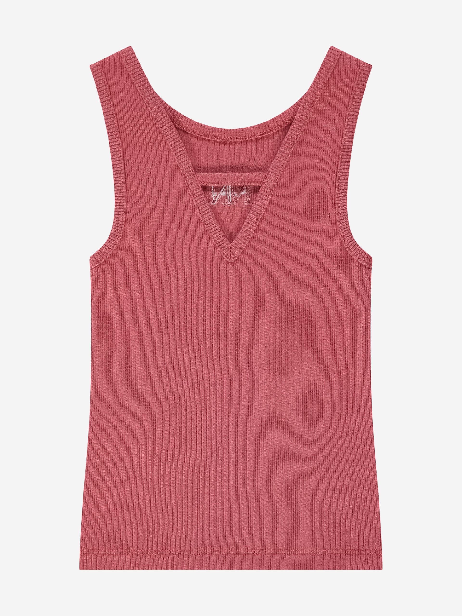 NIKKIE Kid’s Girl Ribbed Top With Embroidered Logo | Red