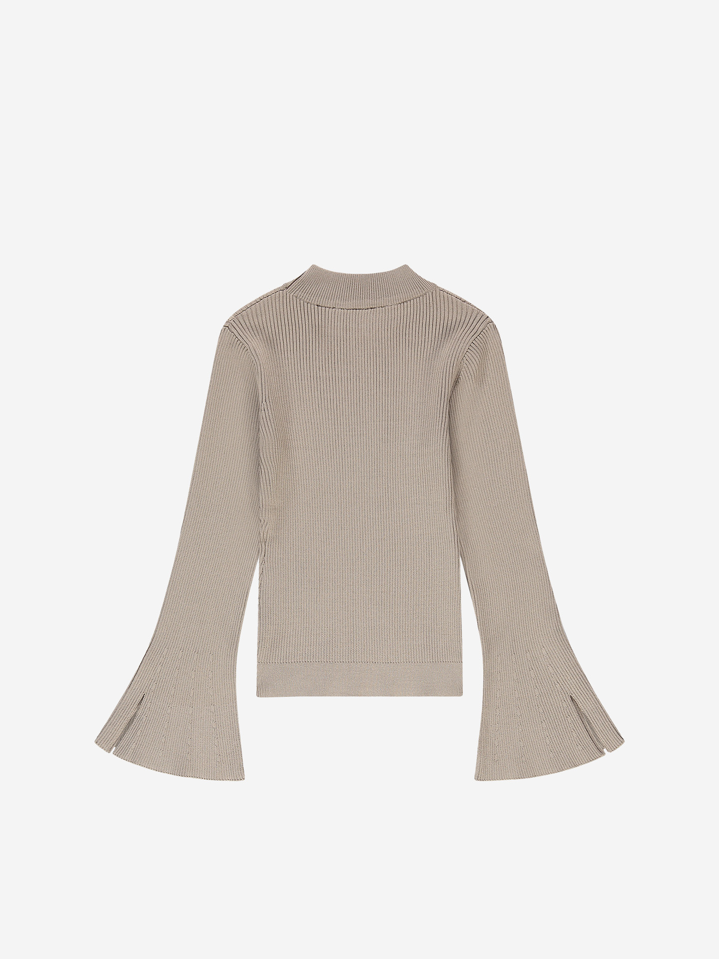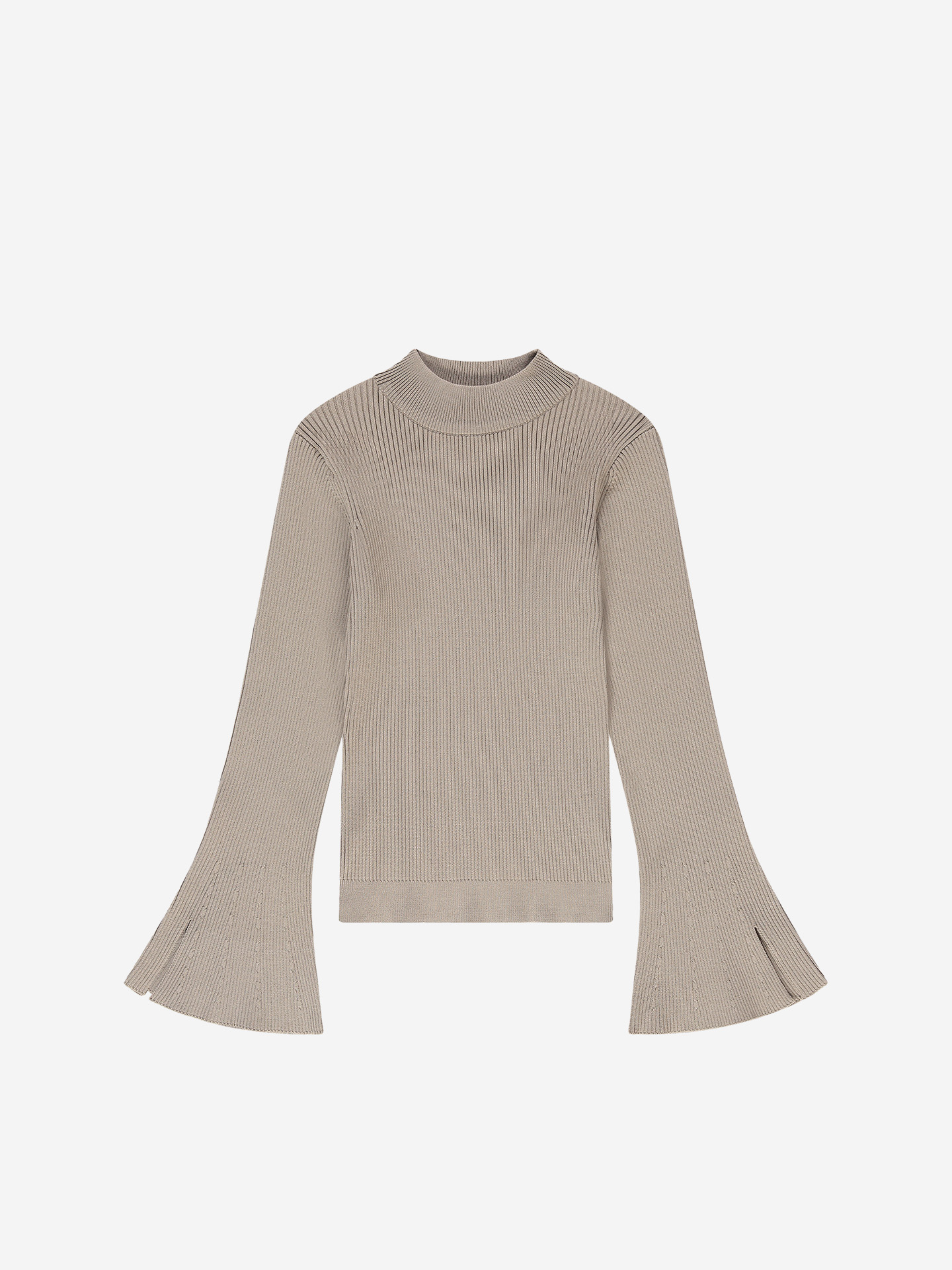 Product descriptionRibbed top with long, flared sleeves and a slit, a high neck, and a fitted fit.