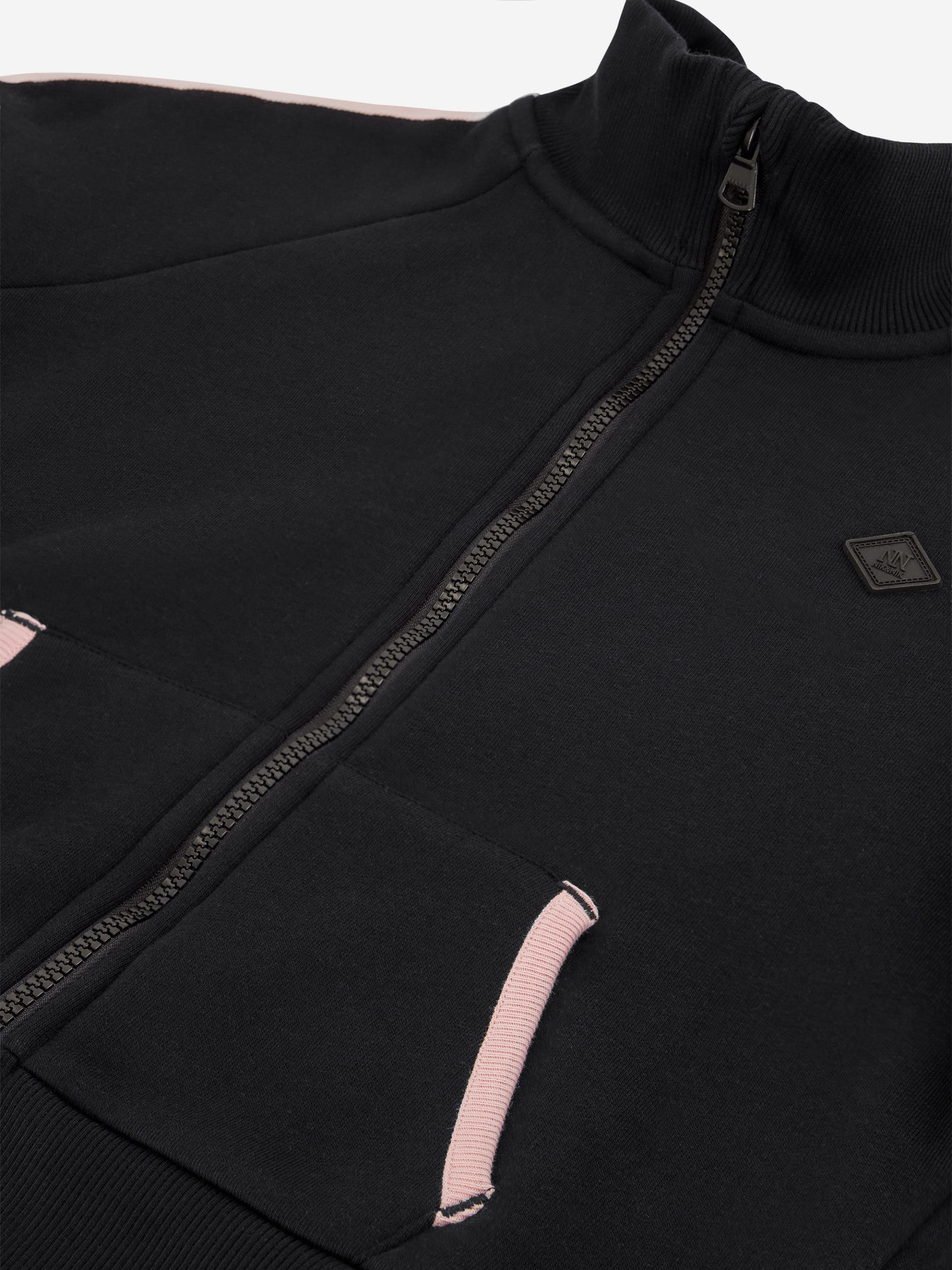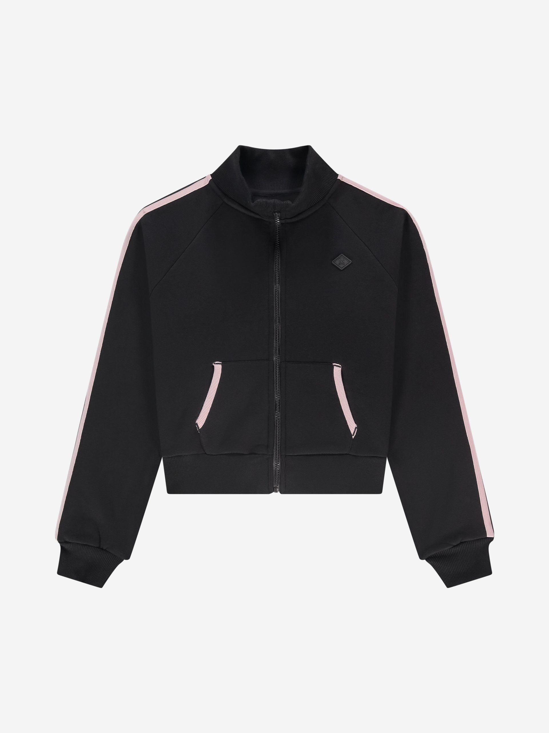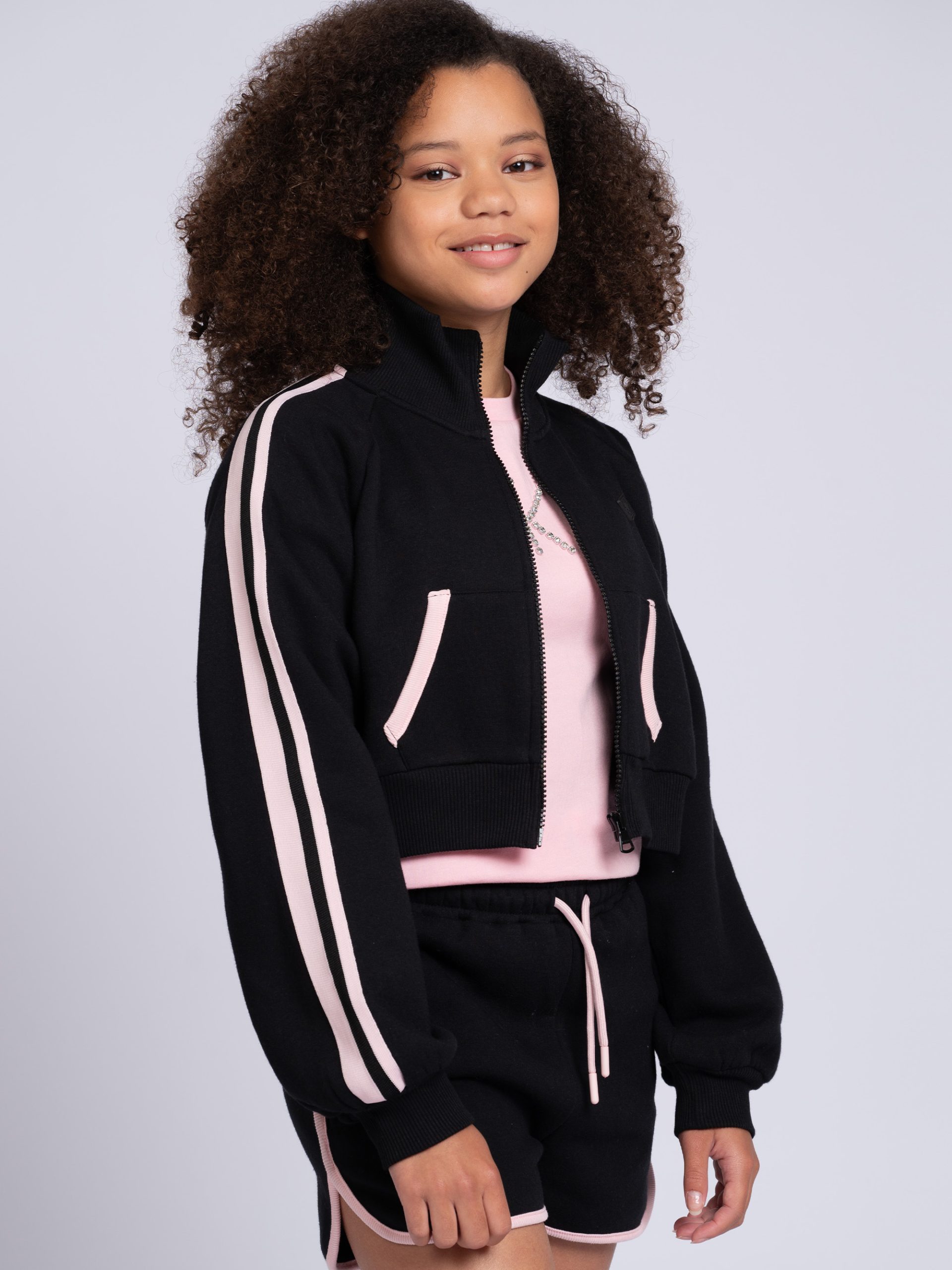 Product descriptionShort jacket with a stand-up collar and ribbed finish, with a zipper and two stripes along the sleeves. The jacket has a regular fit and an elastic waistband.