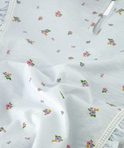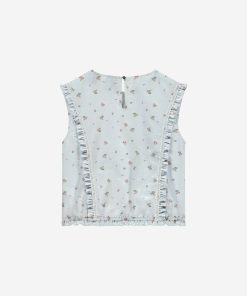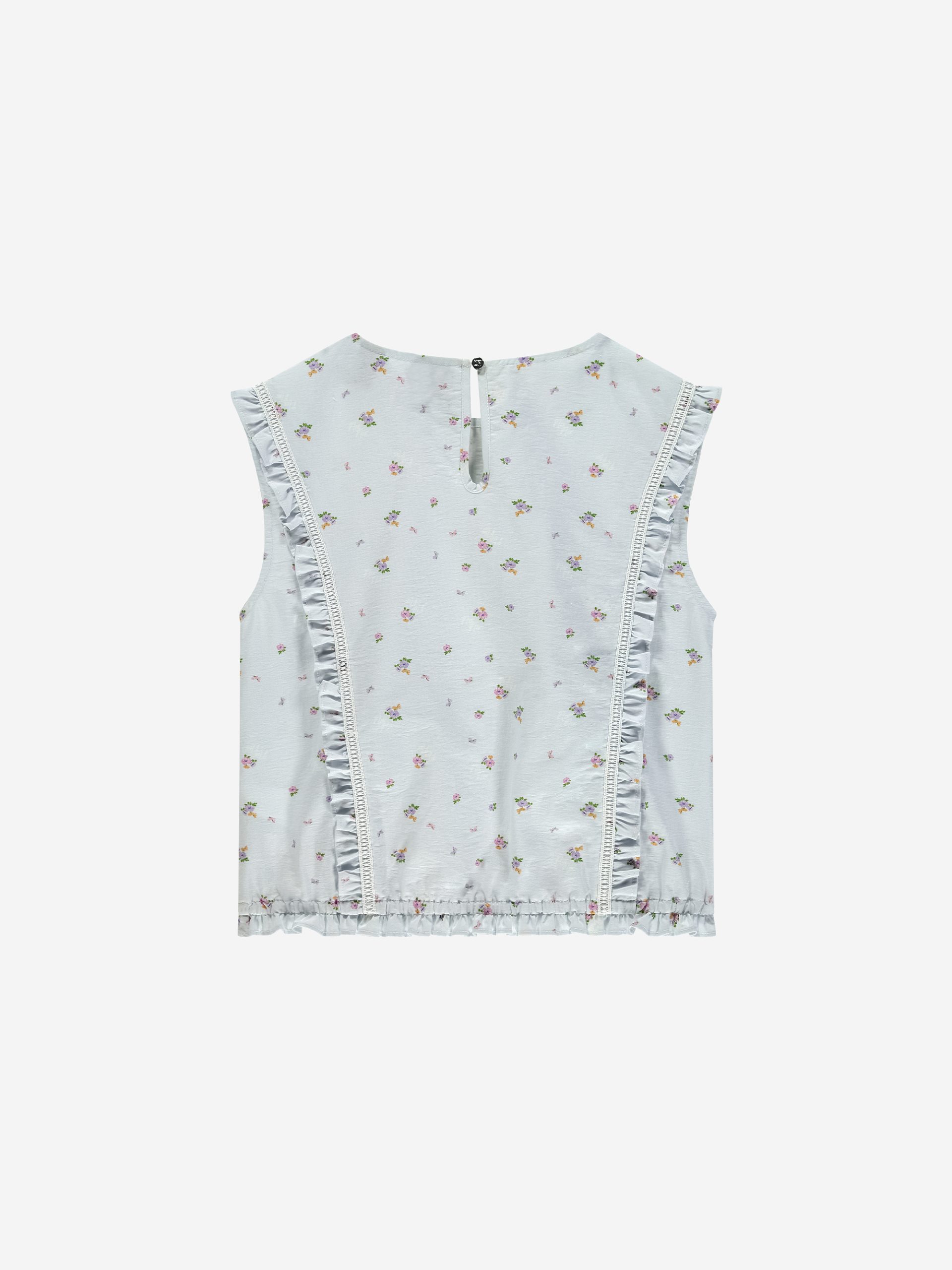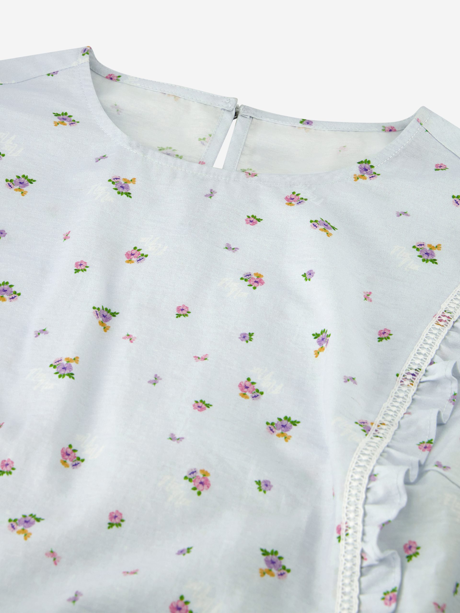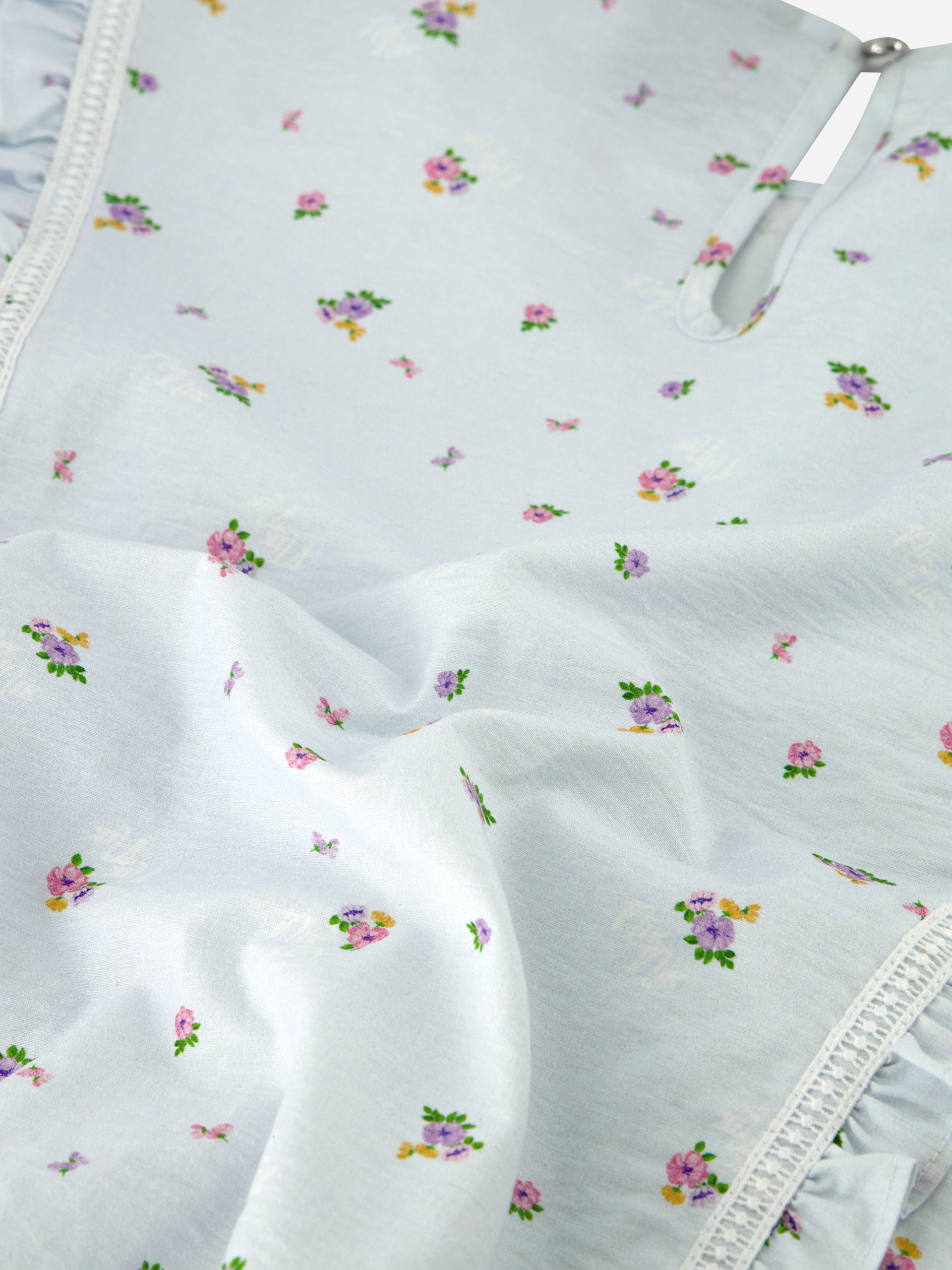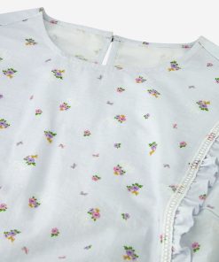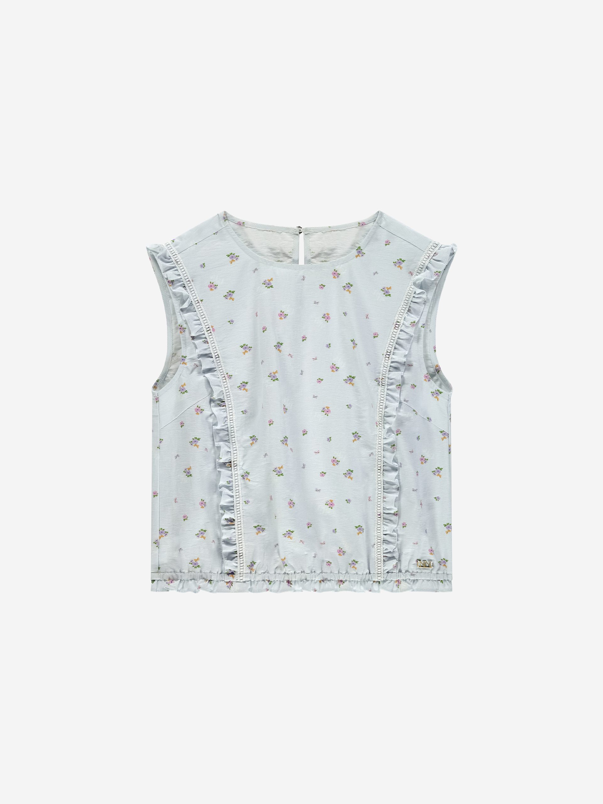 Product descriptionShort top with floral print, ruffles and an elastic waistband. The top has a press stud closure, a high neck and a regular fit.