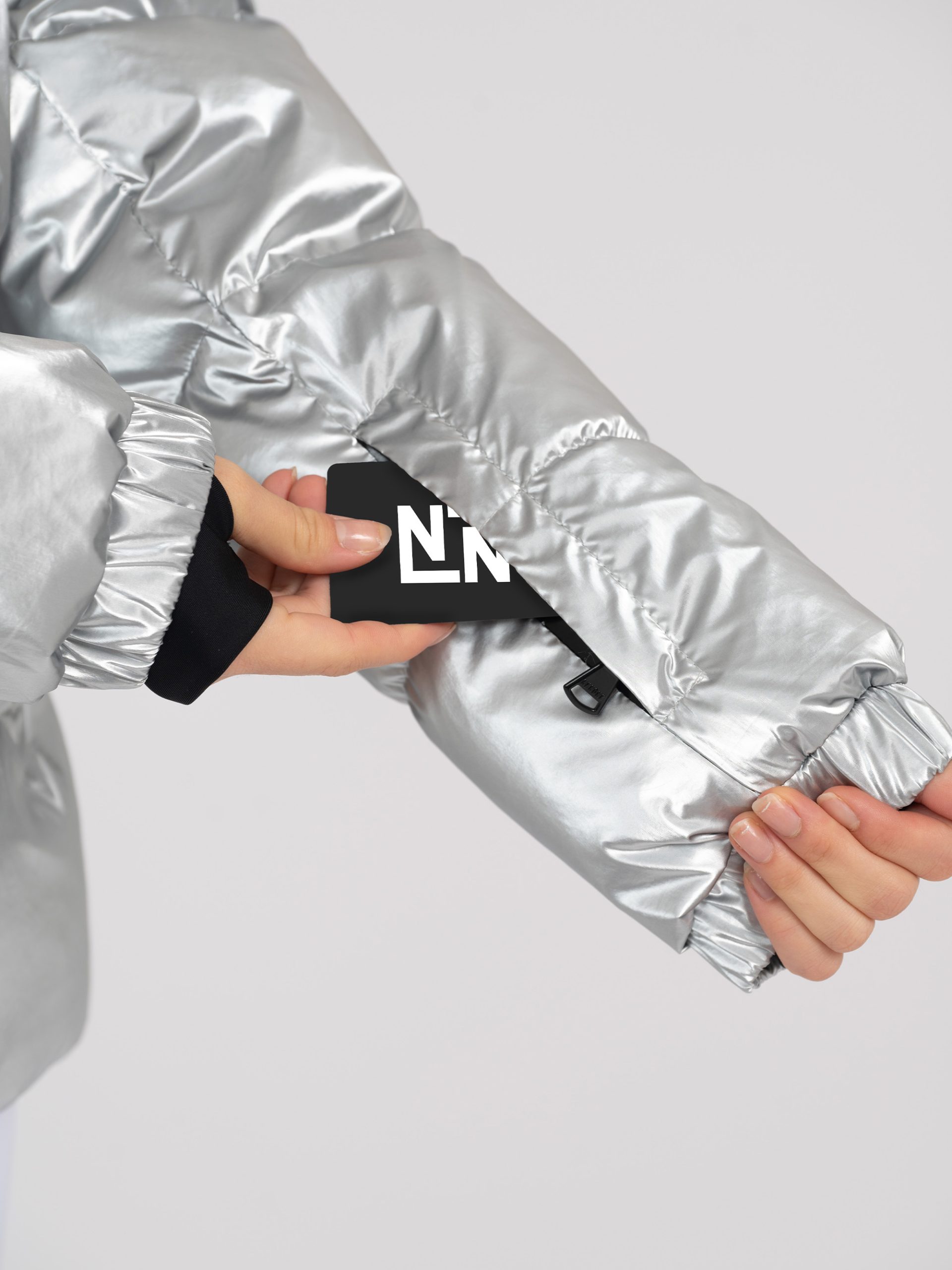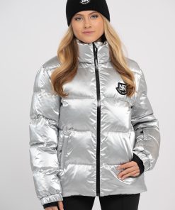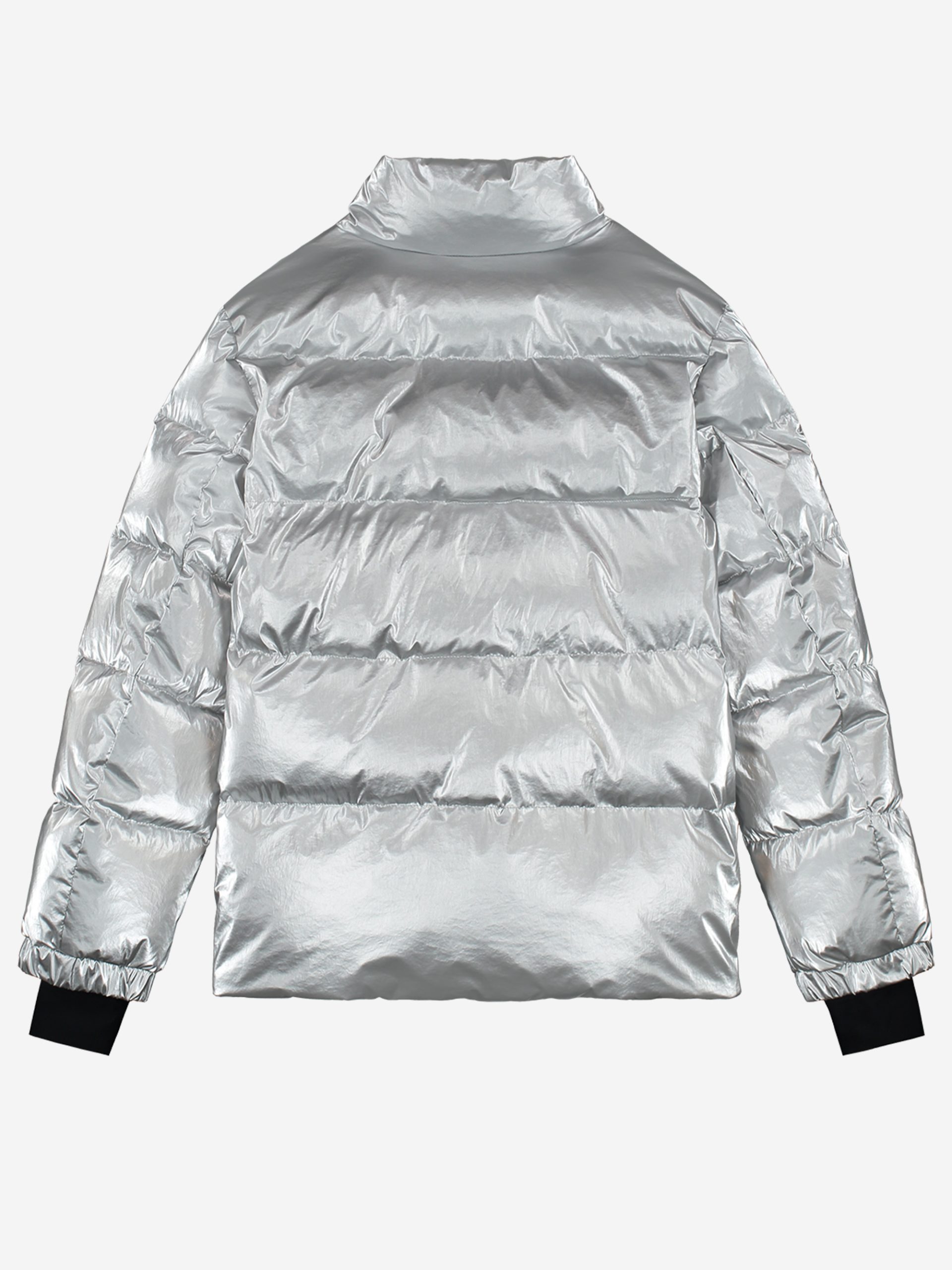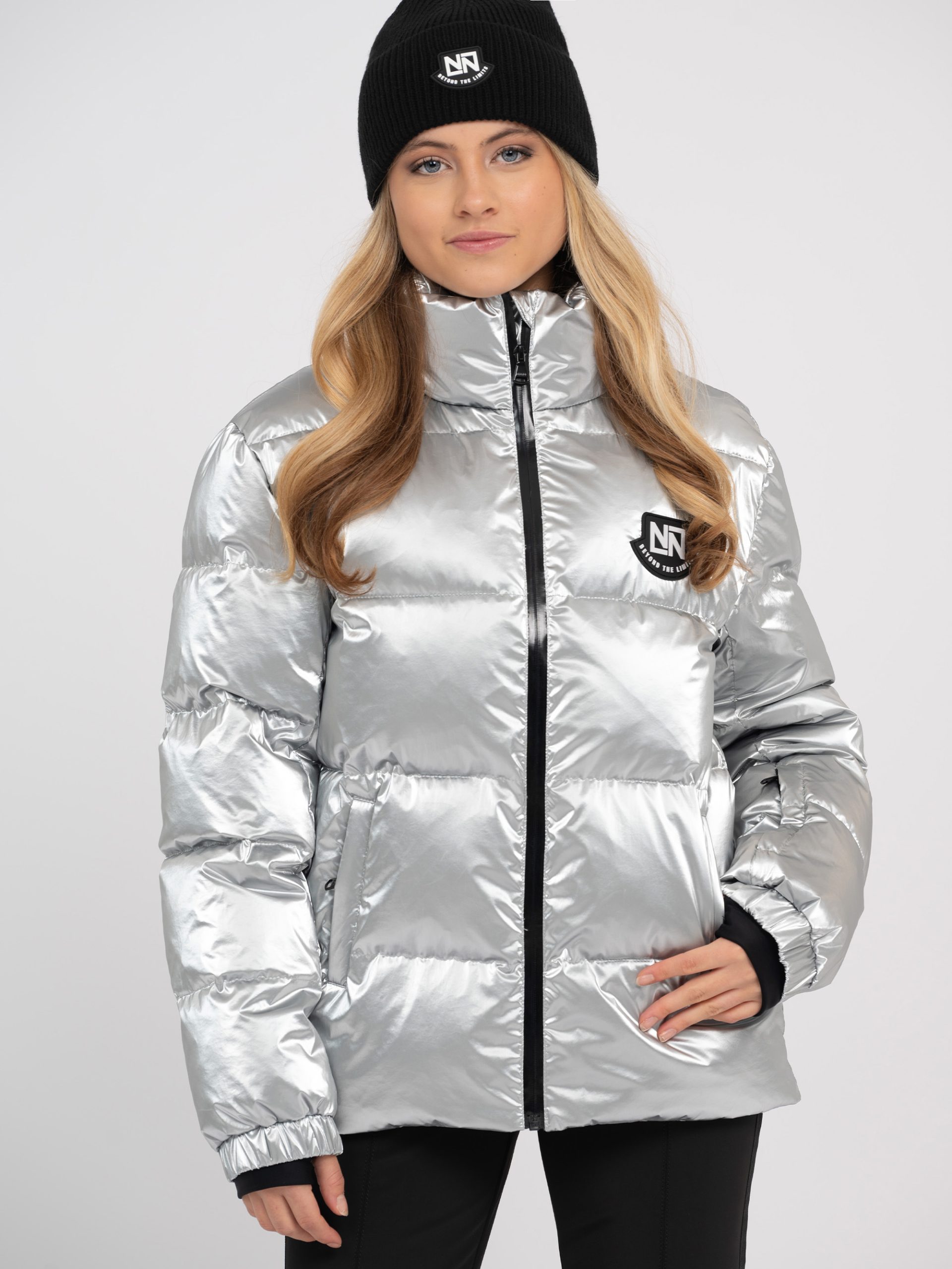 NIKKIE Kid’s Girl Ski Jacket With Metallic Look And High Collar | Silver