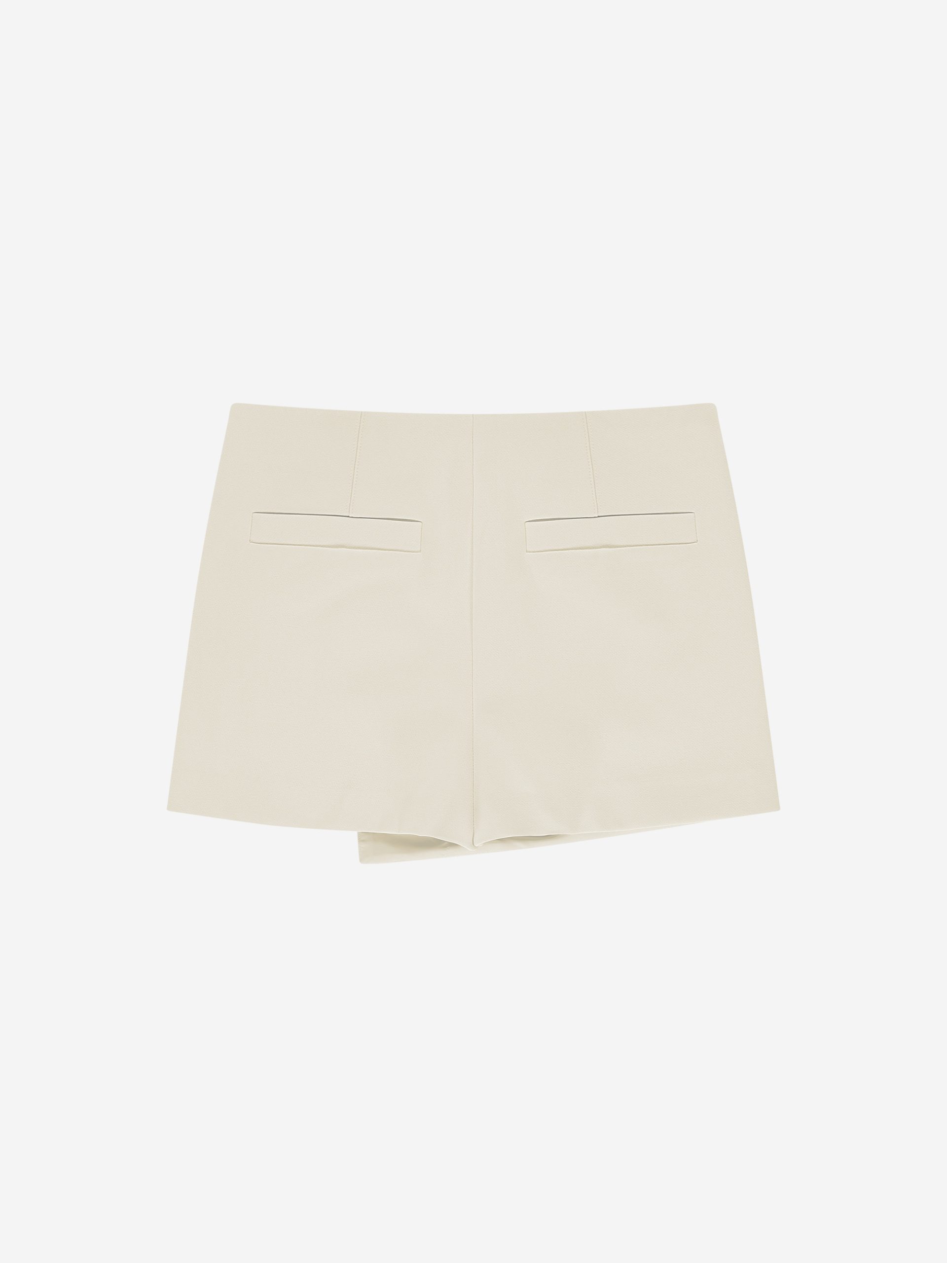 Product descriptionSkort in a soft, lightweight fabric with an asymmetric overlap, button details and a concealed zip.