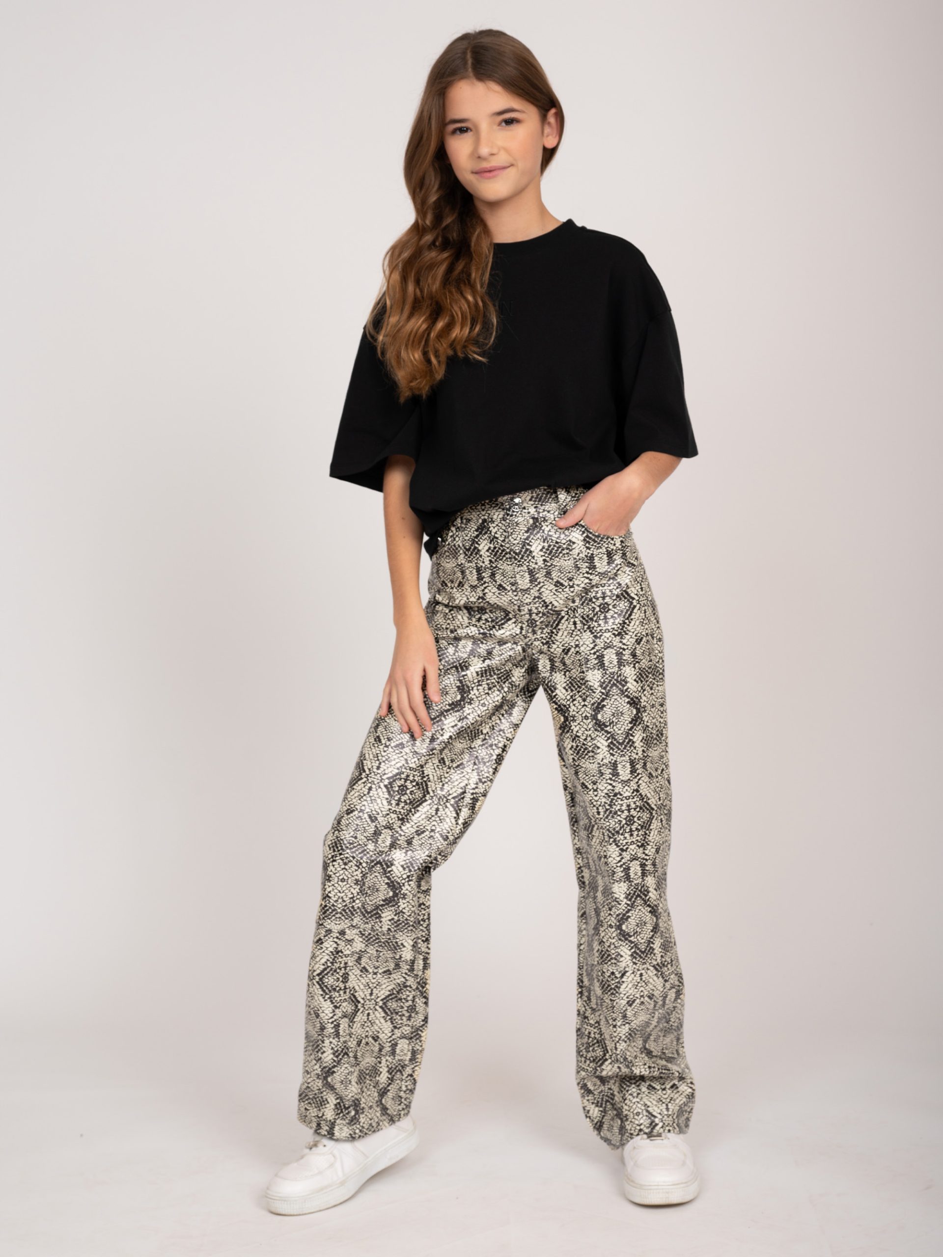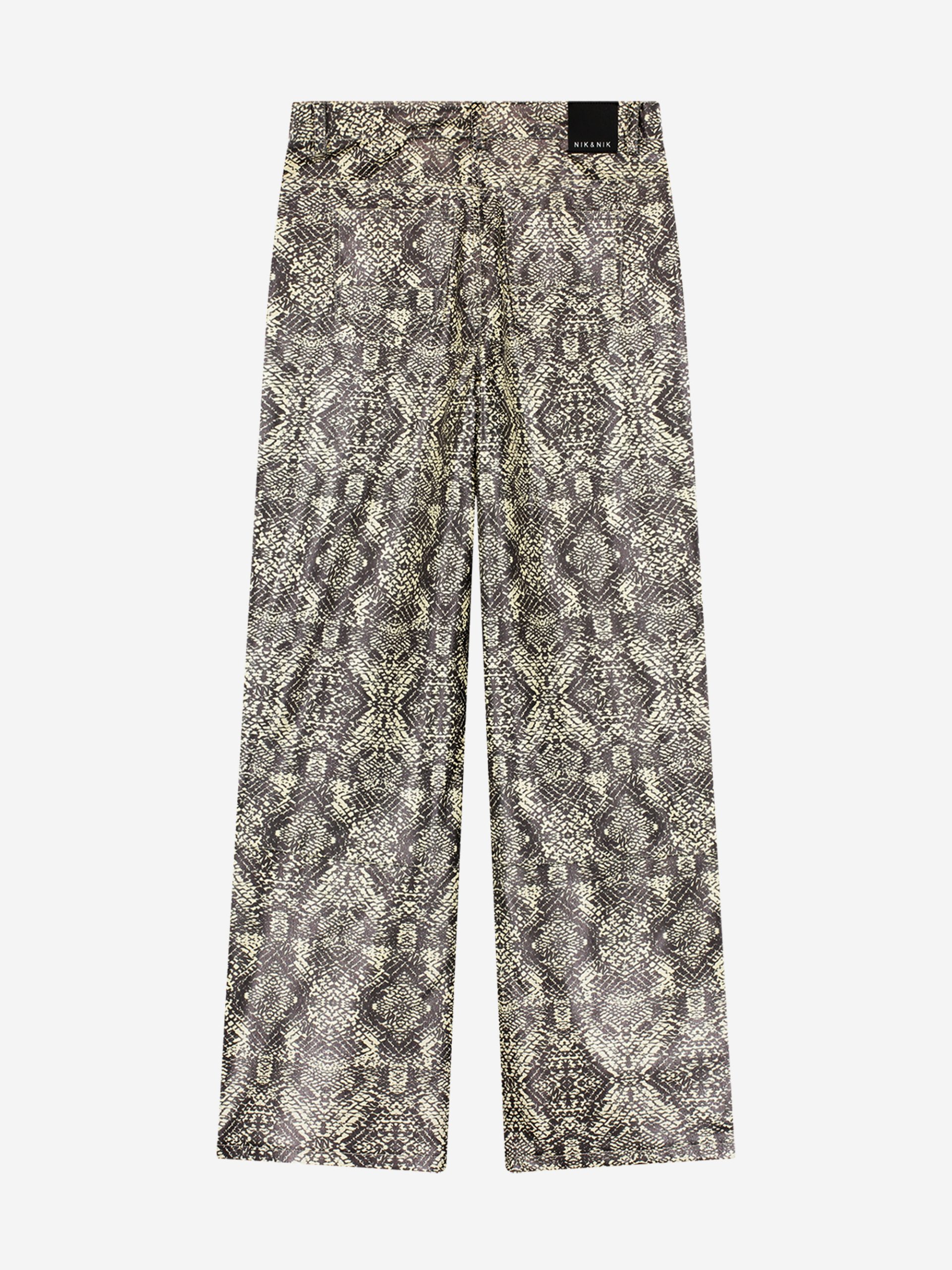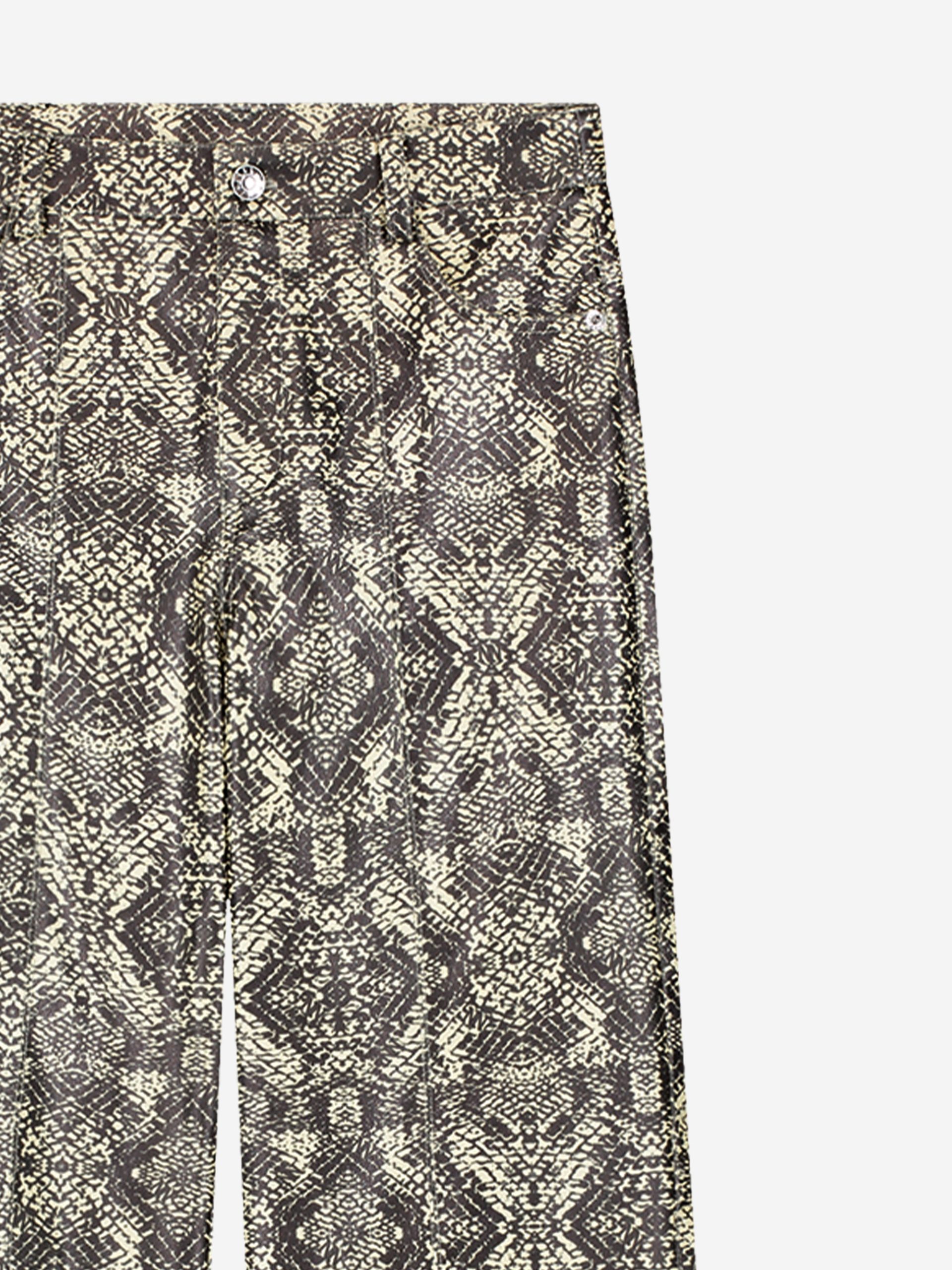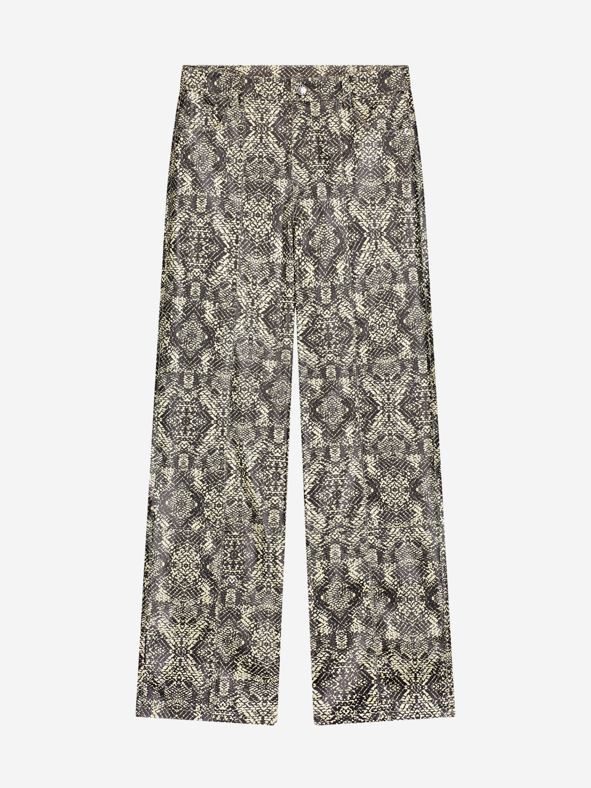 Snake print pants with a straight fitand a mid waist. The pants feature a zip fastening, button fastening and havepockets both at the front and back.