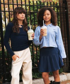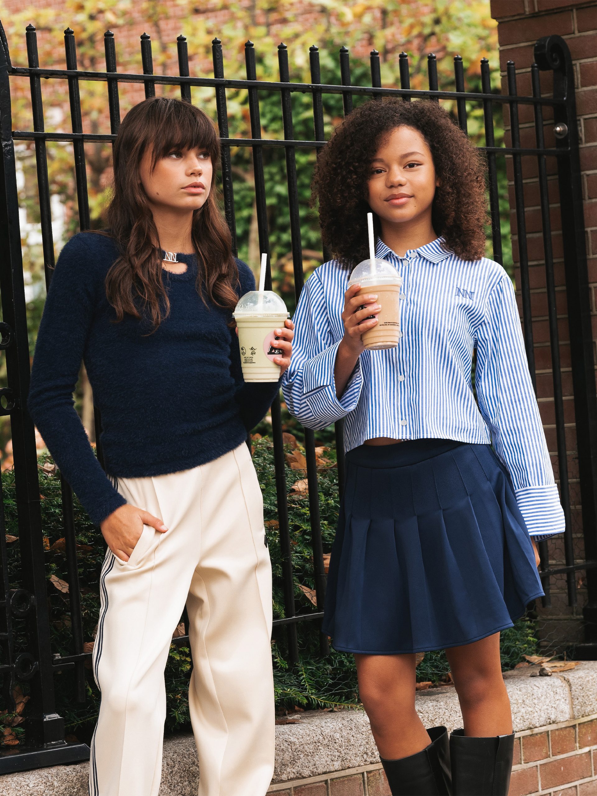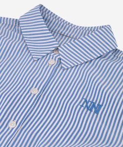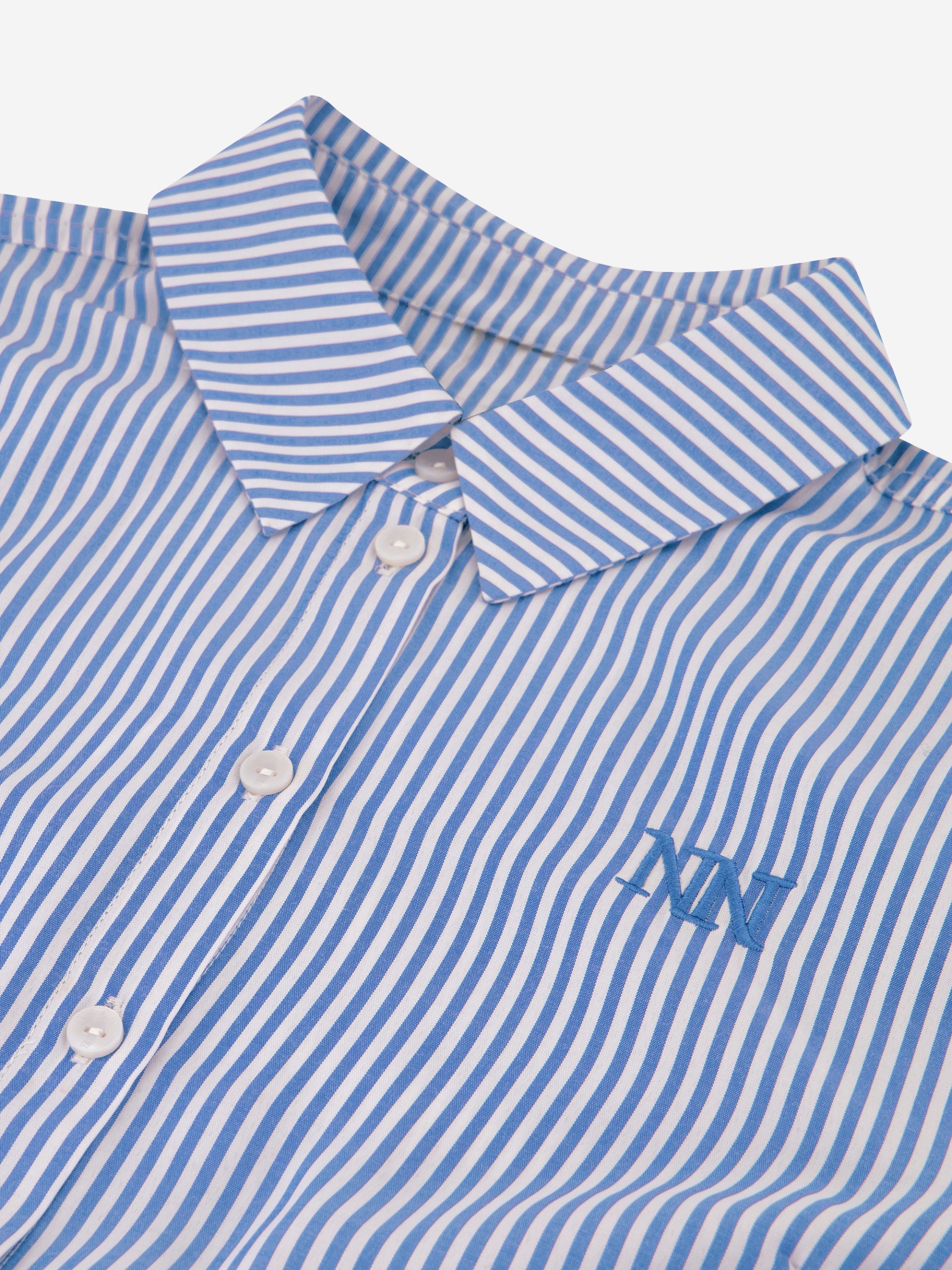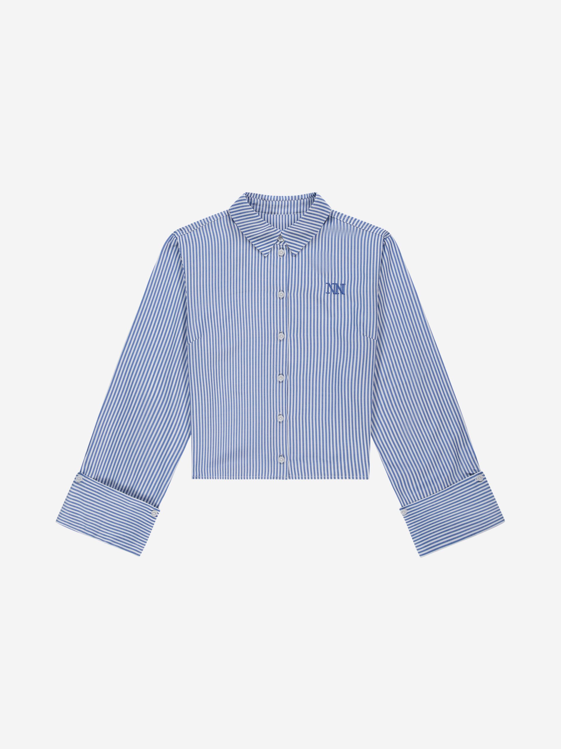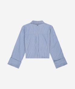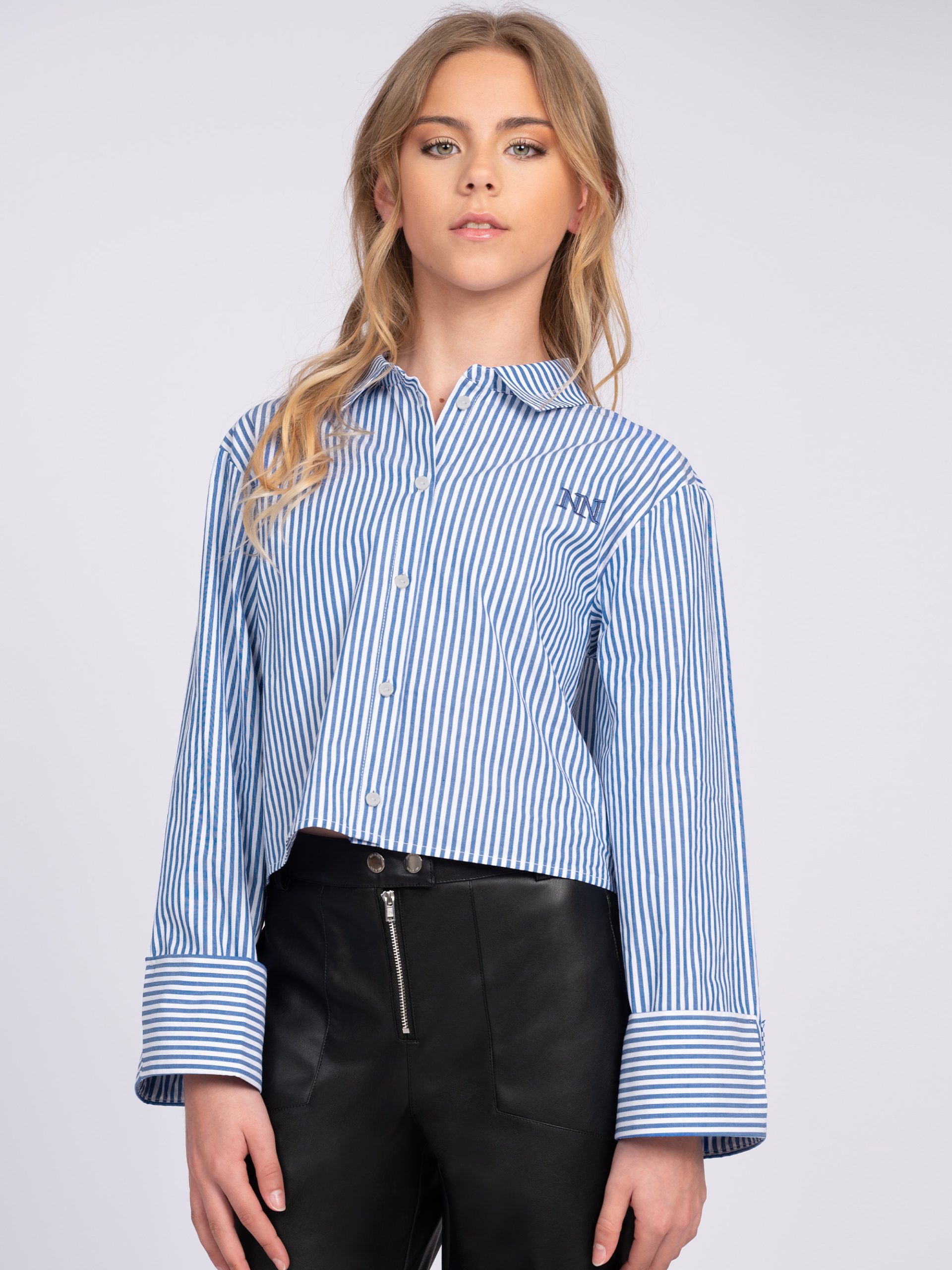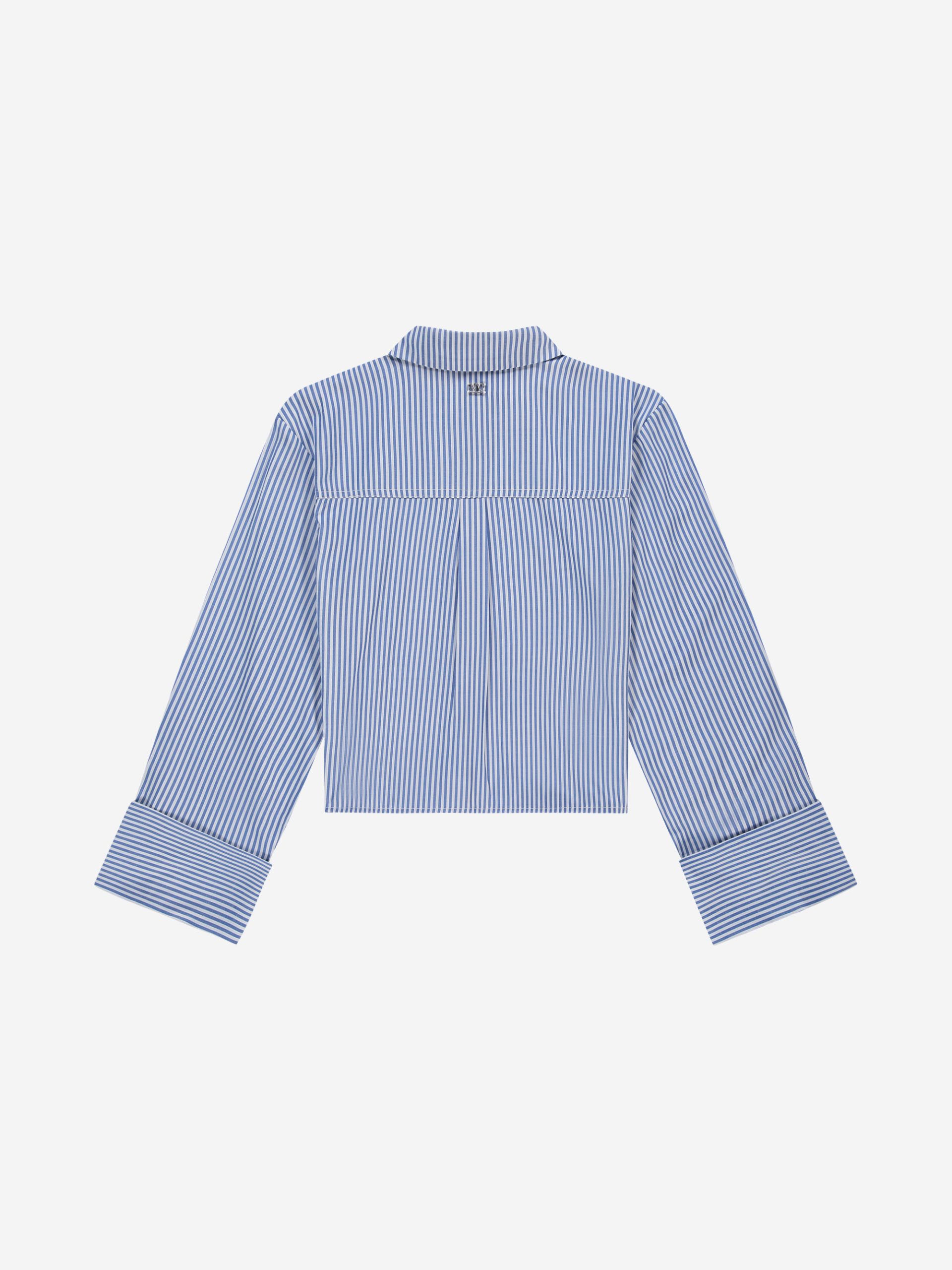 Product descriptionShort blouse with a striped pattern, with a fold-over edge at the sleeves with buttons. The blouse has a button closure, a round neck and a wide fit.