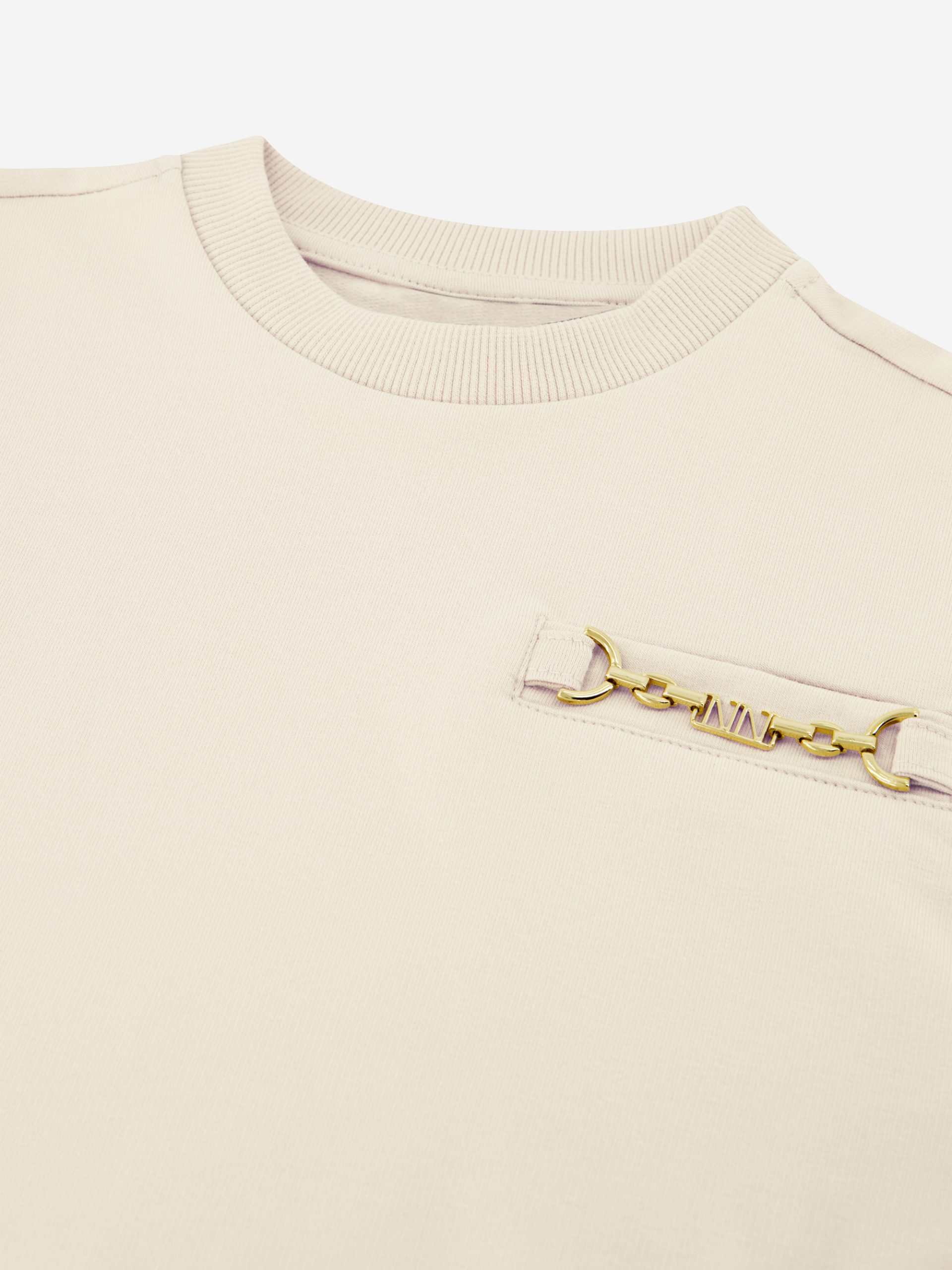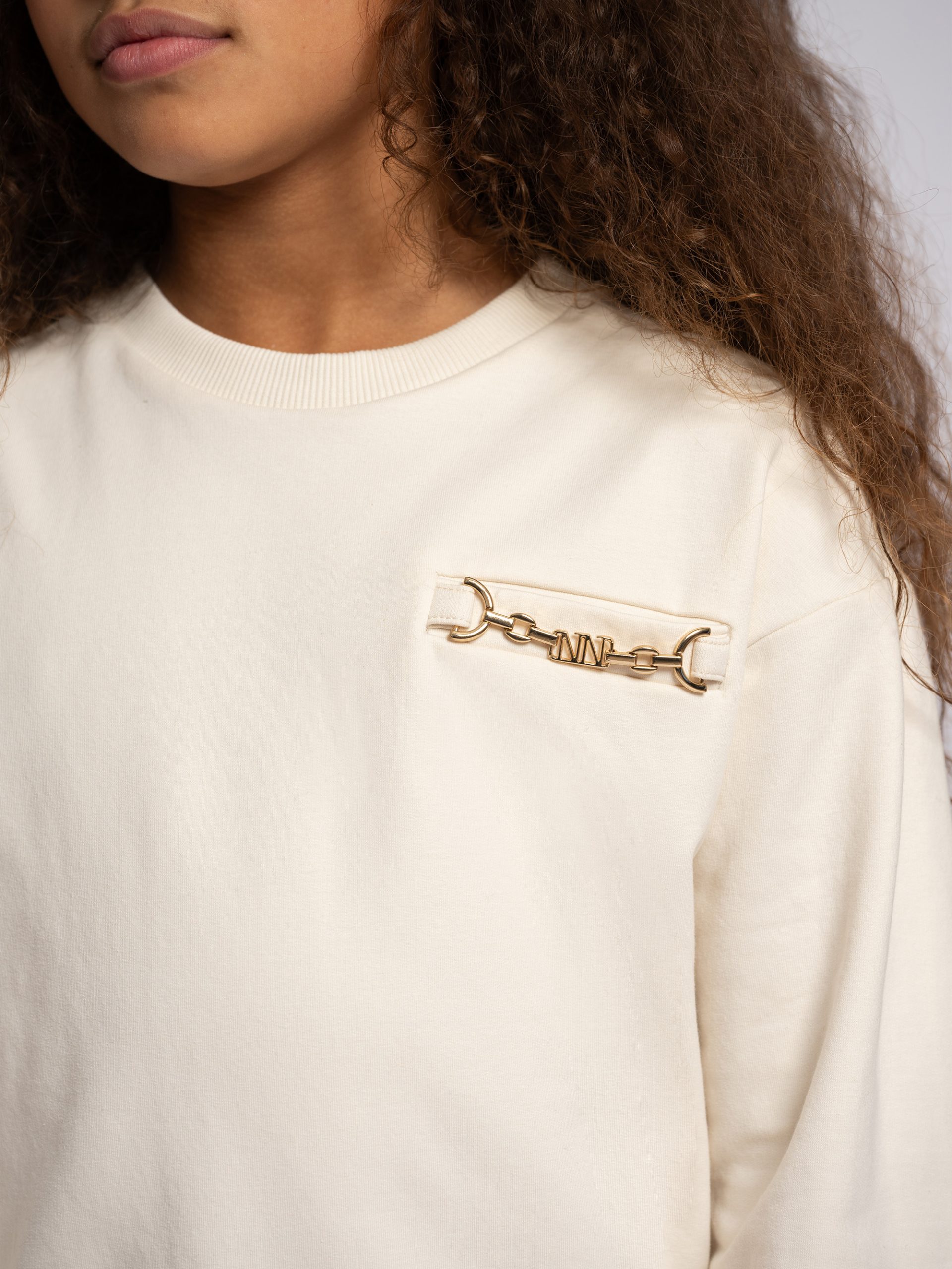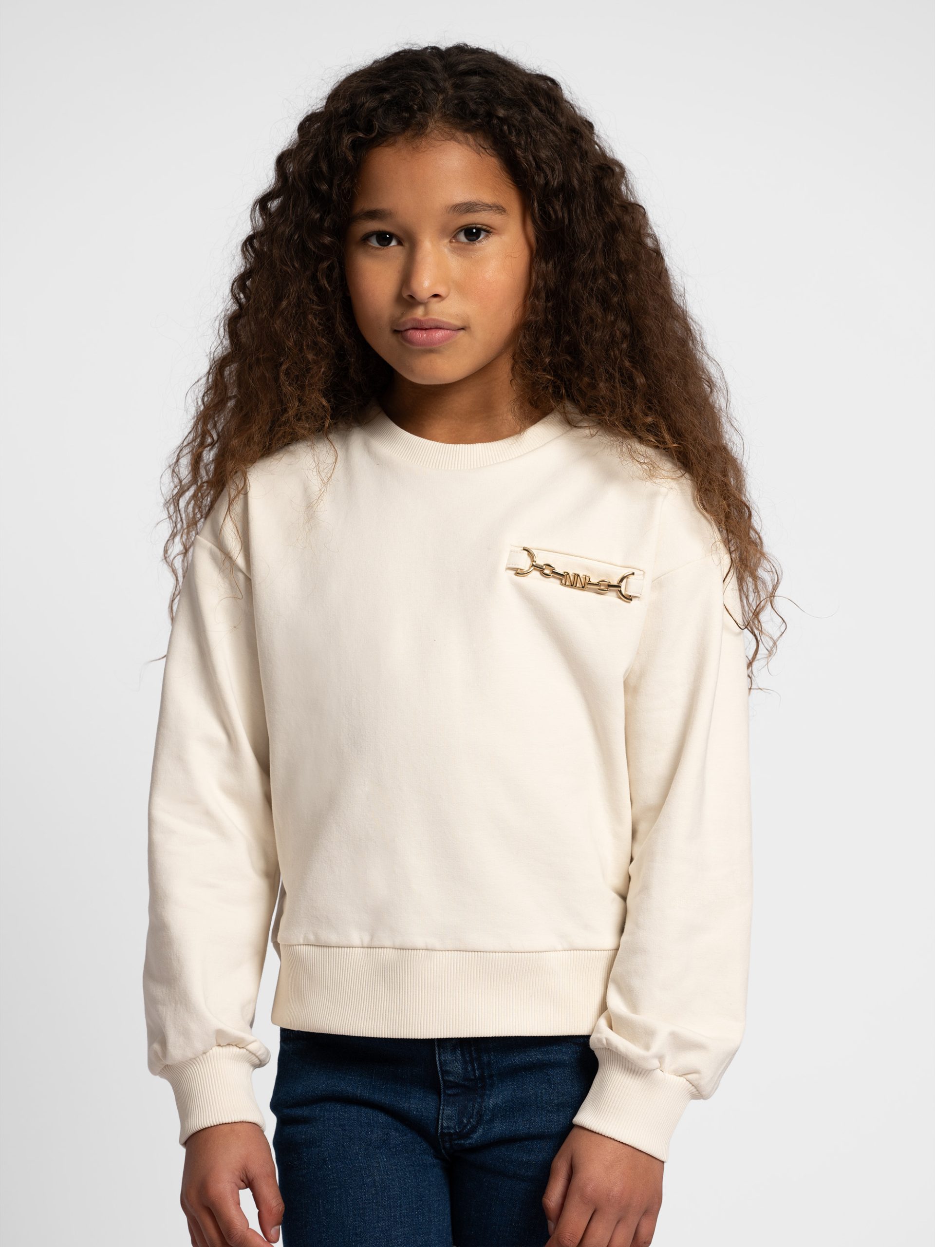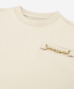 Product descriptionCrew neck sweater with ribbed cuffs and a chain detail on the chest.