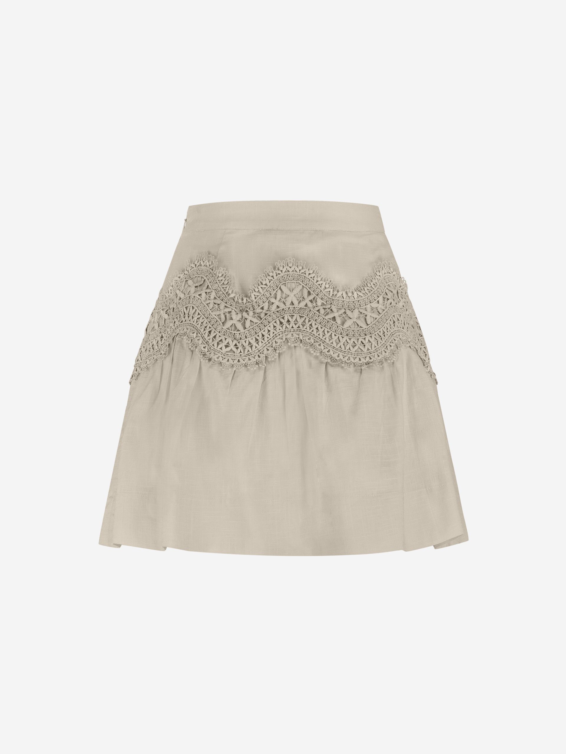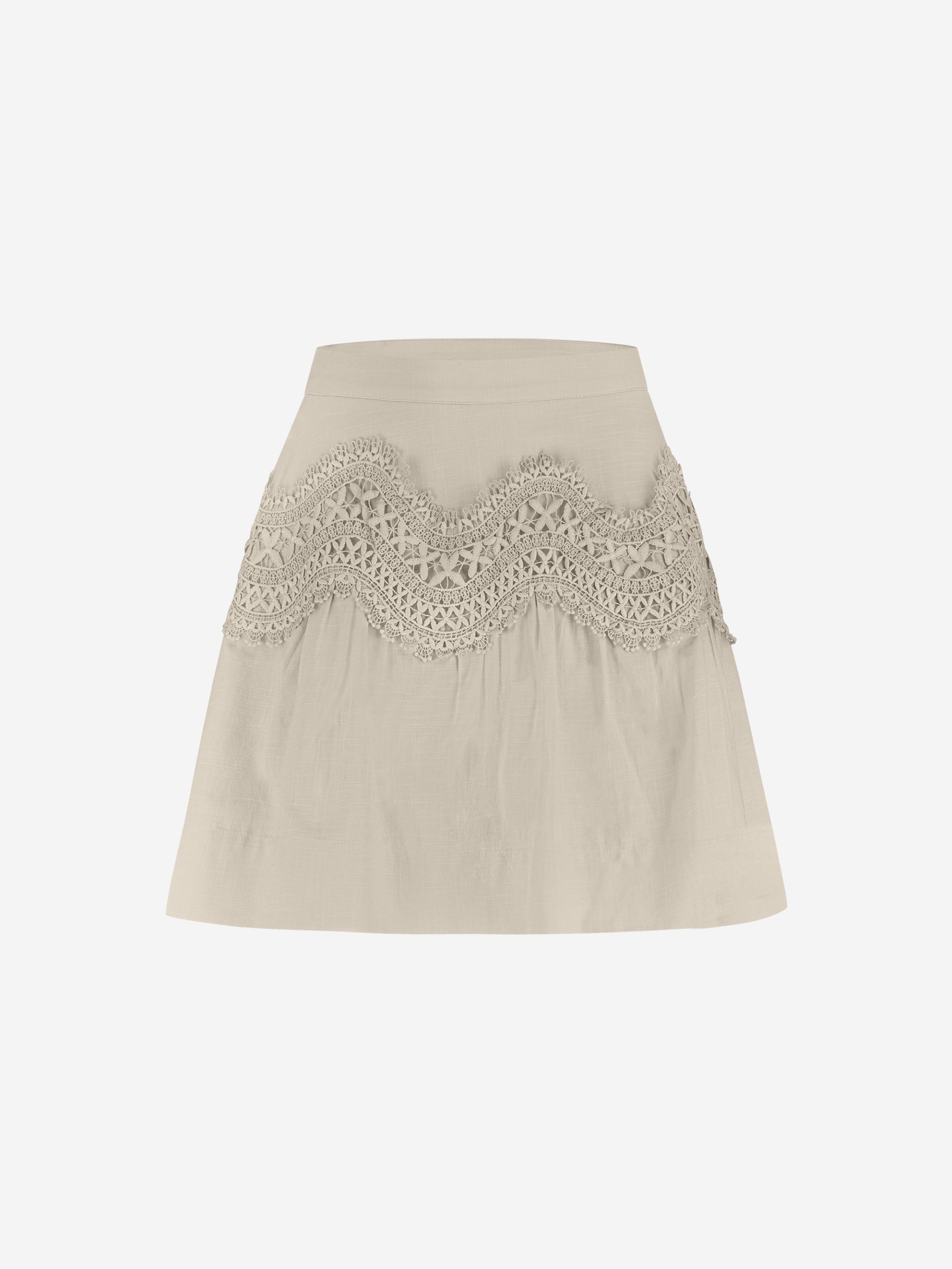 Product descriptionA-line skirt with broderie anglaise, a high waist and a concealed zipper.