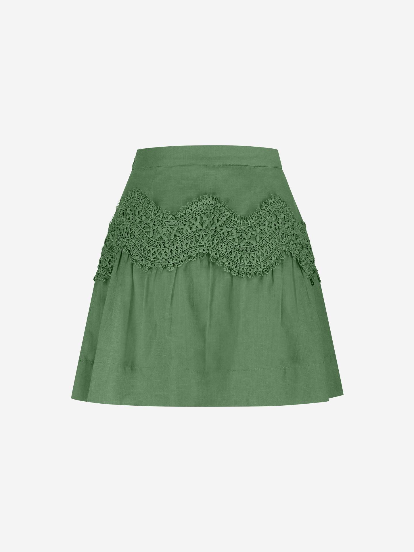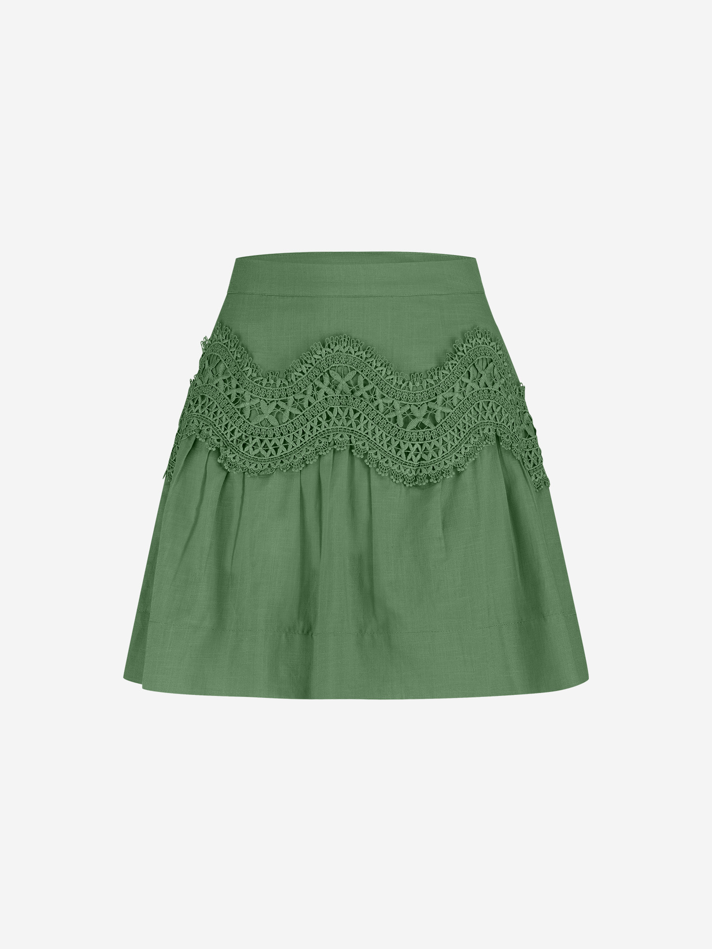 Product descriptionA-line skirt with broderie anglaise, a high waist and a concealed zipper.