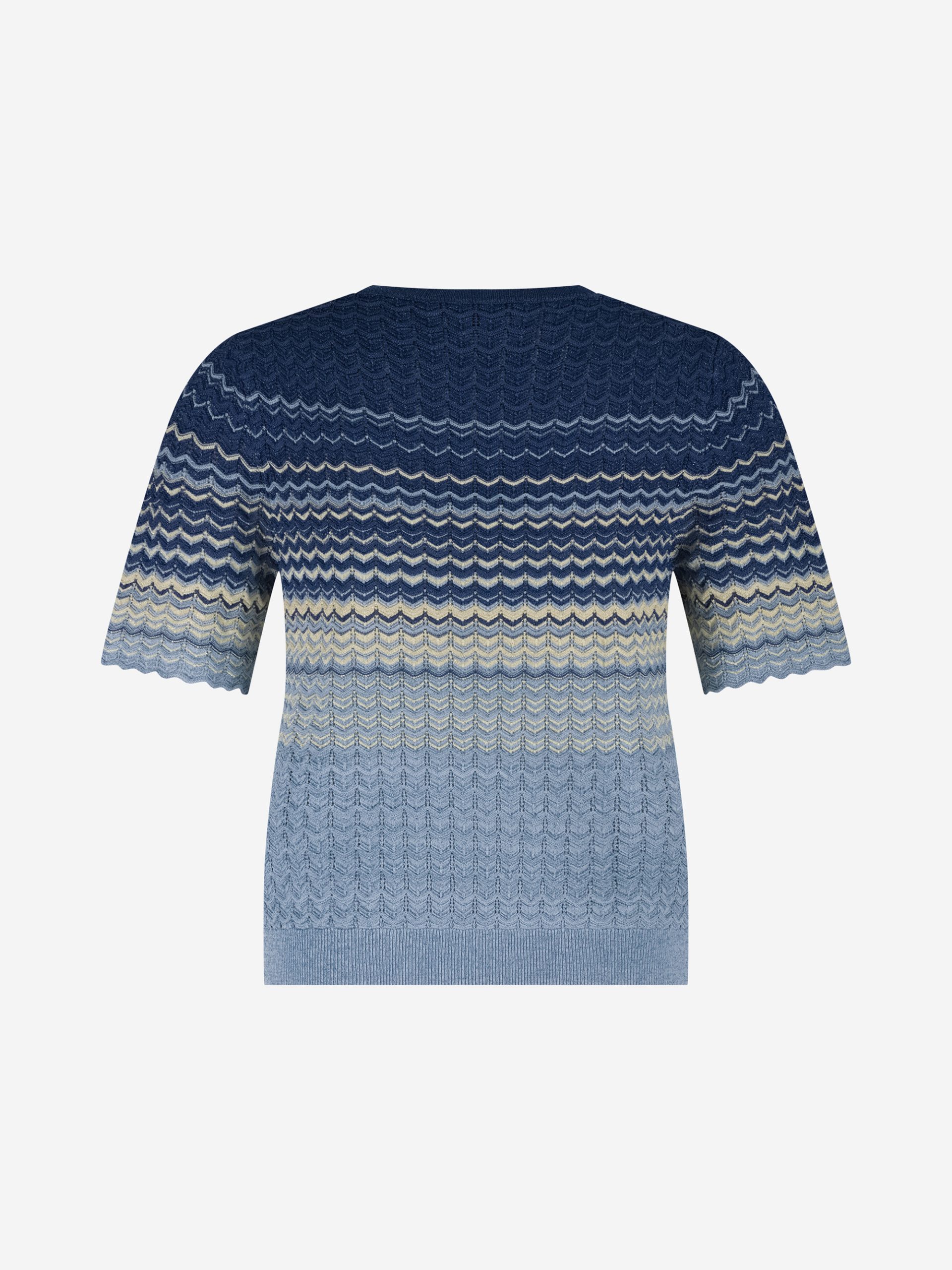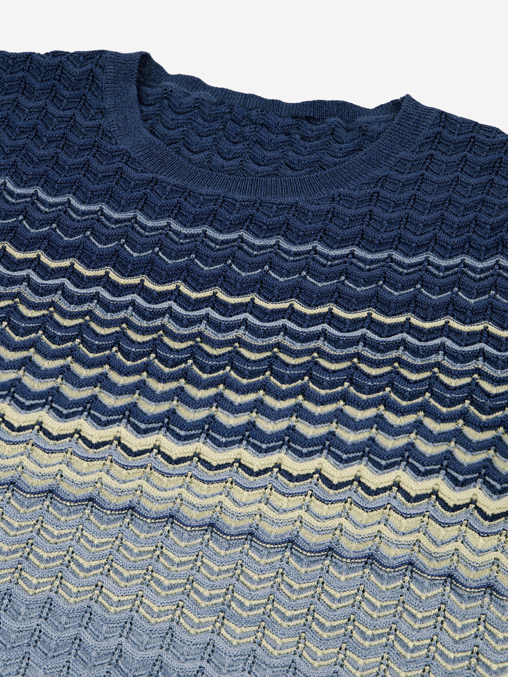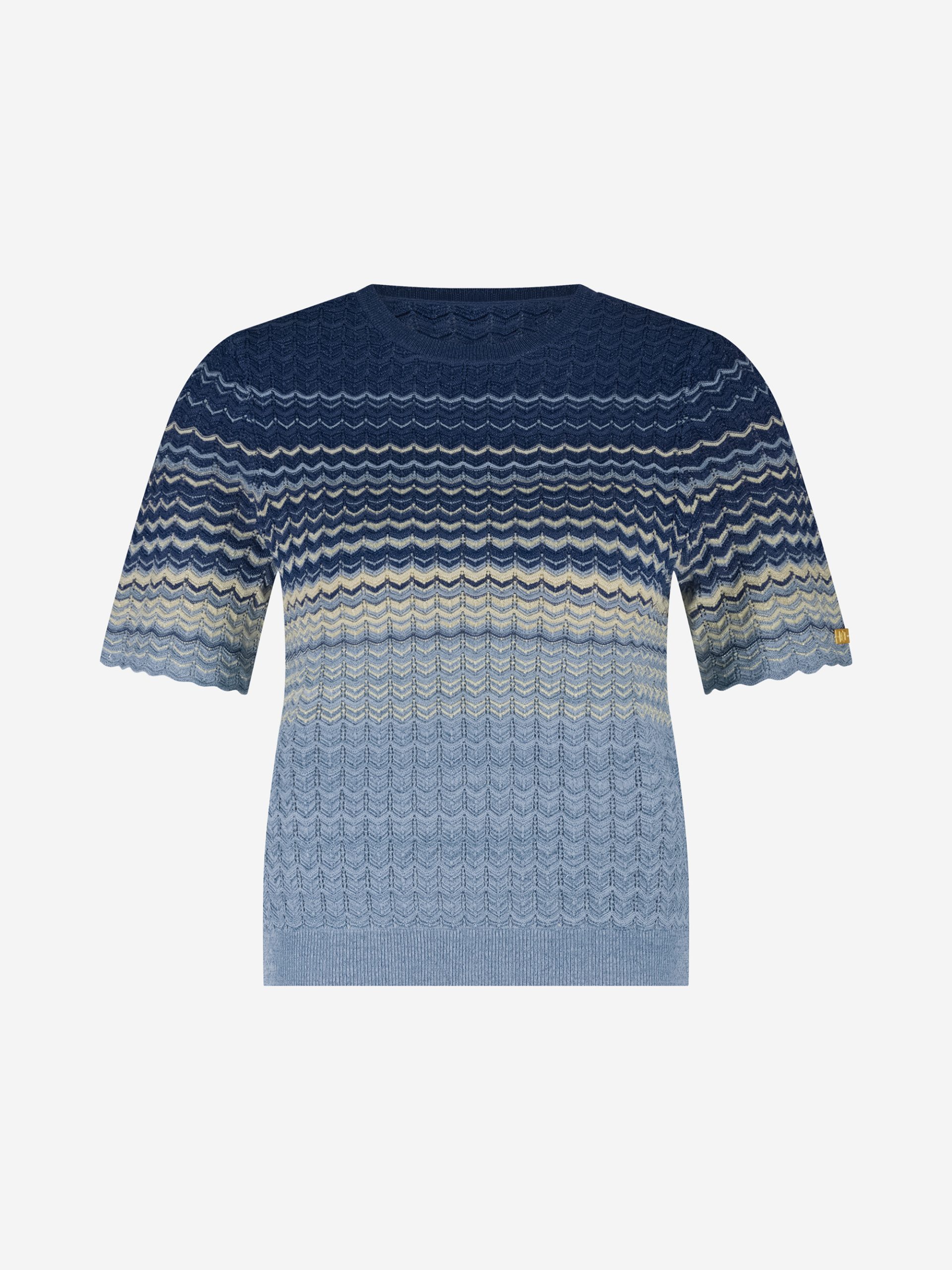 NIKKIE Women’s Ajour Knitted Top With Glitter Thread | Steel Blue Tie Dye