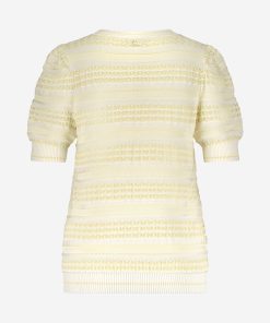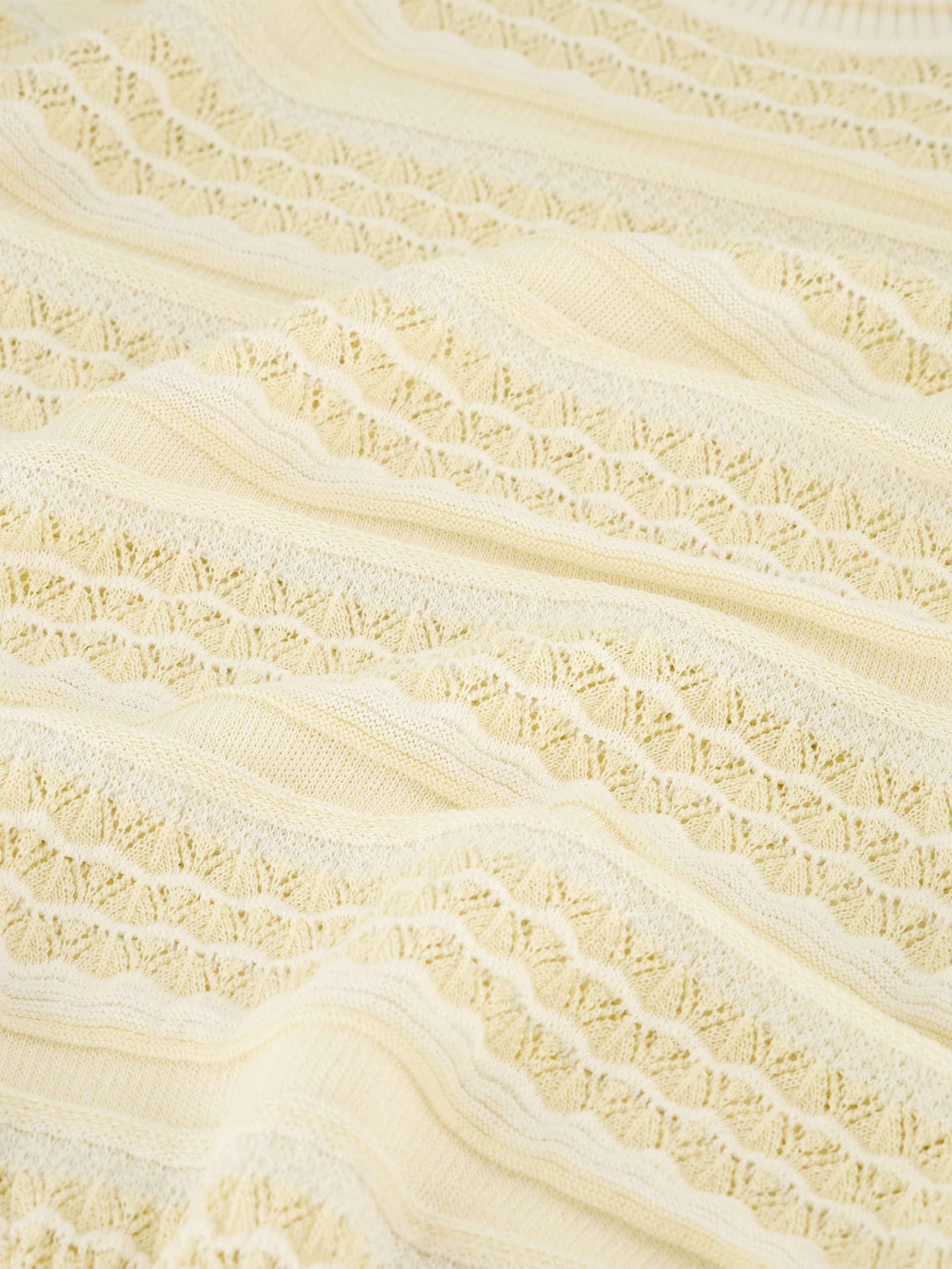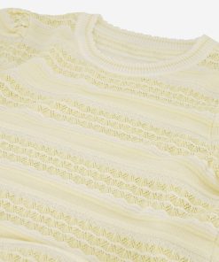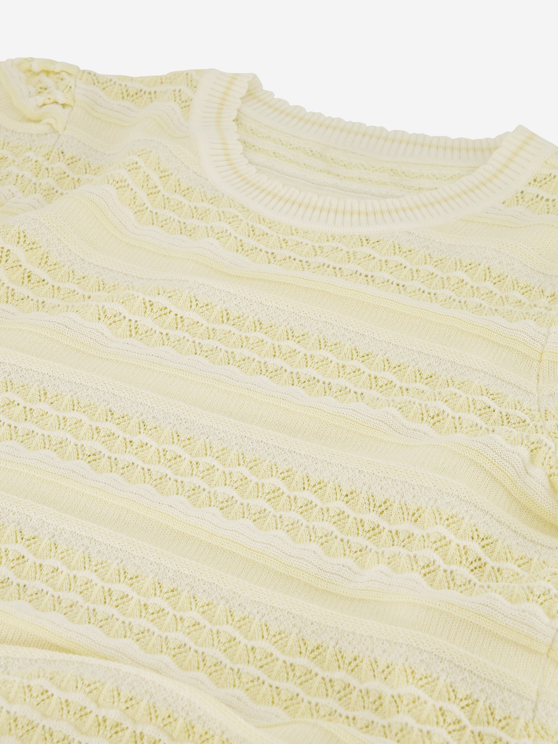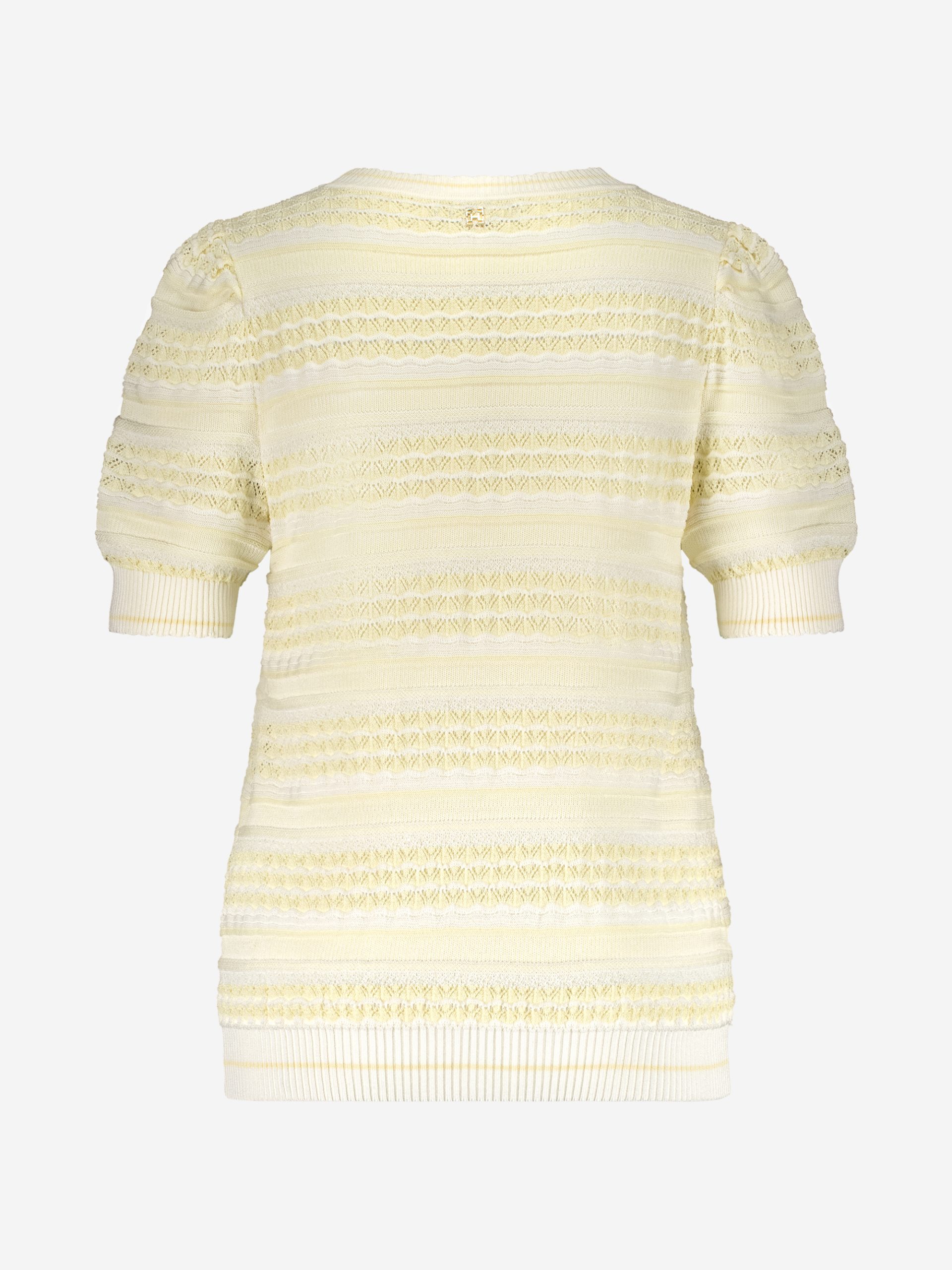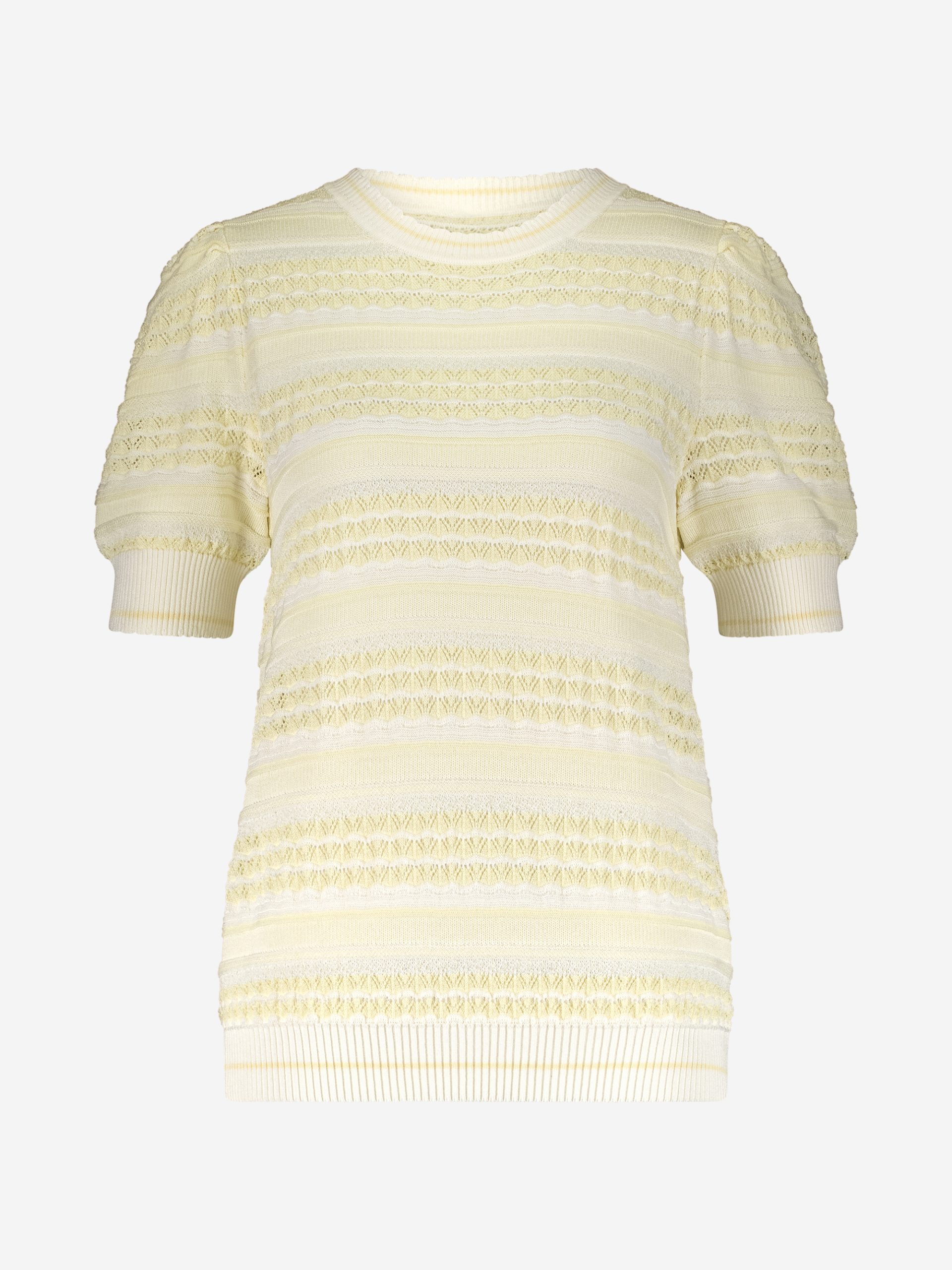 Product descriptionAjour knitted top with a round wavy neckline, slightly puffed sleeves and a regular fit.