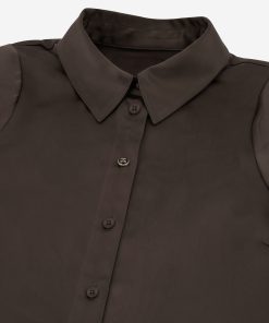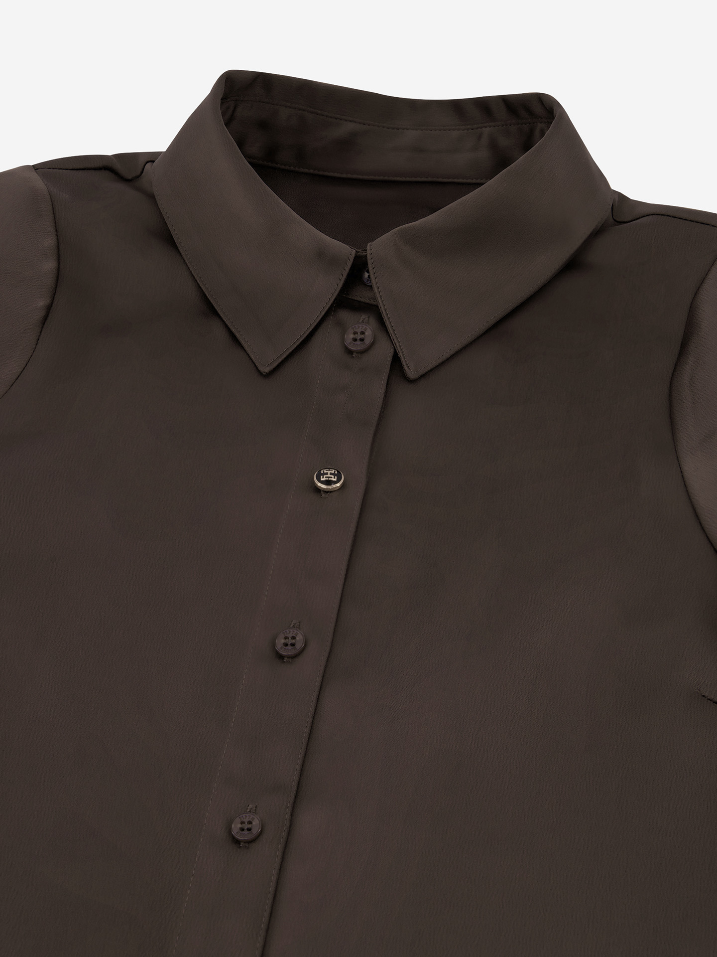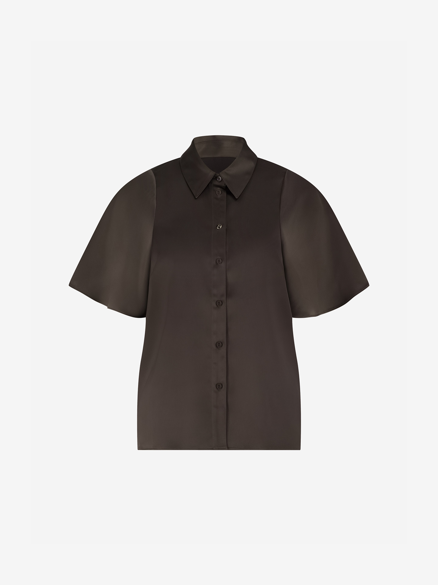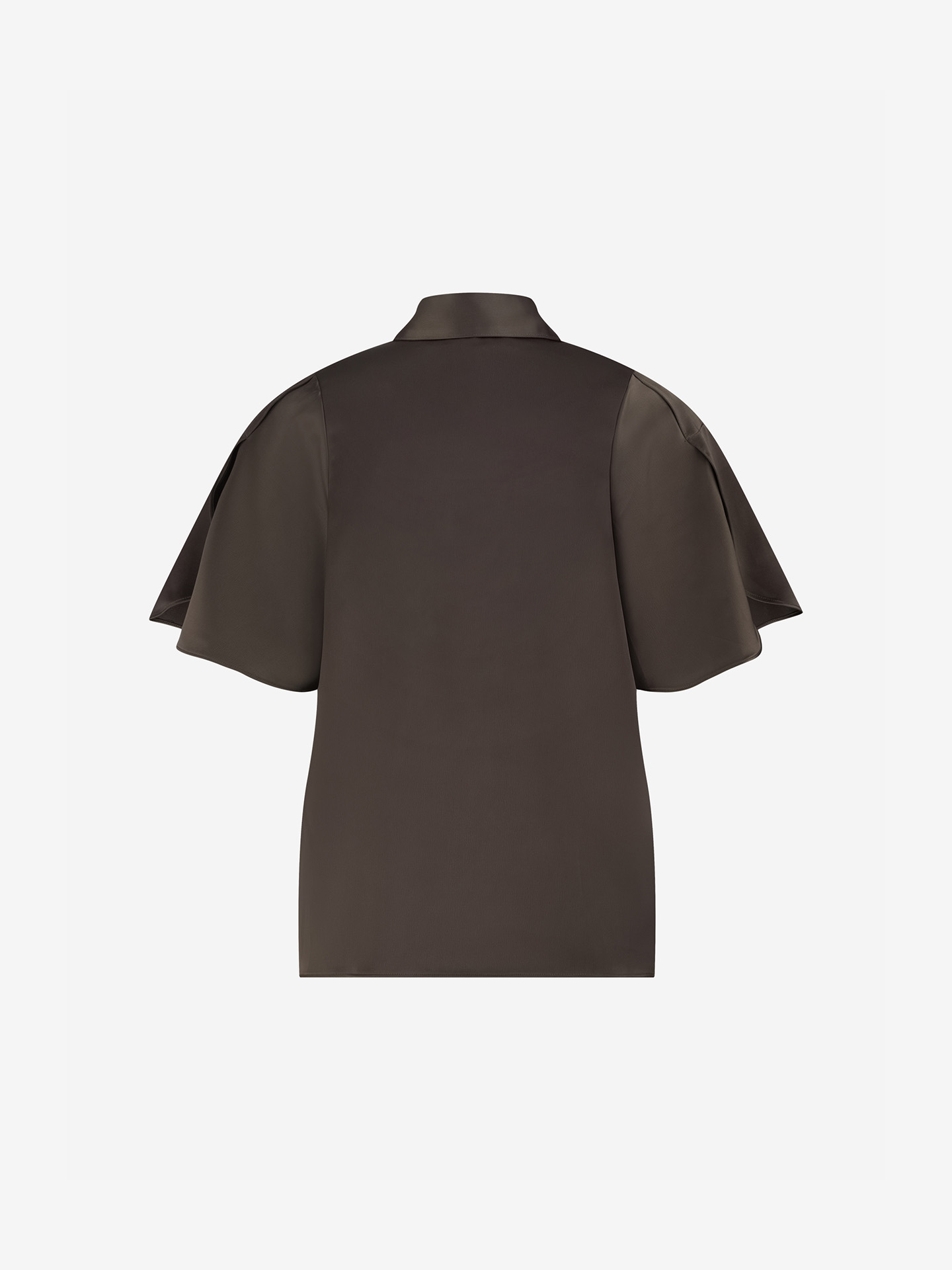 Product descriptionLoose-fitting blouse in smooth fabric with wide split sleeves that subtly overlap at the back. Features a classic collar and a button closure.