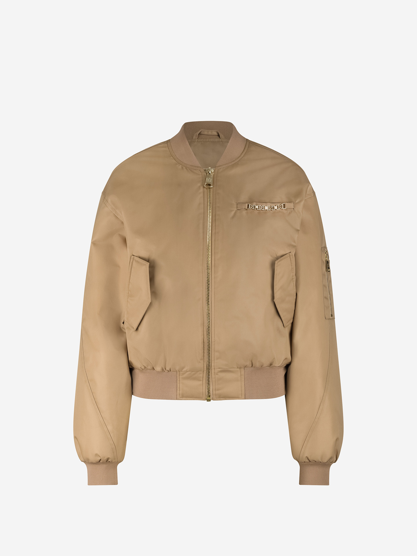 Product descriptionBomber jacket with a round neckline, ribbed cuffs and hem, and a logo detail. Features flap pockets and a wide, oversized fit.