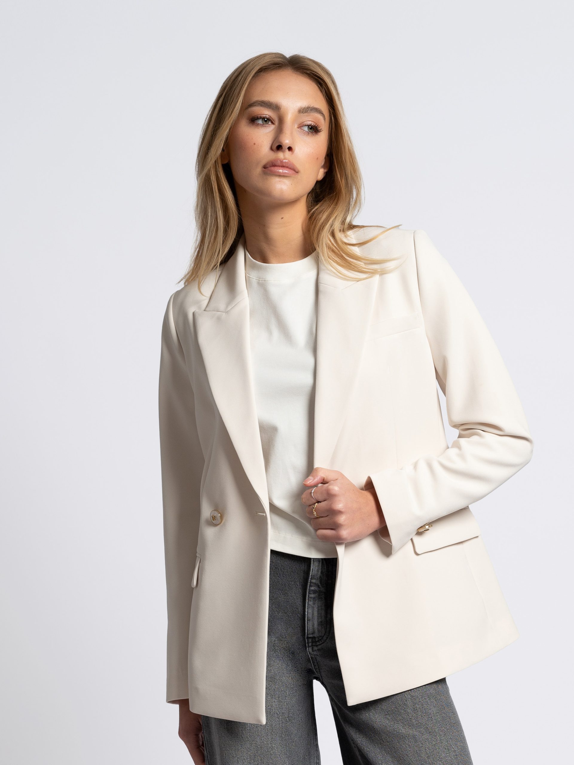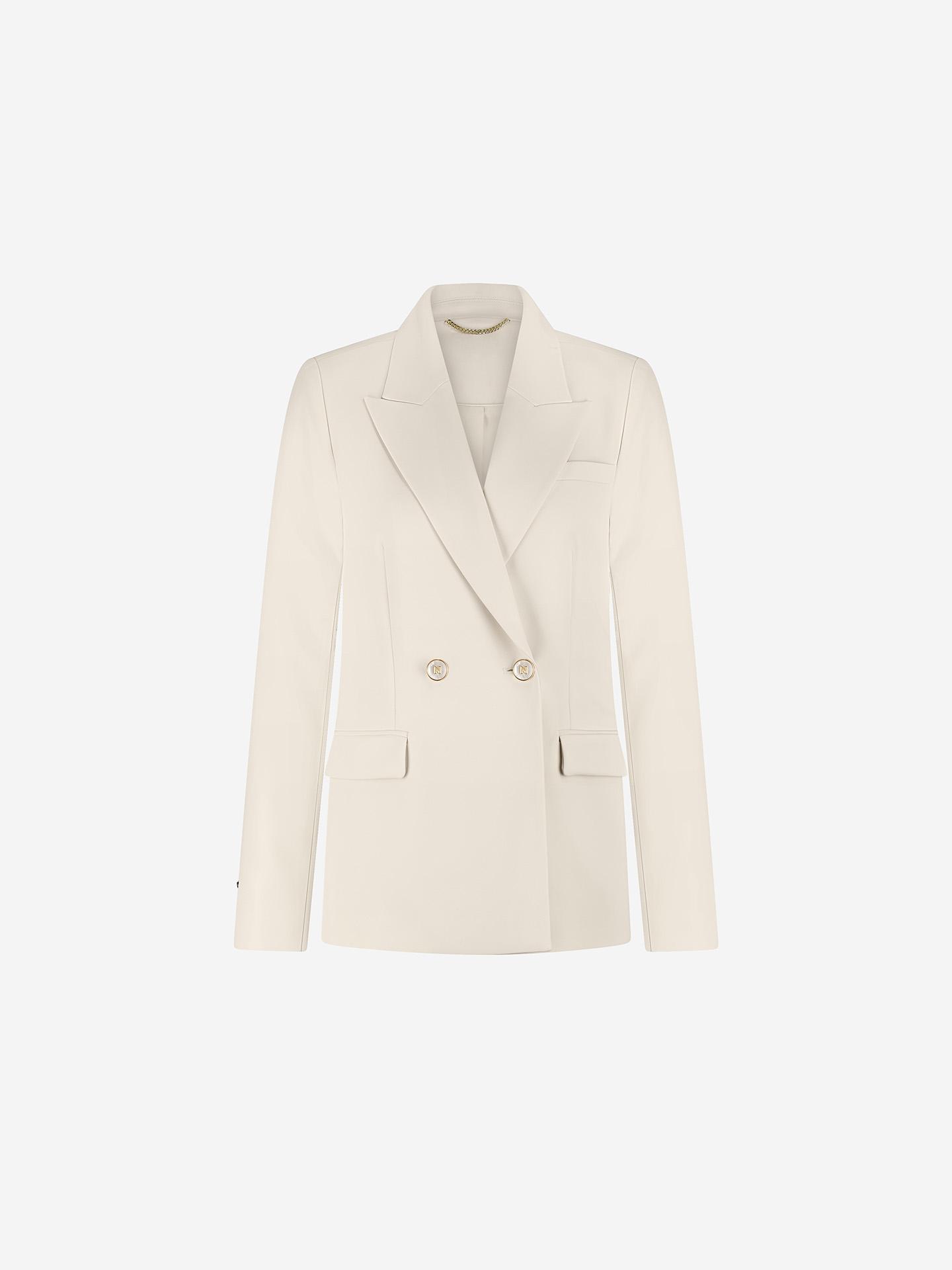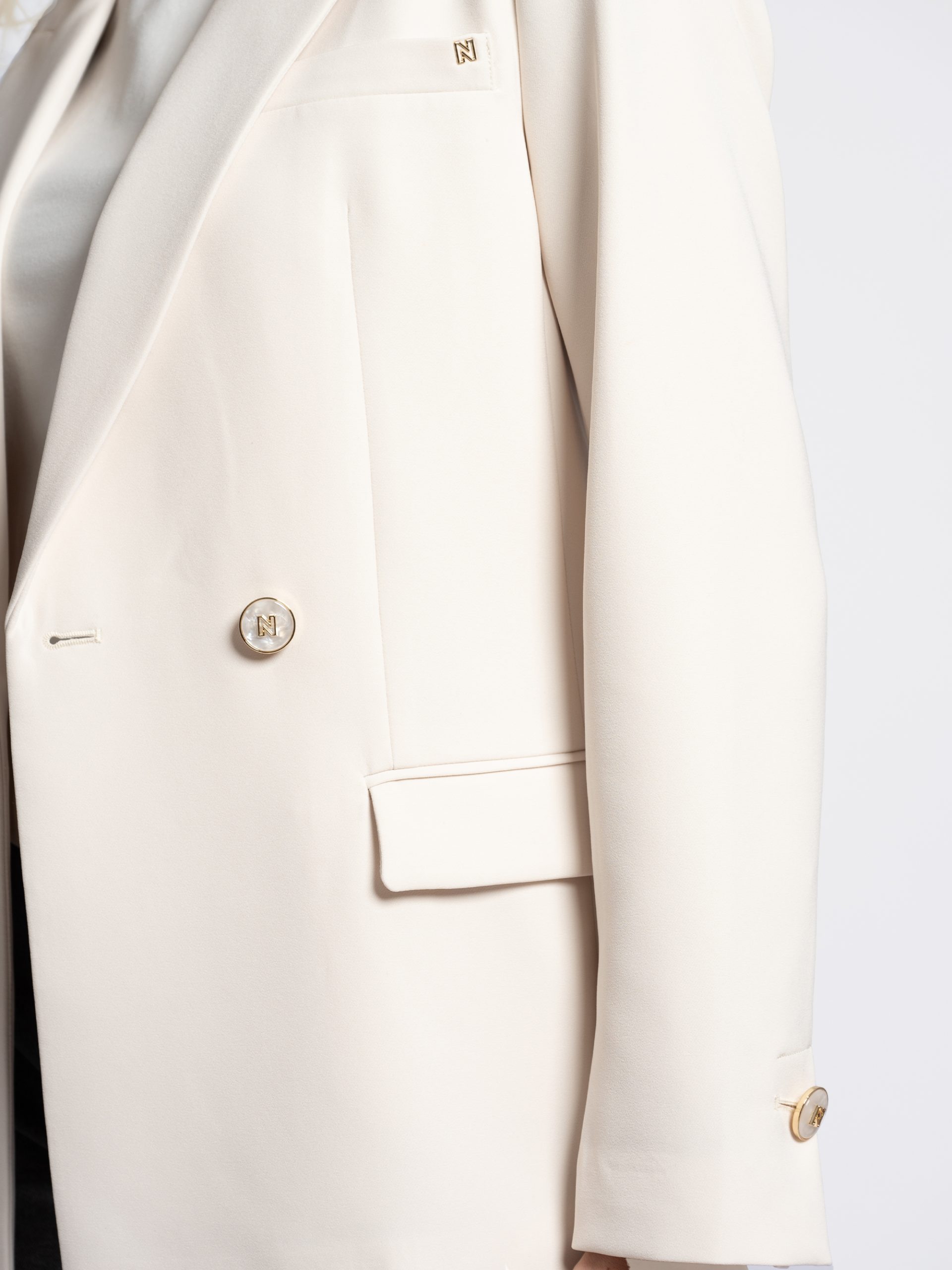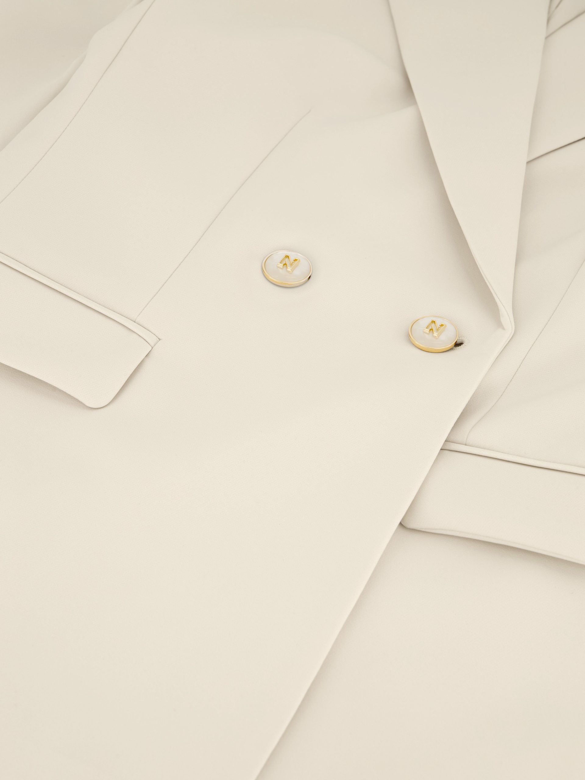 Product descriptionClassic double-breasted blazer with a lapel collar and mother-of-pearl buttons. The blazer features flap pockets and a tailored fit.