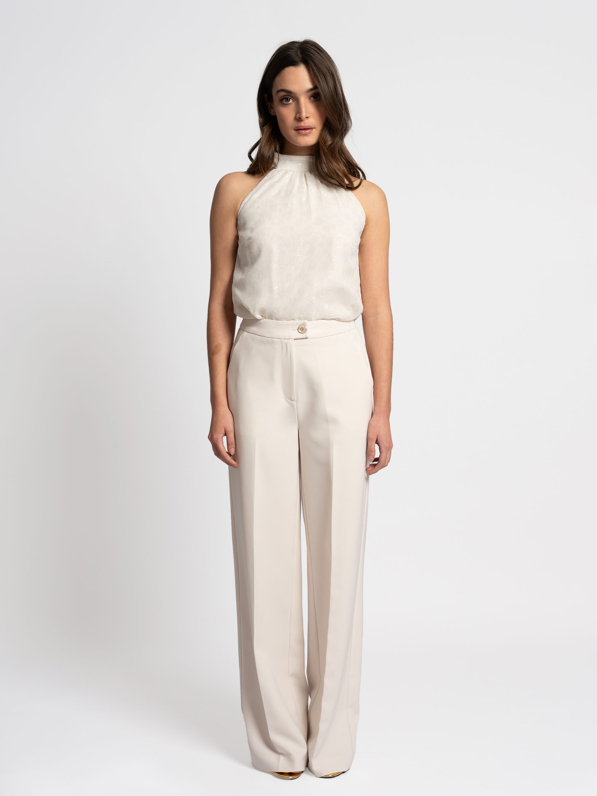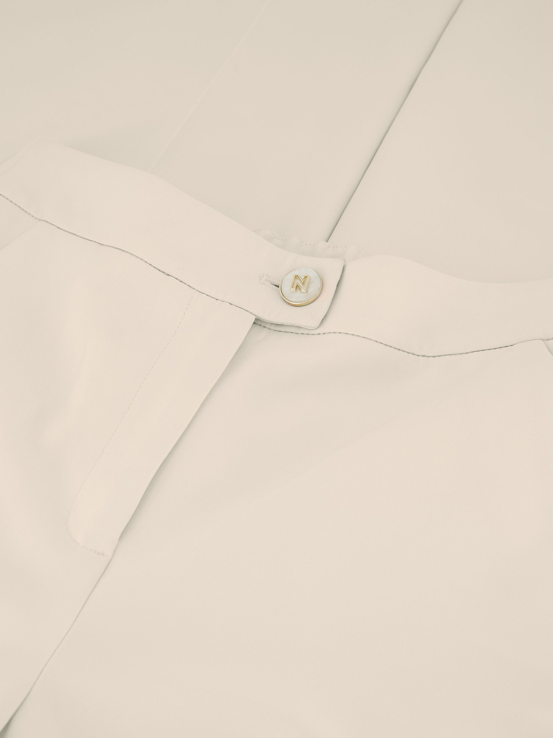 Product descriptionClassic pants with straight, loose legs, a mid-rise waist, and a pearl zipper and button closure. The trousers feature pockets and stretch fabric.