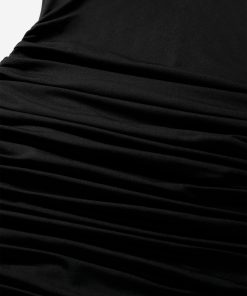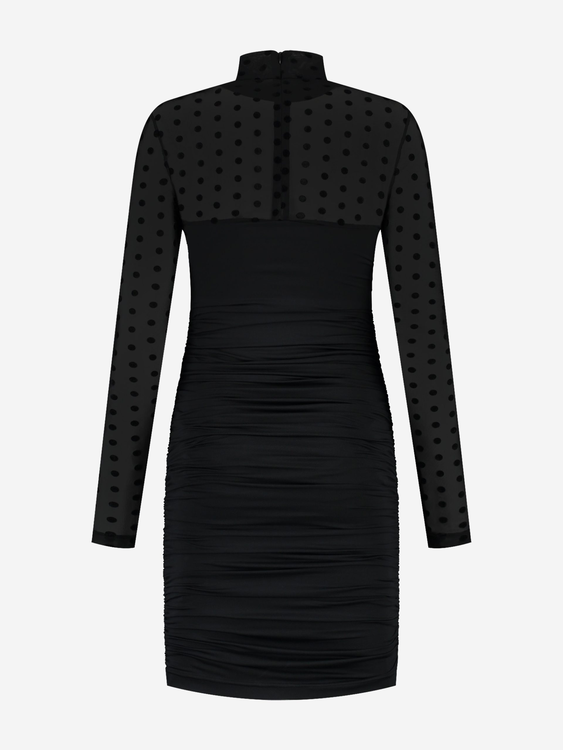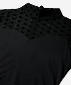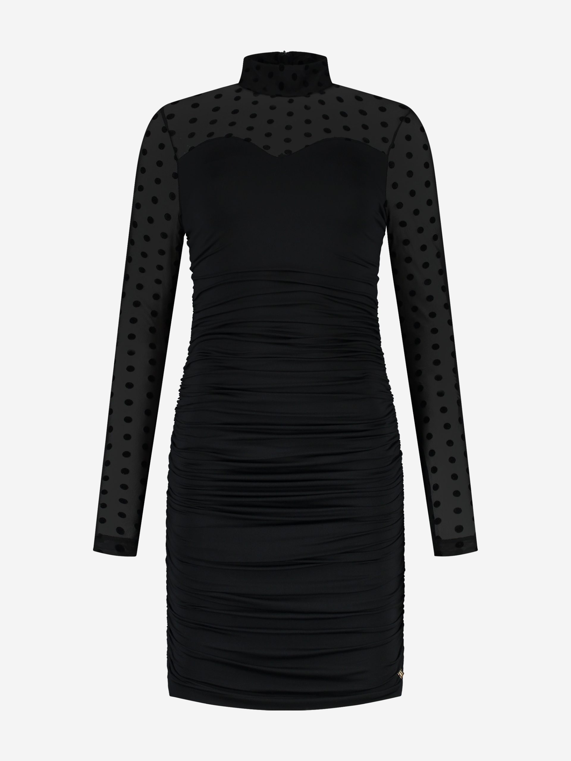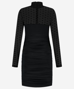 NIKKIE Women’s Draped Dress With Dotted Mesh Sleeves And Turtleneck | Black