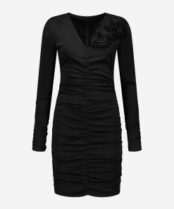 NIKKIE Women’s Draped Dress With Flower Detail | Black
