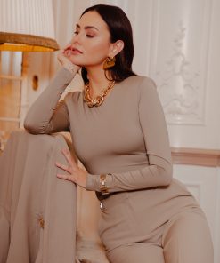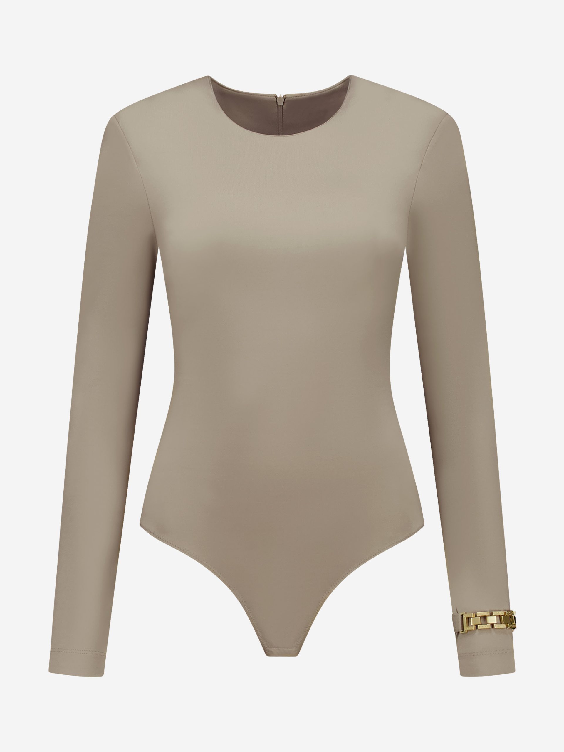 Product descriptionFitted thong body with a chain detail on the sleeve, a round neckline and a zipper. The body has stretch and press studs at the crotch.