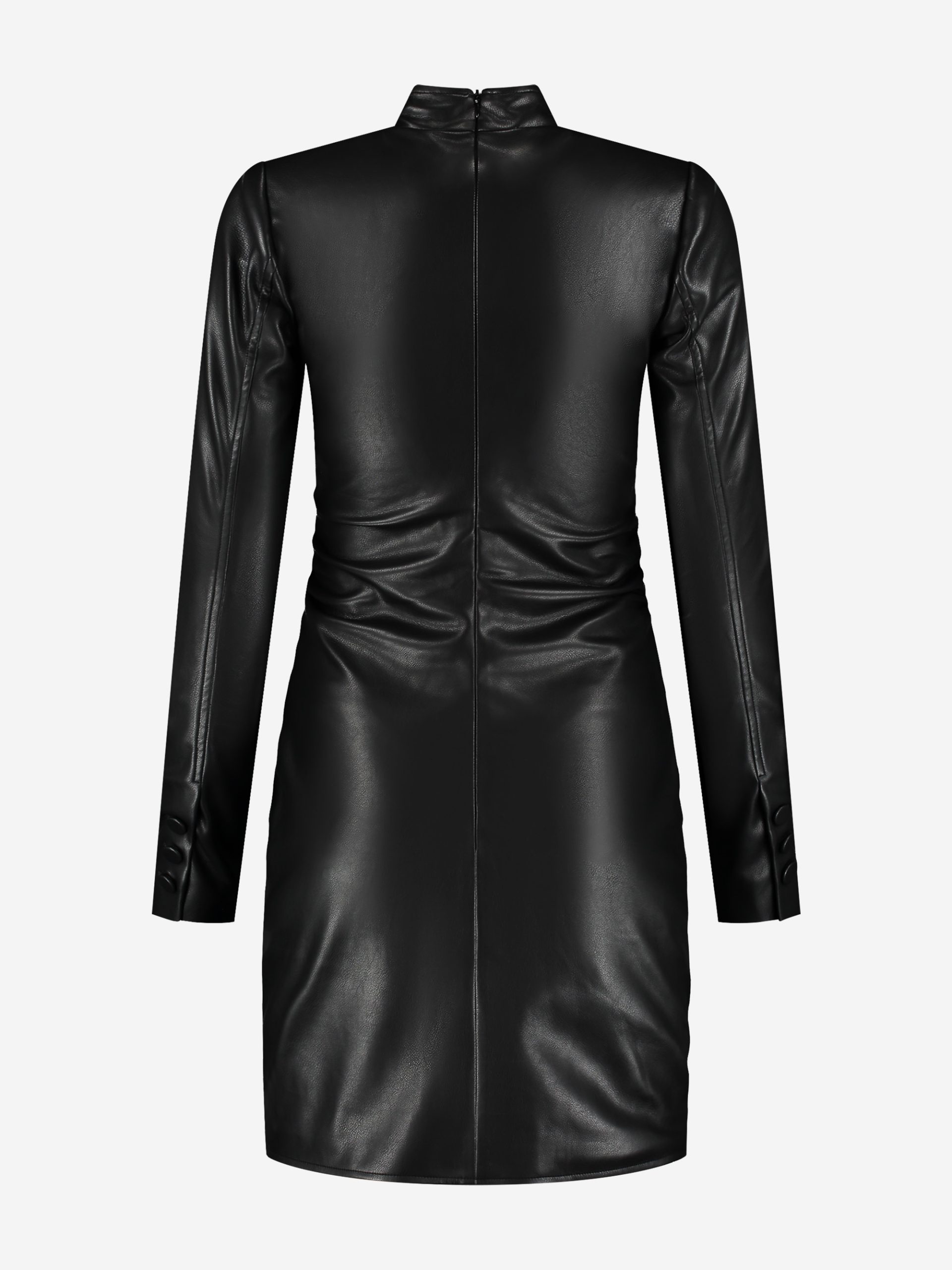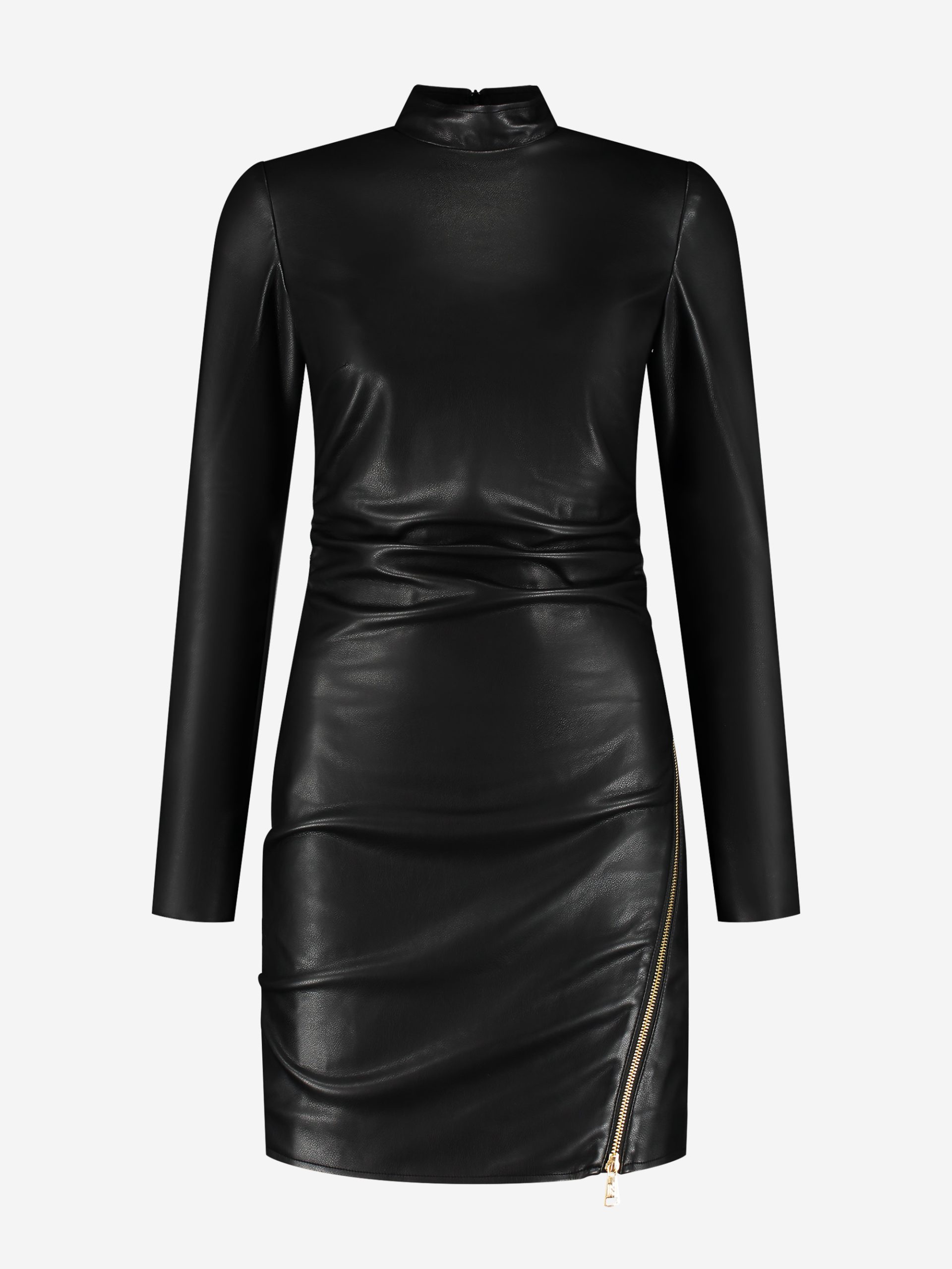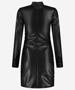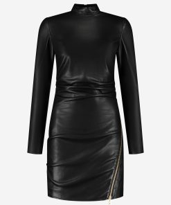 NIKKIE Women’s Fitted Faux Leather Dress With Zipper Detail | Black