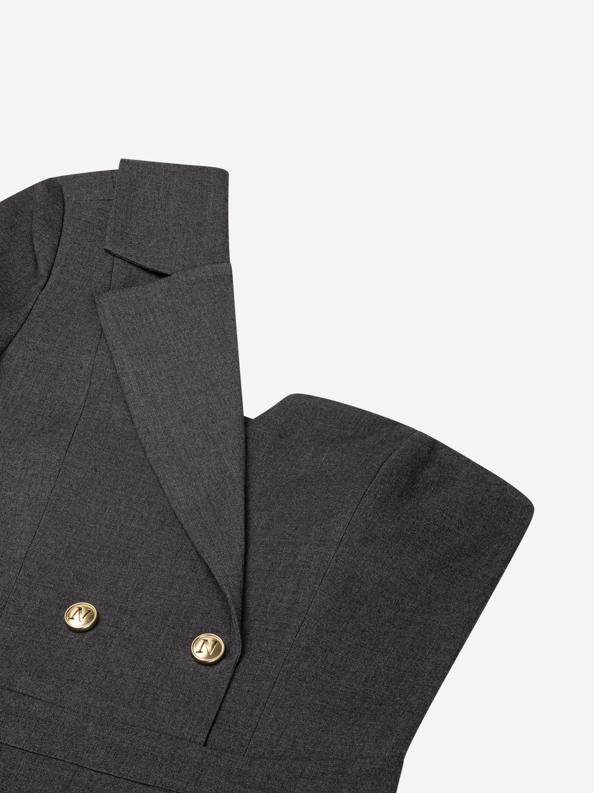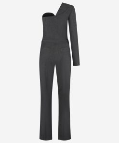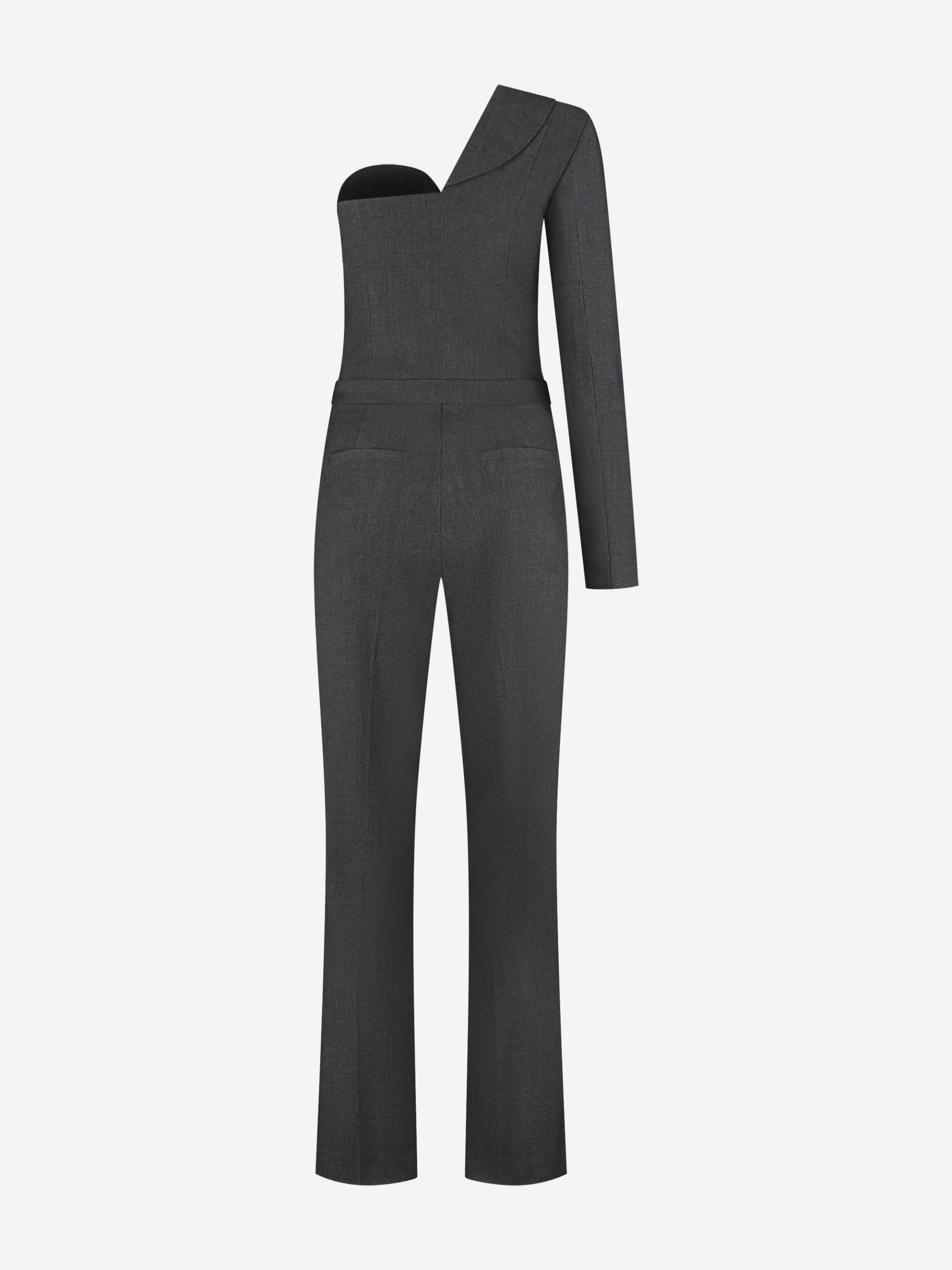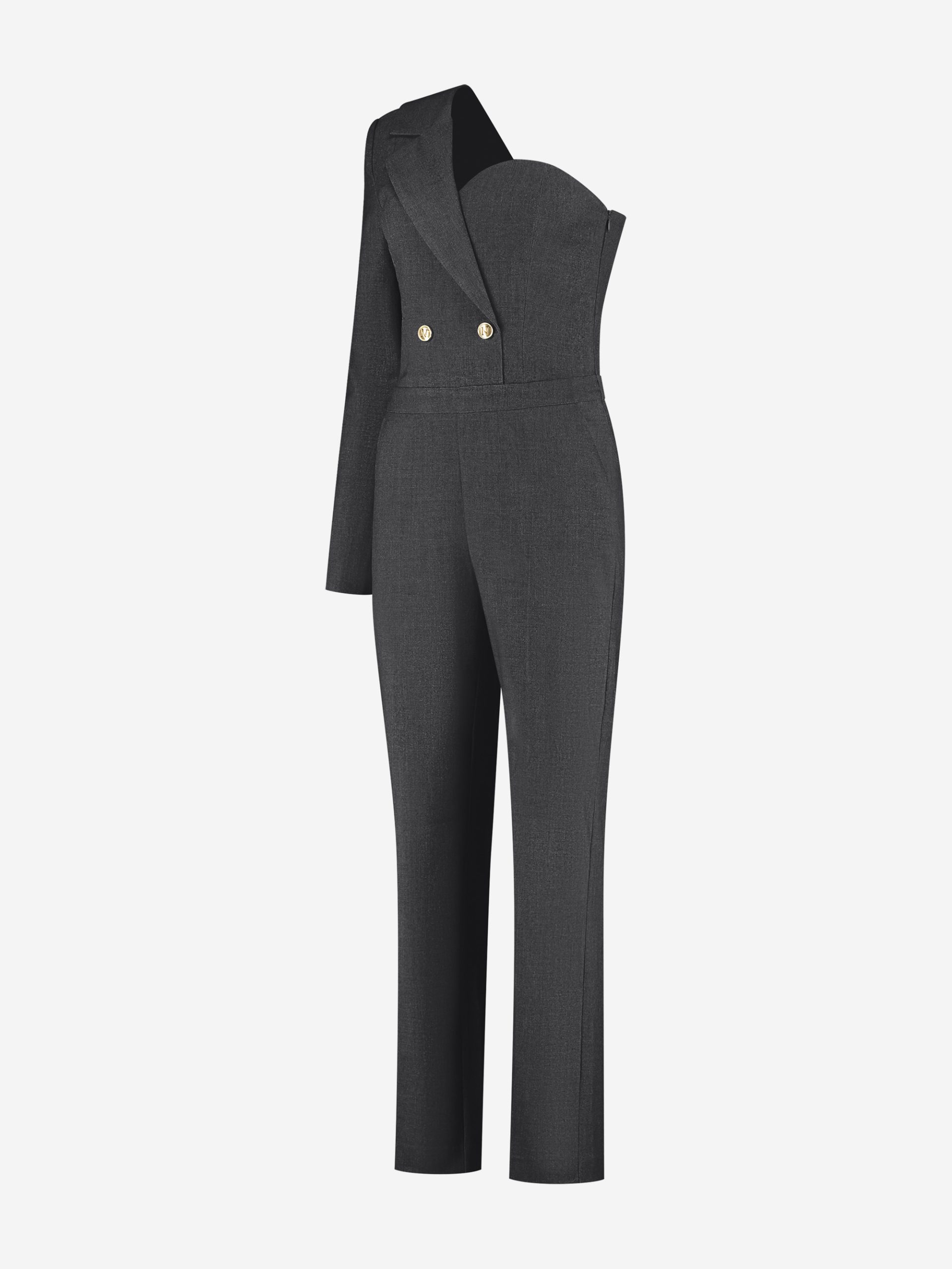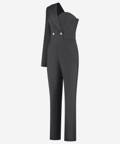 Product descriptionFitted one-shoulder jumpsuit with decorative buttons and pockets. The jumpsuit has a zipper, a collar (on one side) and no stretch.