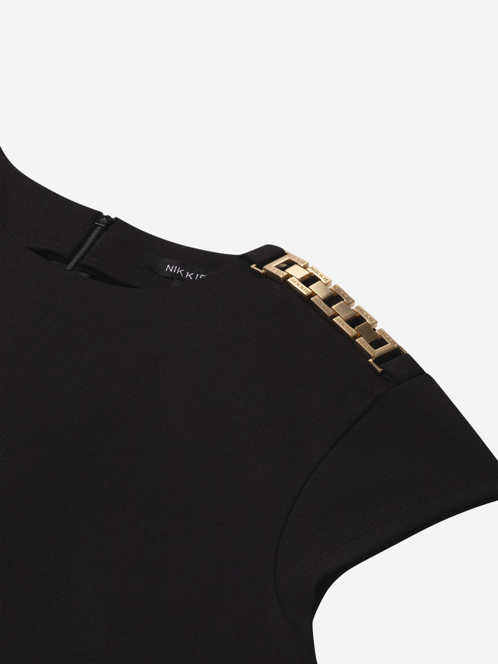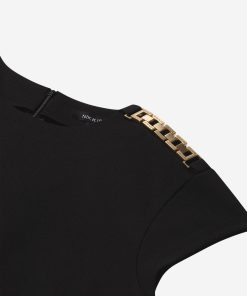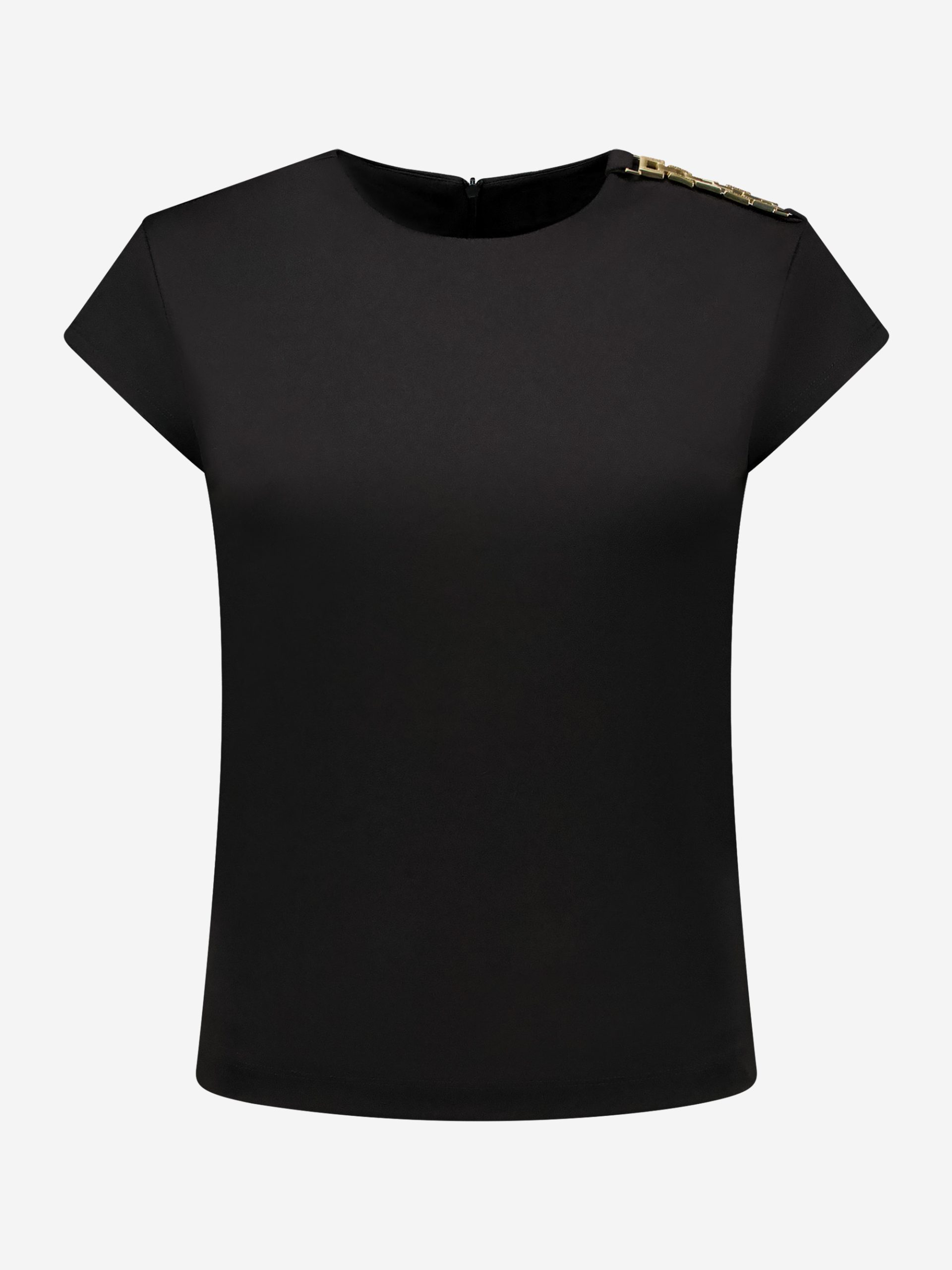 Product descriptionFitted top with chain detail on the shoulder, a round neck and a zipper.