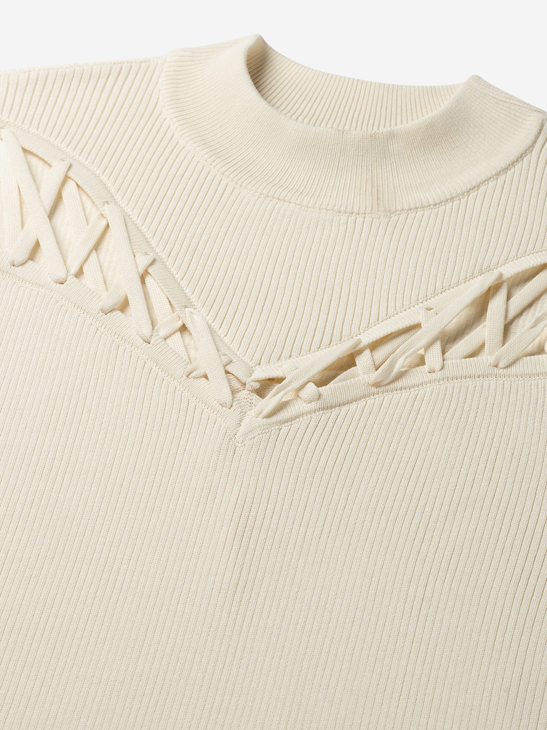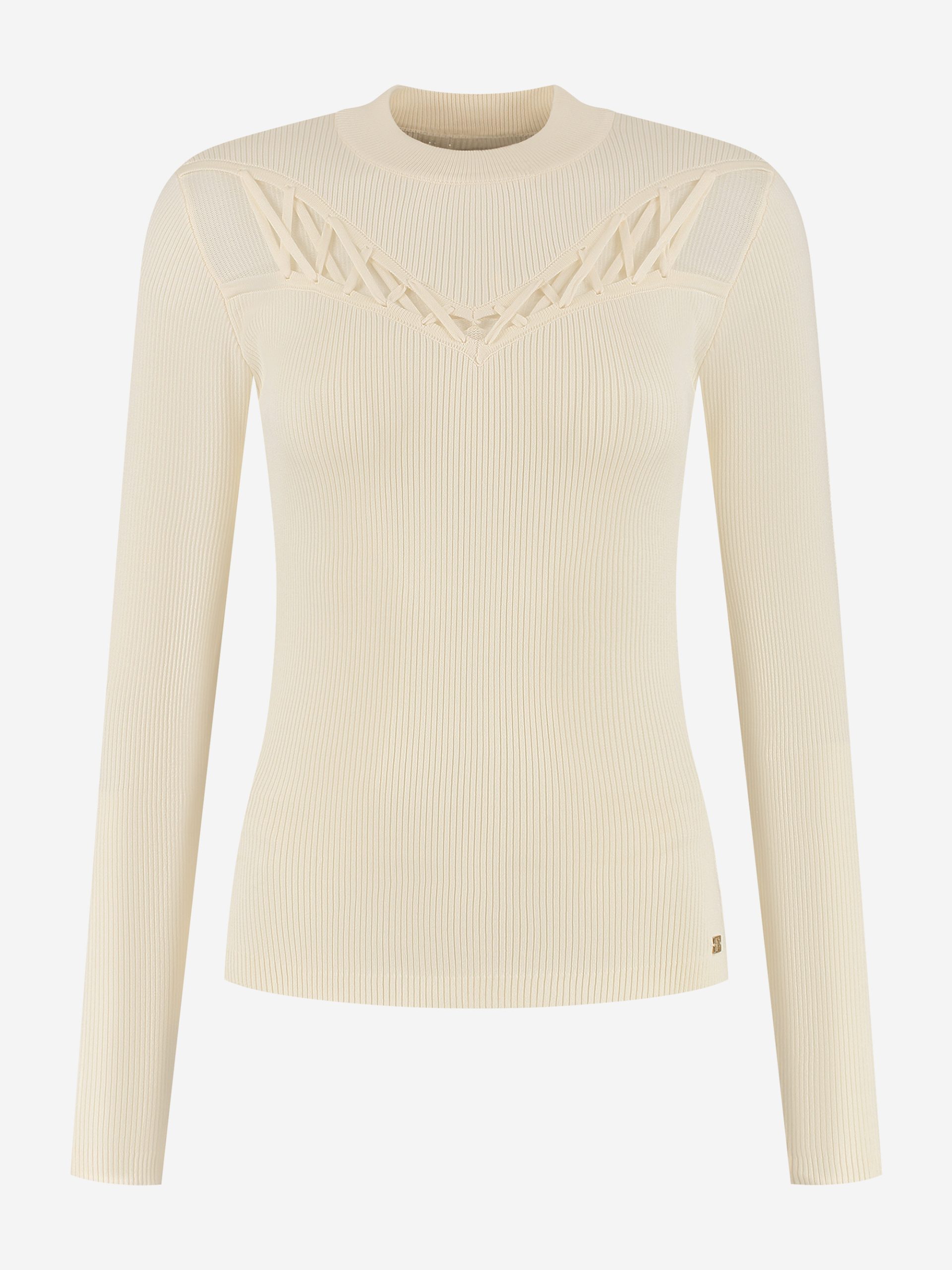 Product descriptionFitted top with ribbed fabric and a lace detail at the neck. The top has a round neck and stretch.