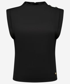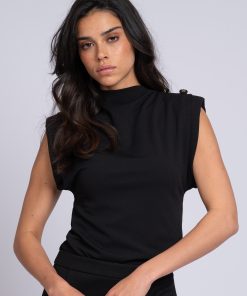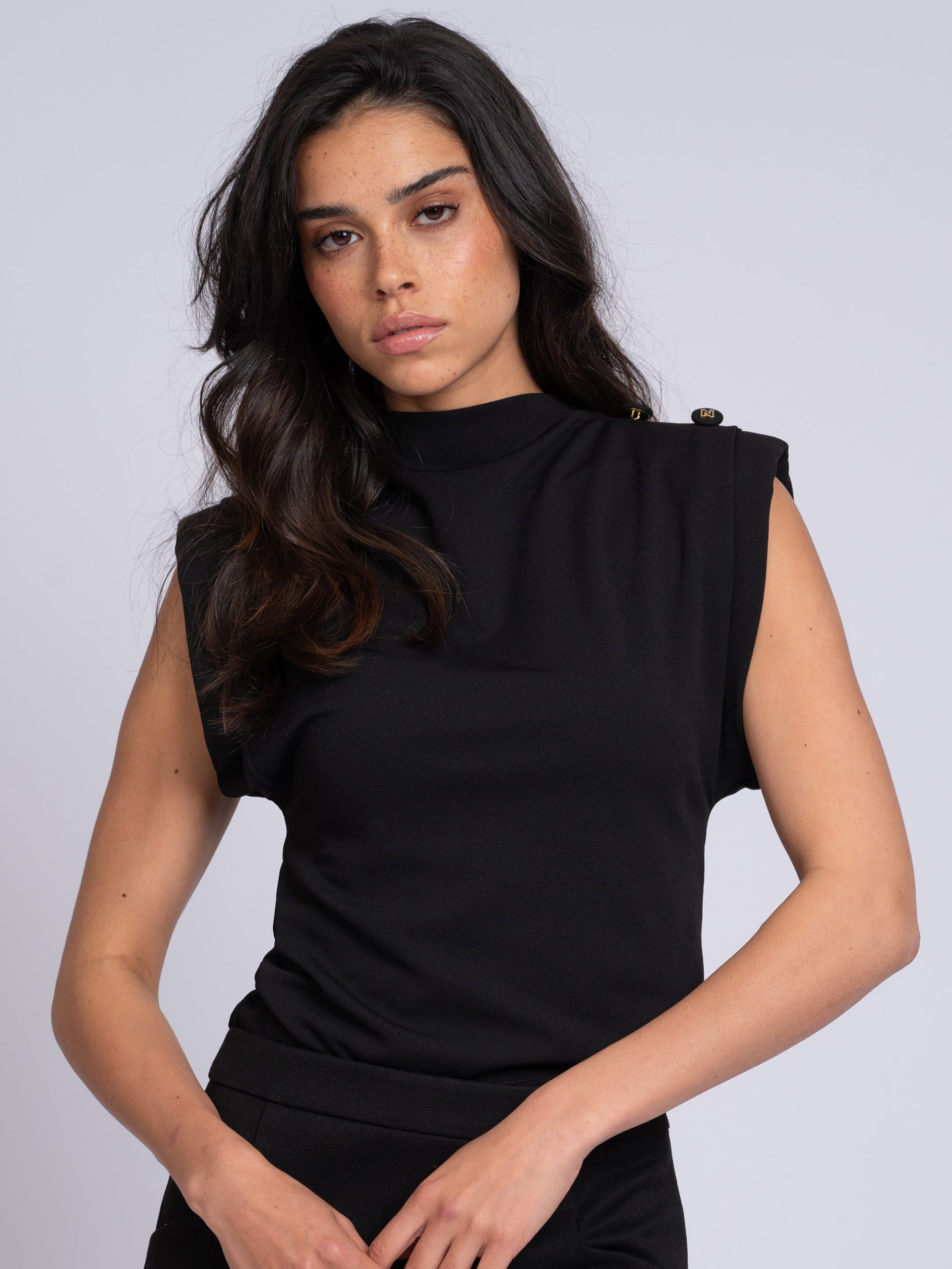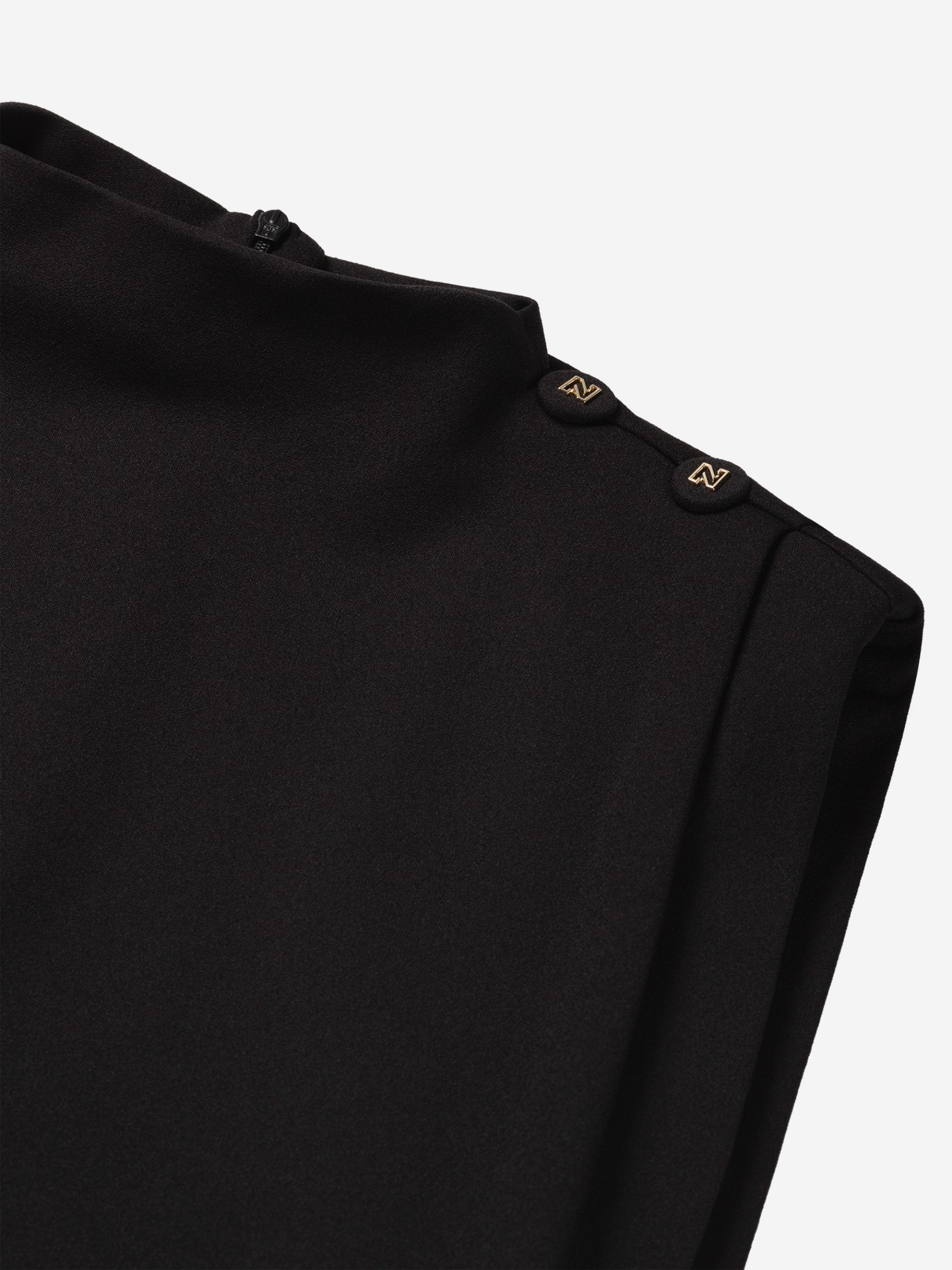 Product descriptionFitted top with wide shoulders, a high neck and subtle button accents on the shoulders. The top has a smooth, sturdy fabric and normal stretch.