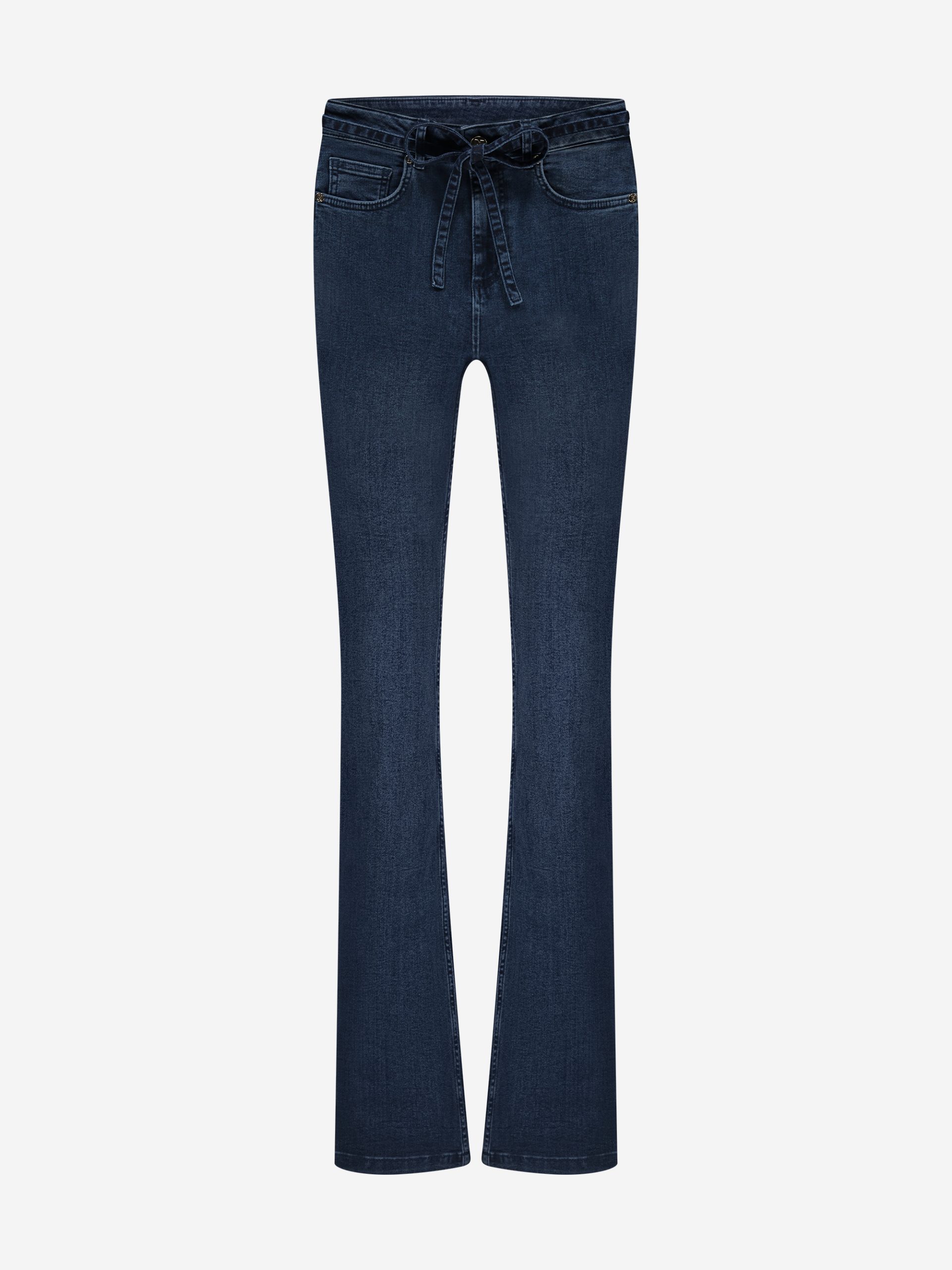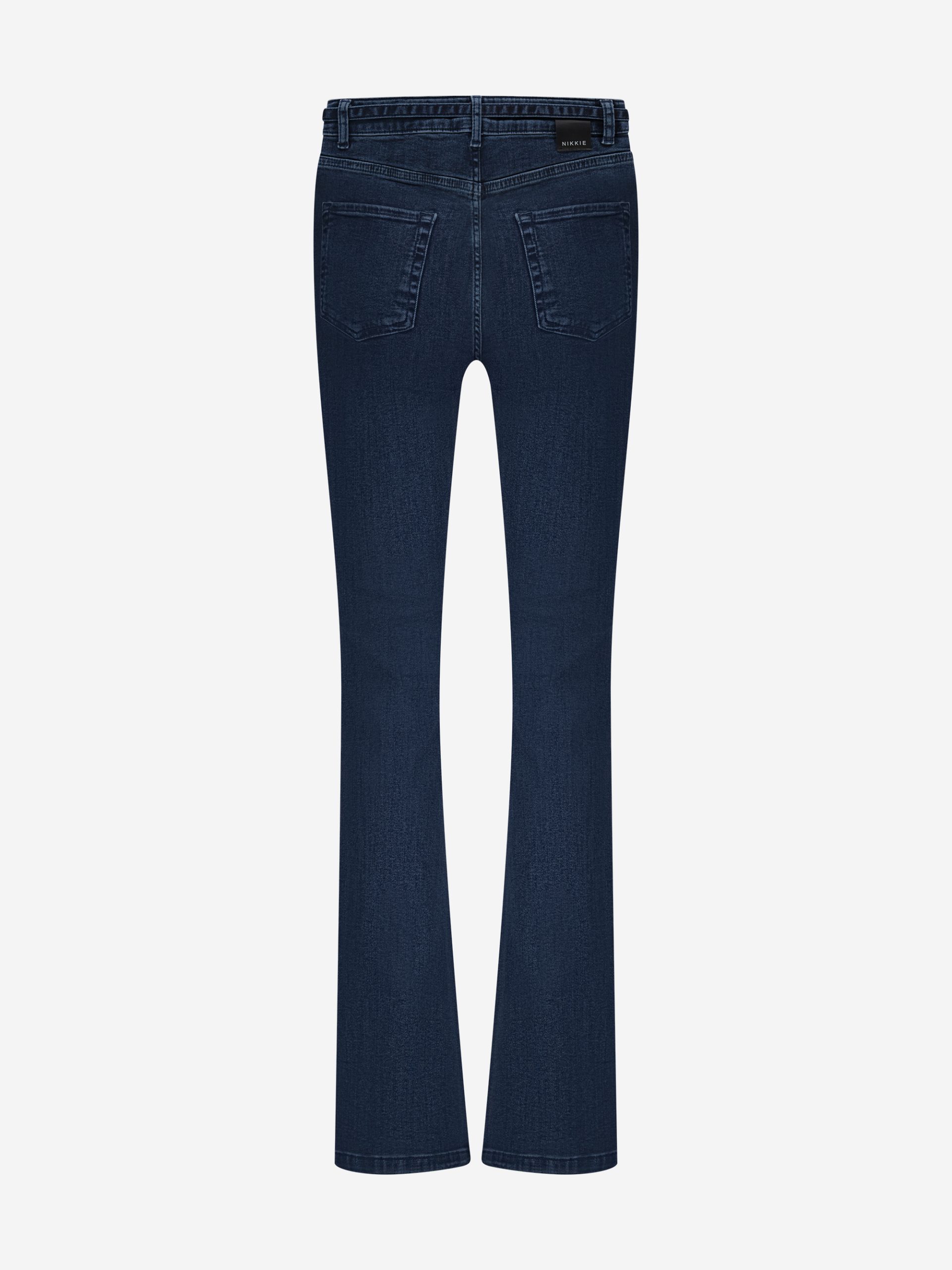 NIKKIE Women’s Flared Jeans With Detachable Tie Cord | Mid Blue Denim