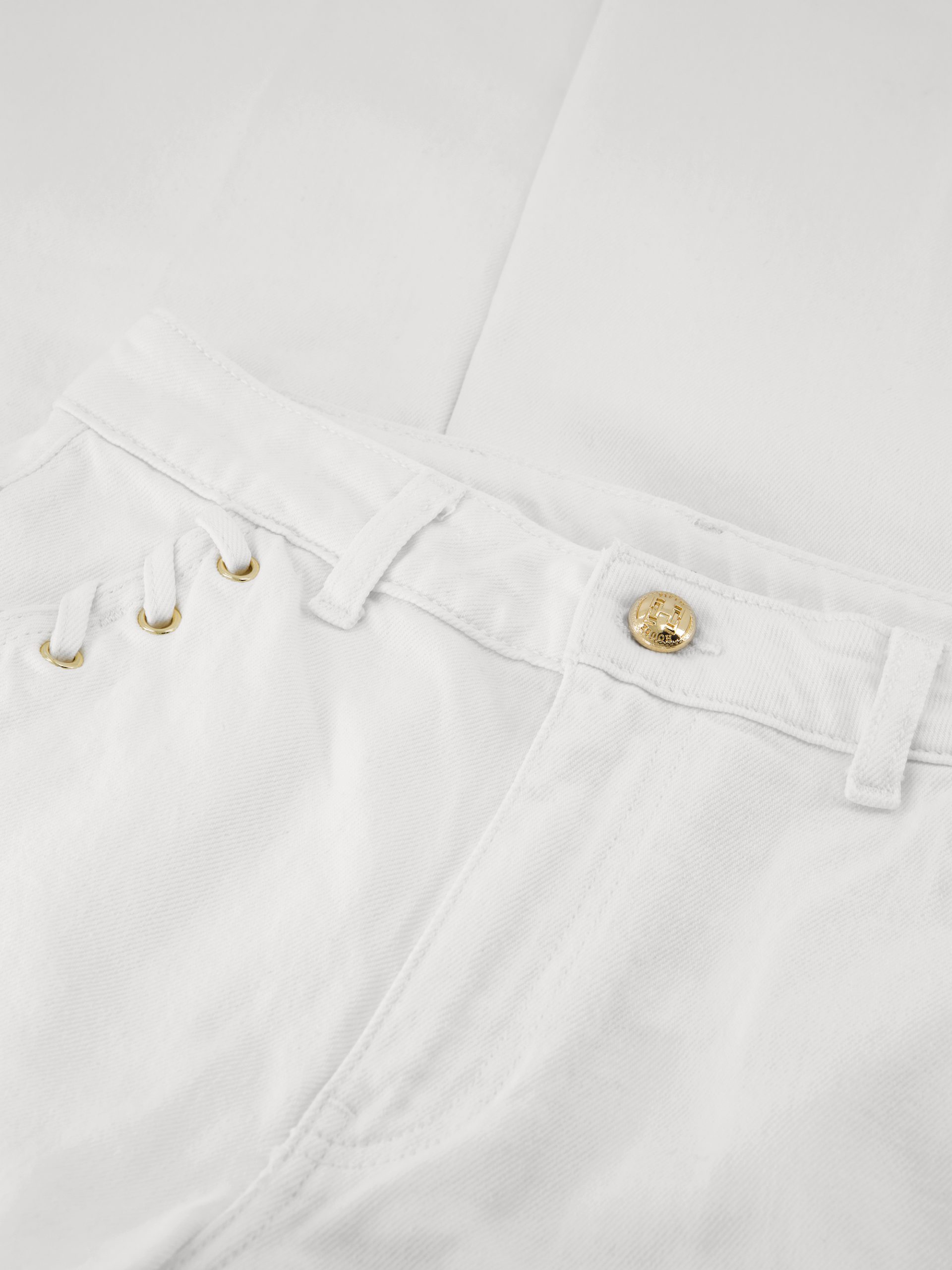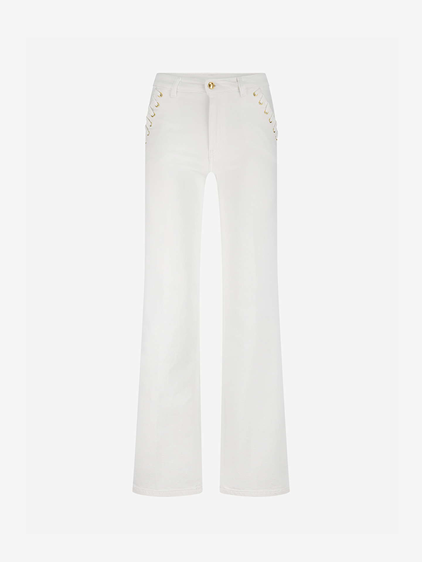 Product descriptionFlared jeans with lace-up details, a mid-rise waist and pockets. The jeans have a zip and button closure.
