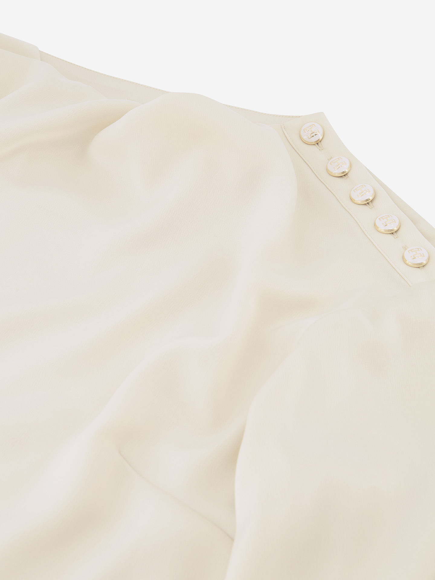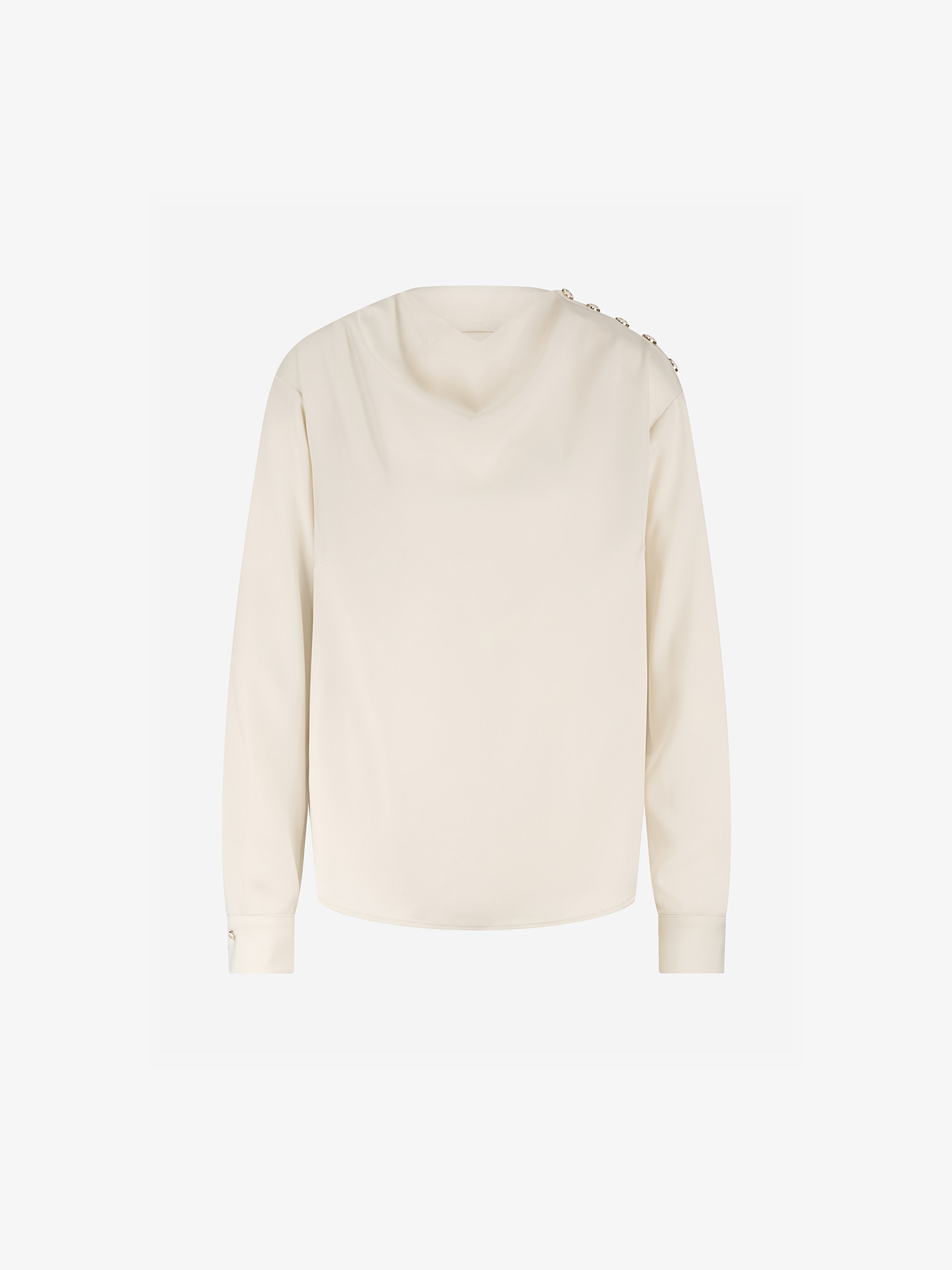 Product descriptionBlouse with a high turtleneck, a draped neckline, and an embroidered logo. The blouse features button details on the shoulder, a smooth fabric, and a relaxed fit.