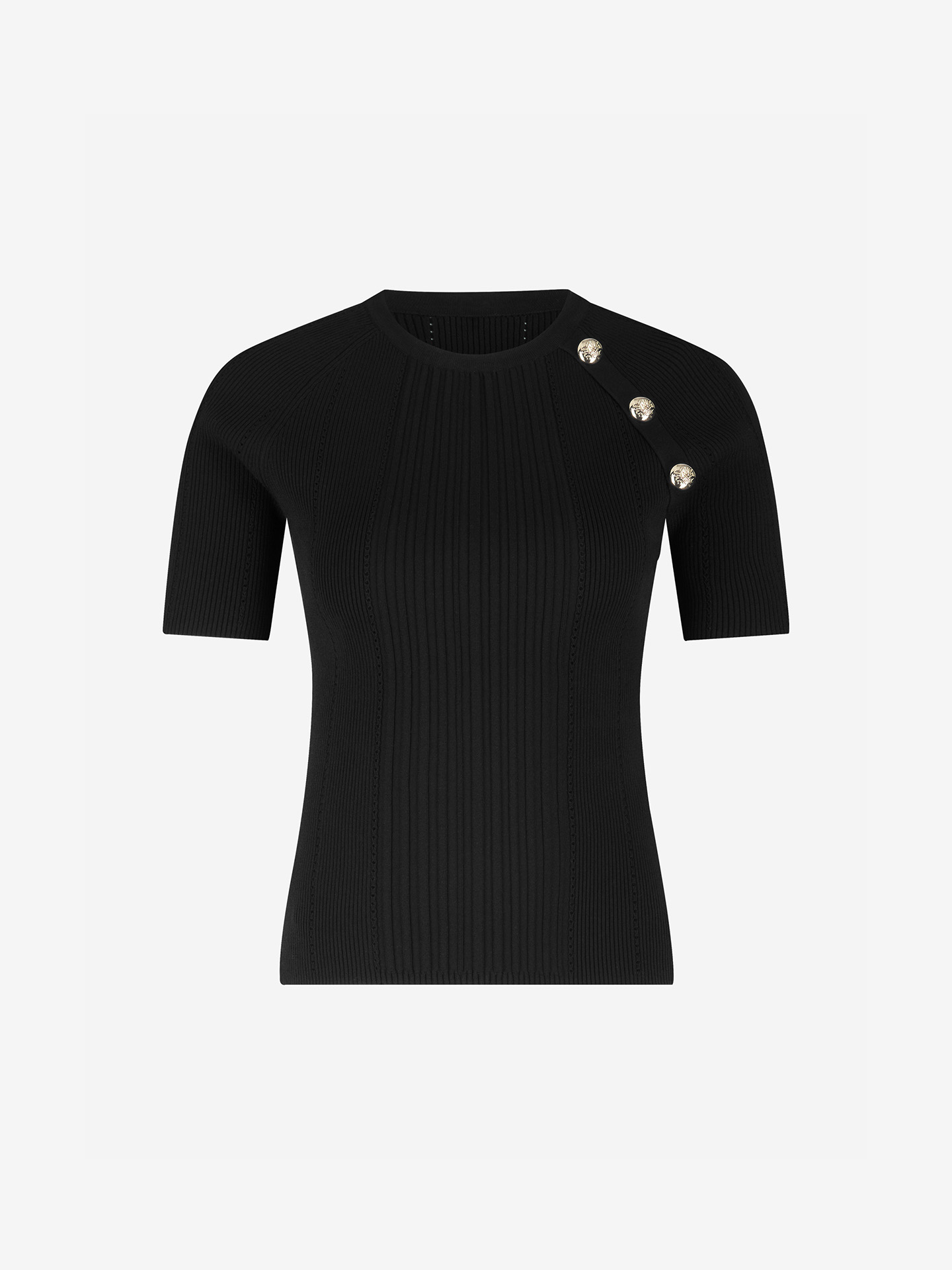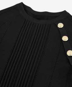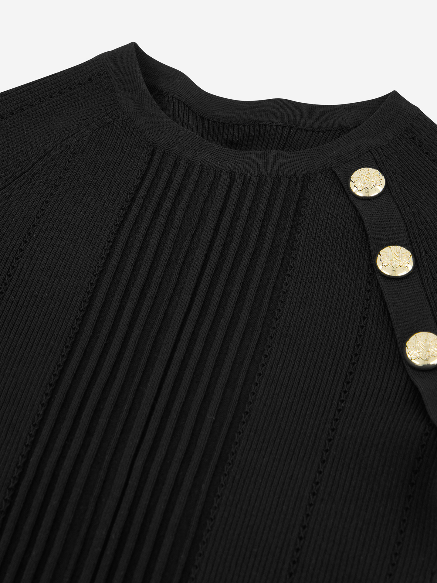 Product descriptionKnitted top with a vertical ribbed texture, a round neckline, and button details.