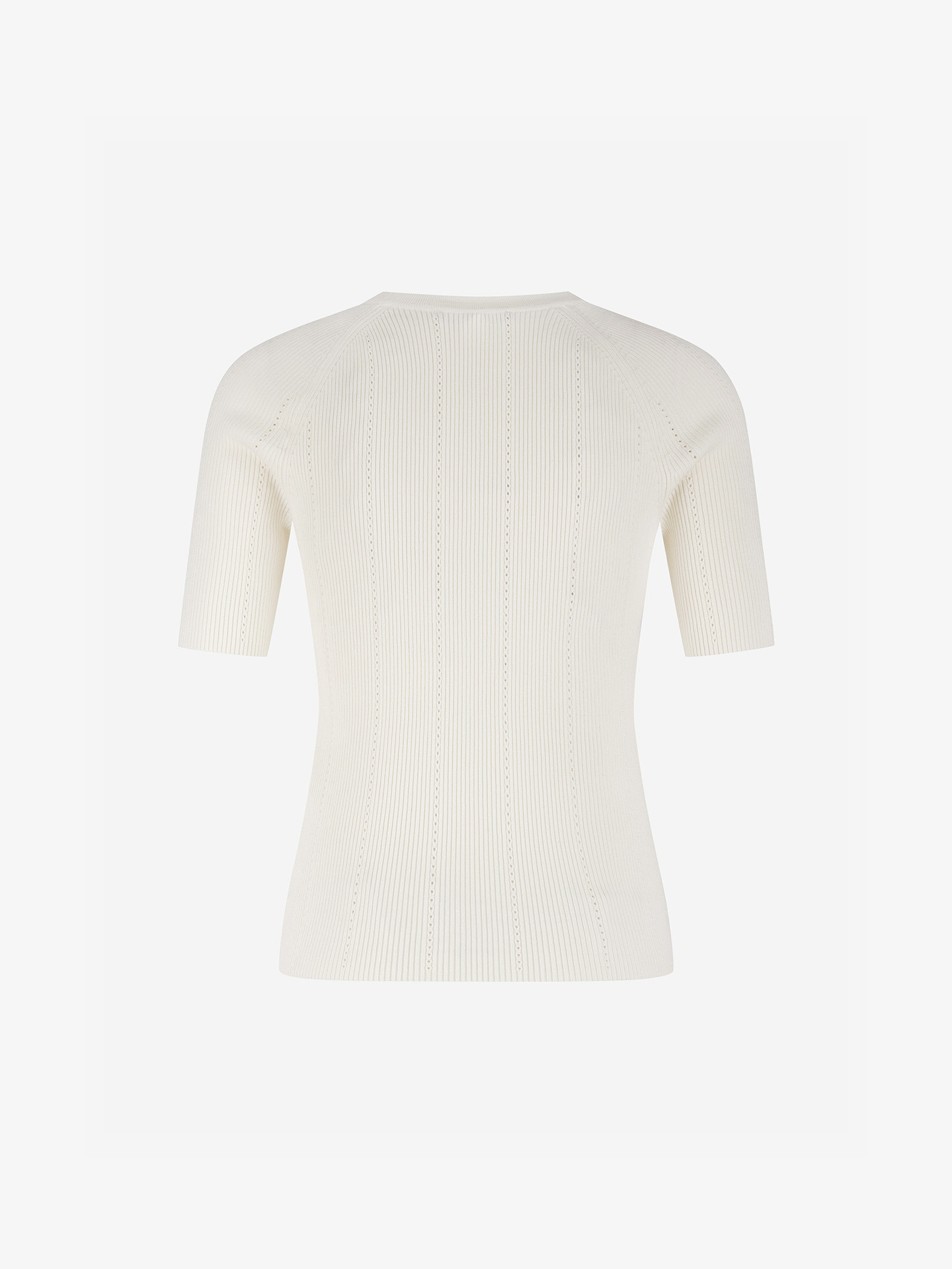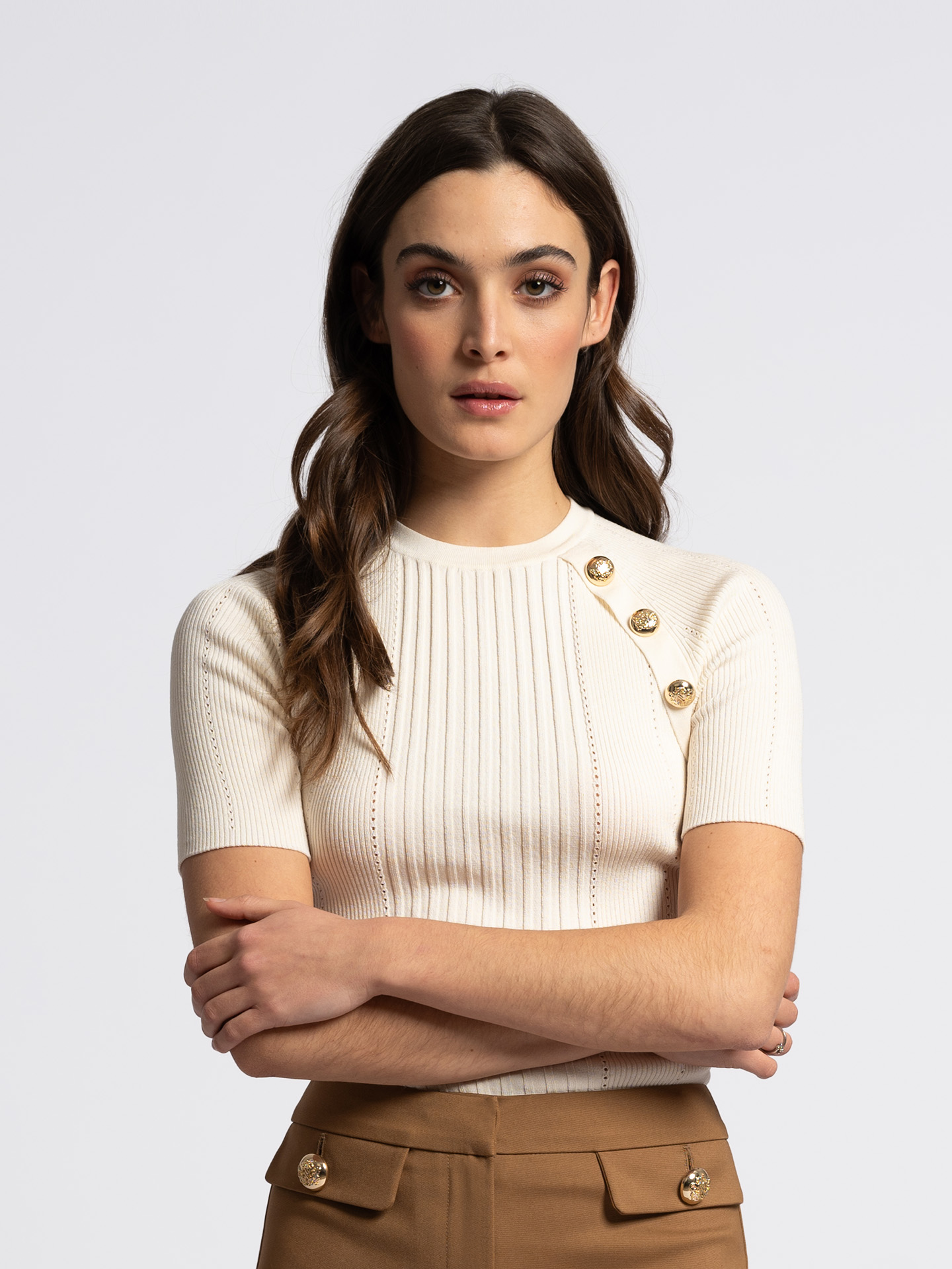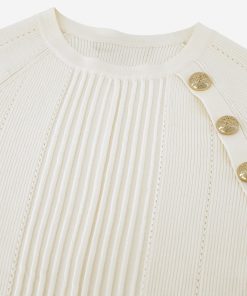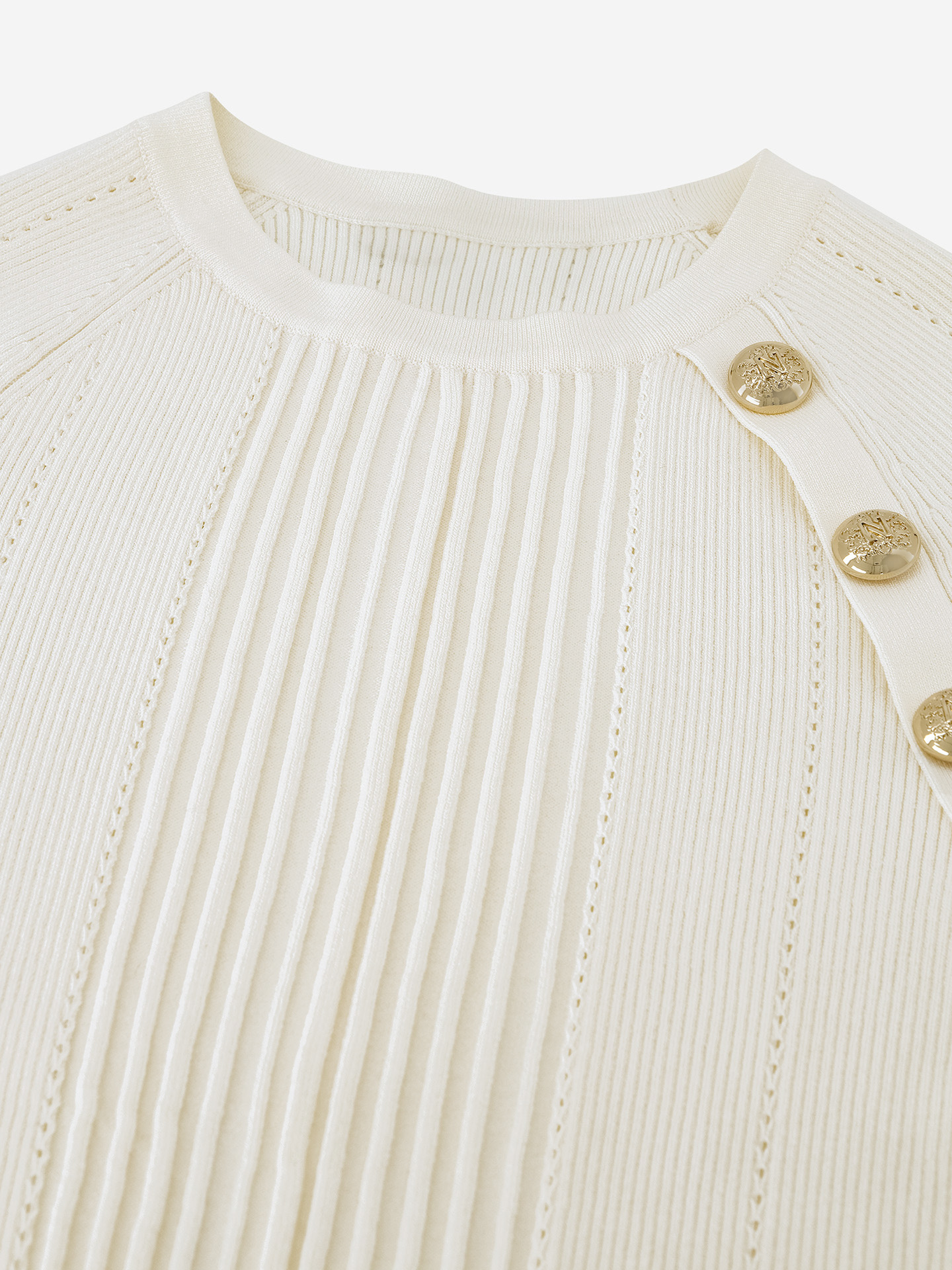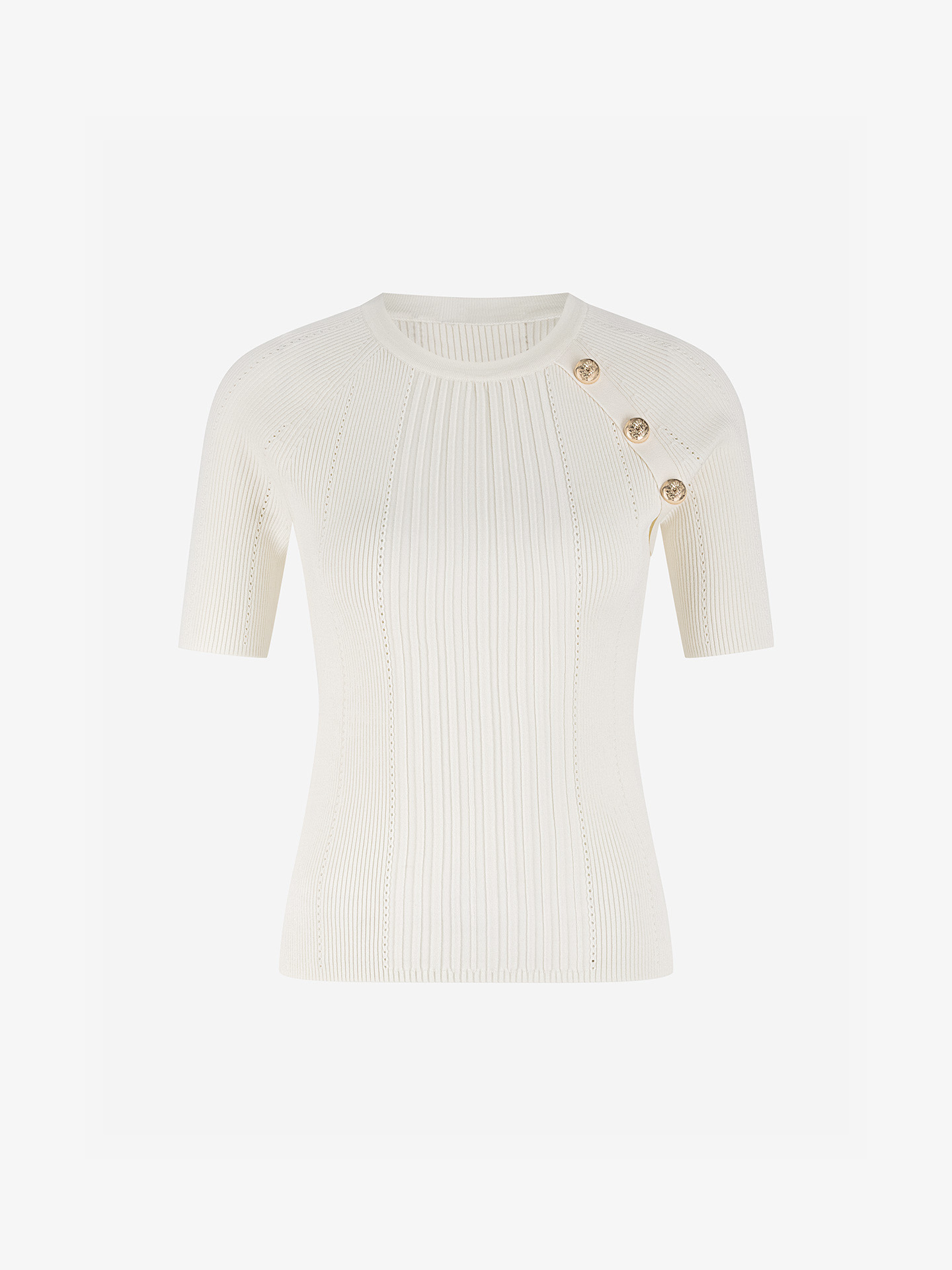Product descriptionKnitted top with a vertical ribbed texture, a round neckline, and button details.