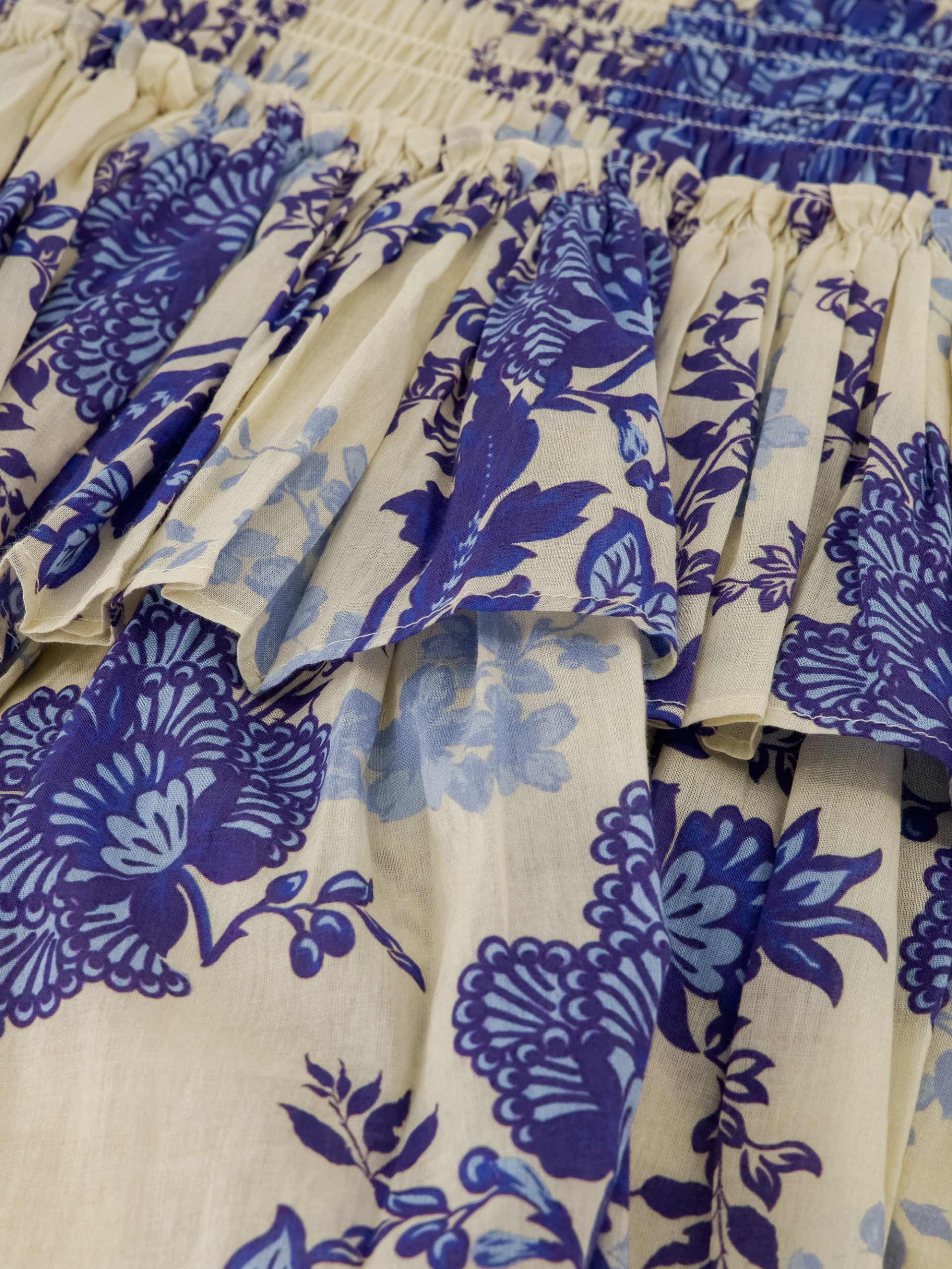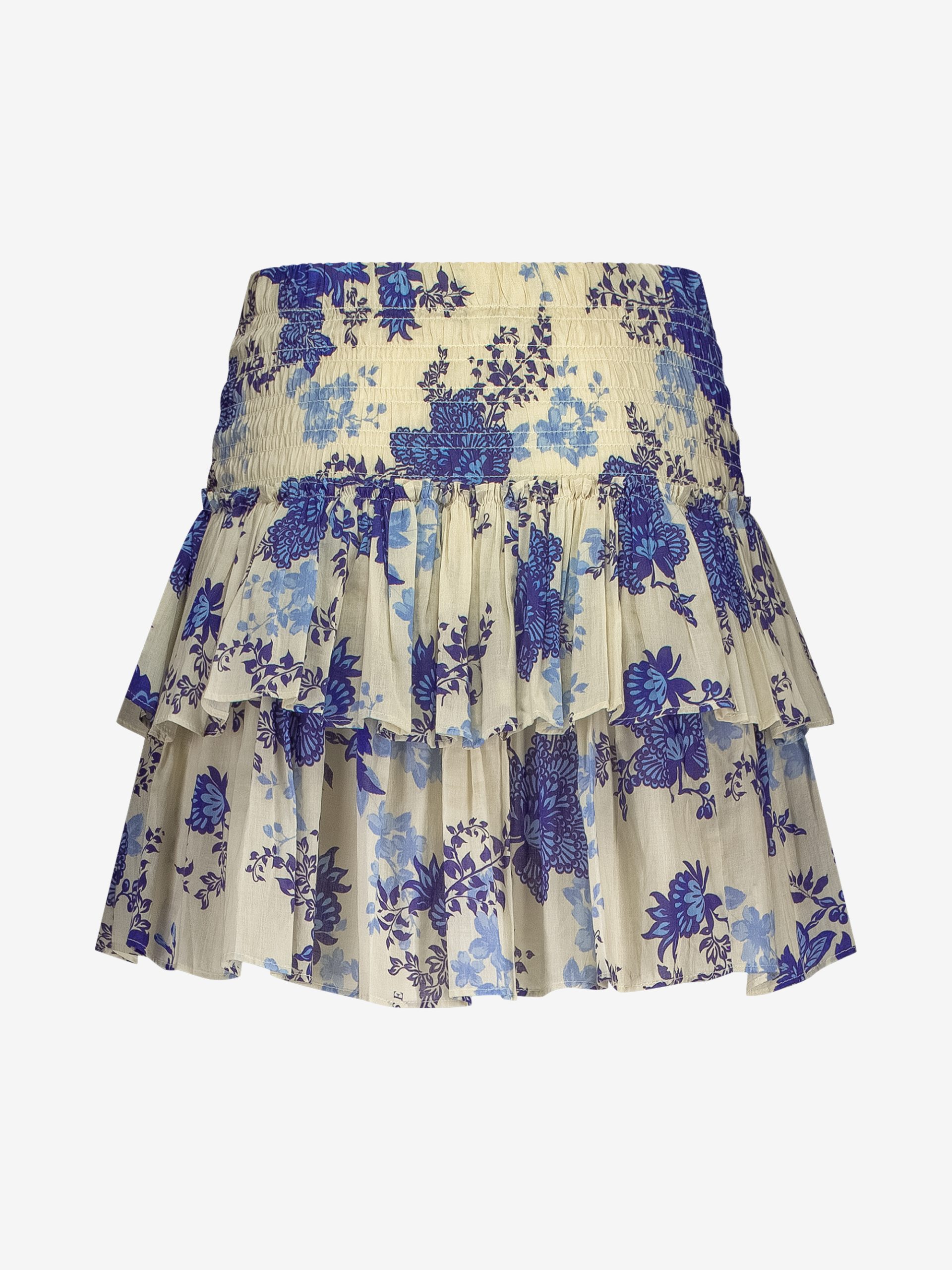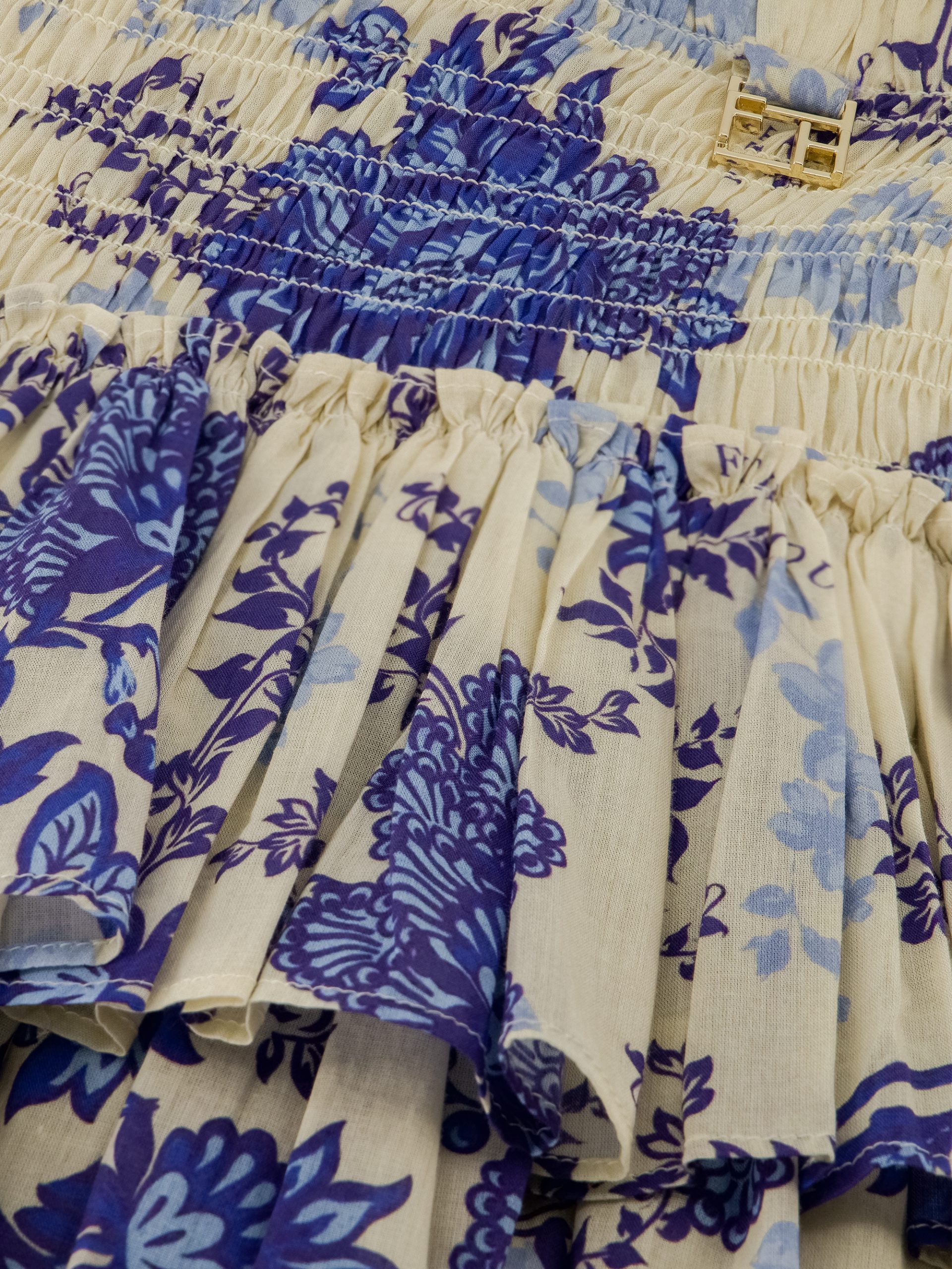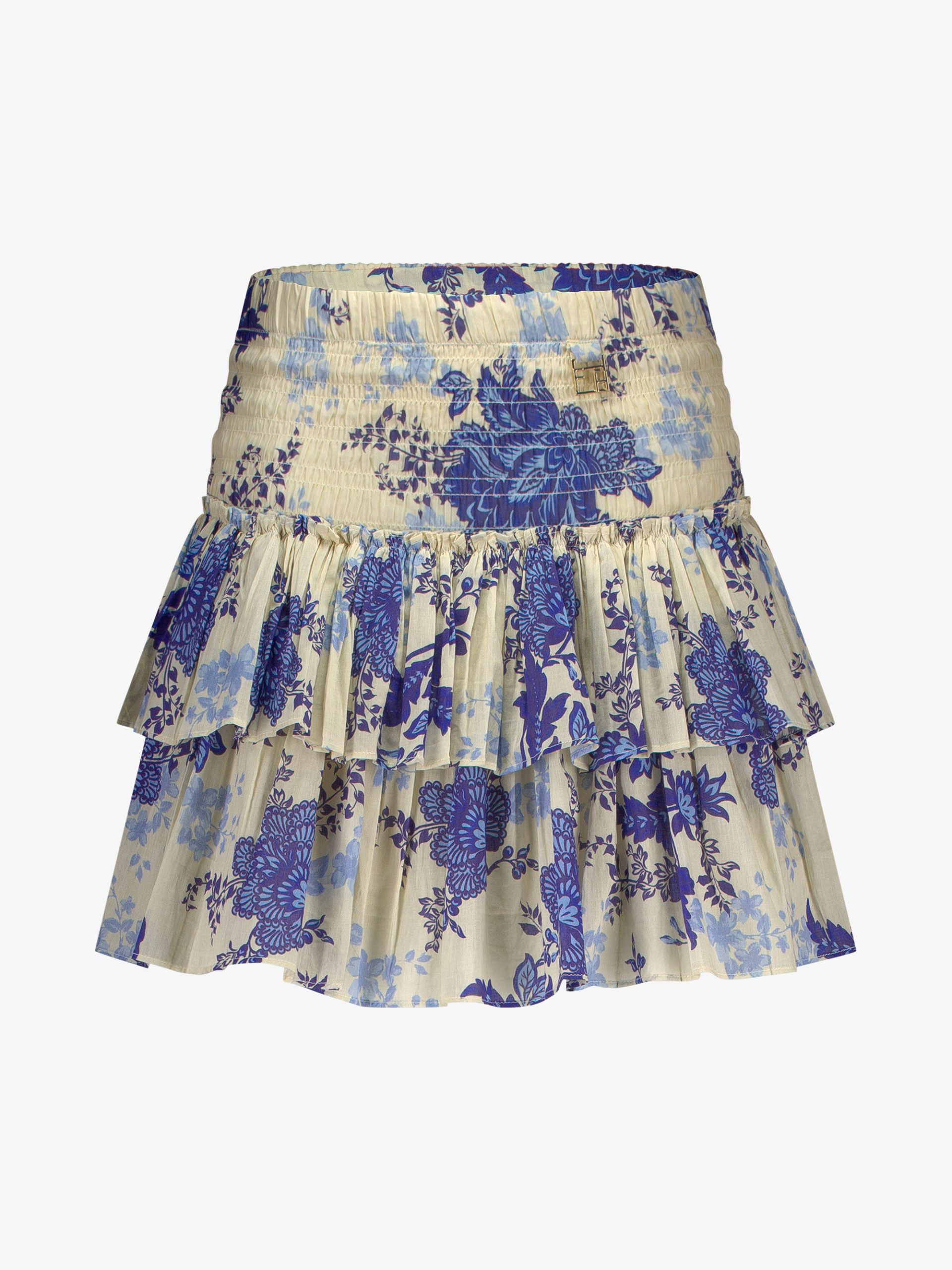 Product descriptionShort skirt with floral print, an elastic waistband with smocking and layers. The skirt has a subtle logo, a regular fit and lots of stretch.