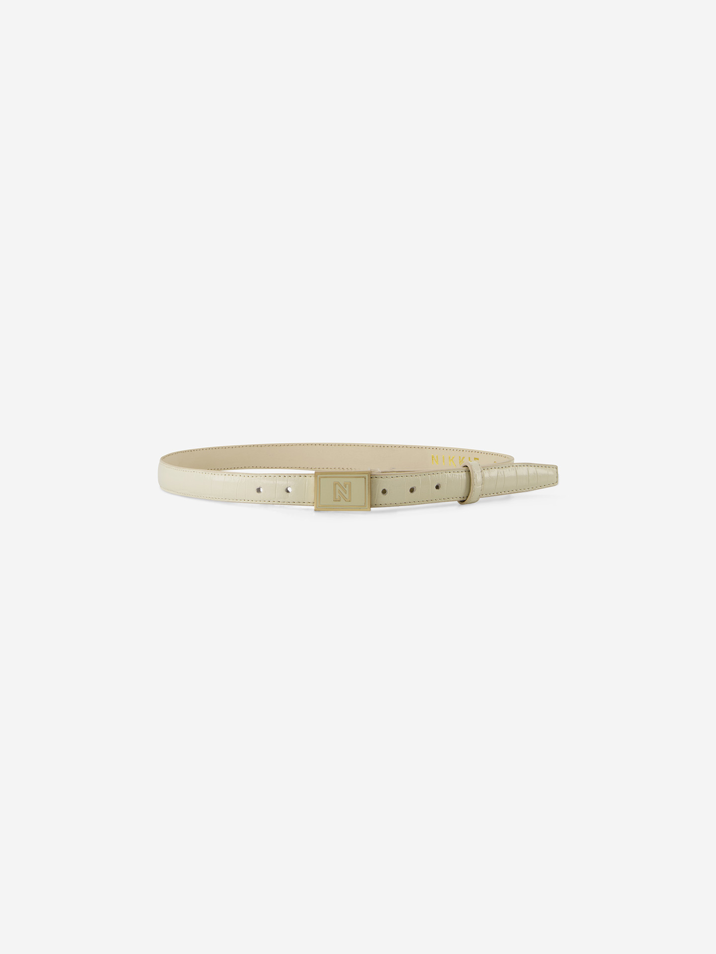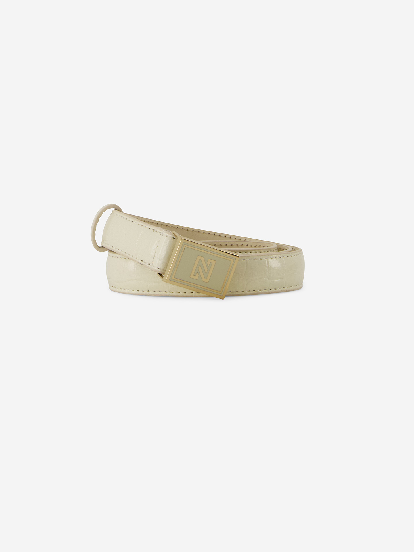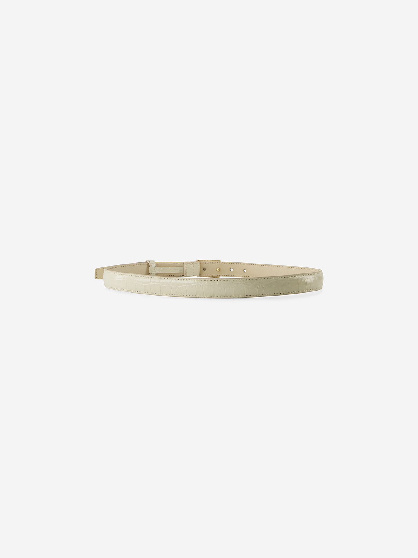 Product descriptionAdjustable hip belt made of 100% leather with a crocodile pattern. Slim fit and finished with a large metal buckle with logo.