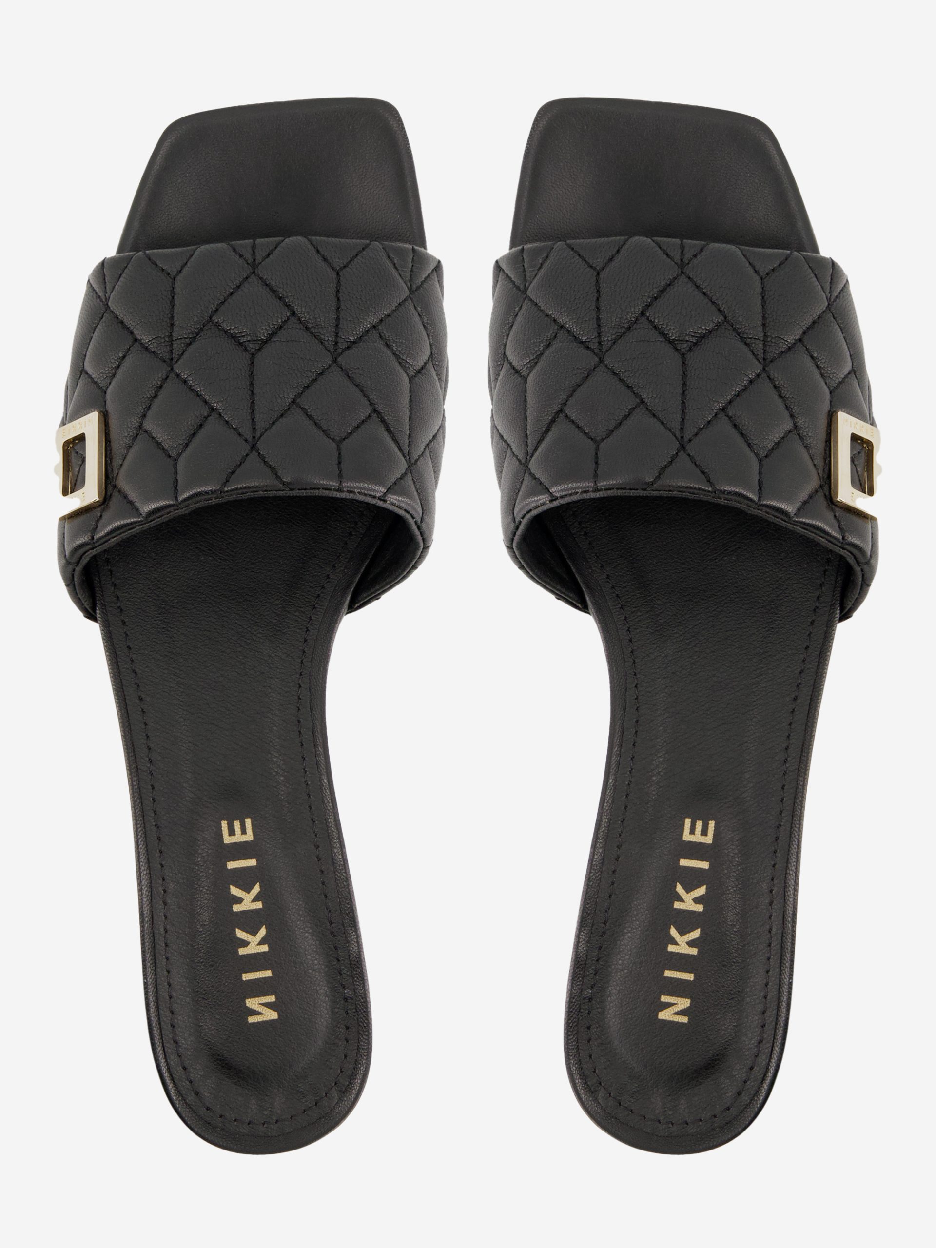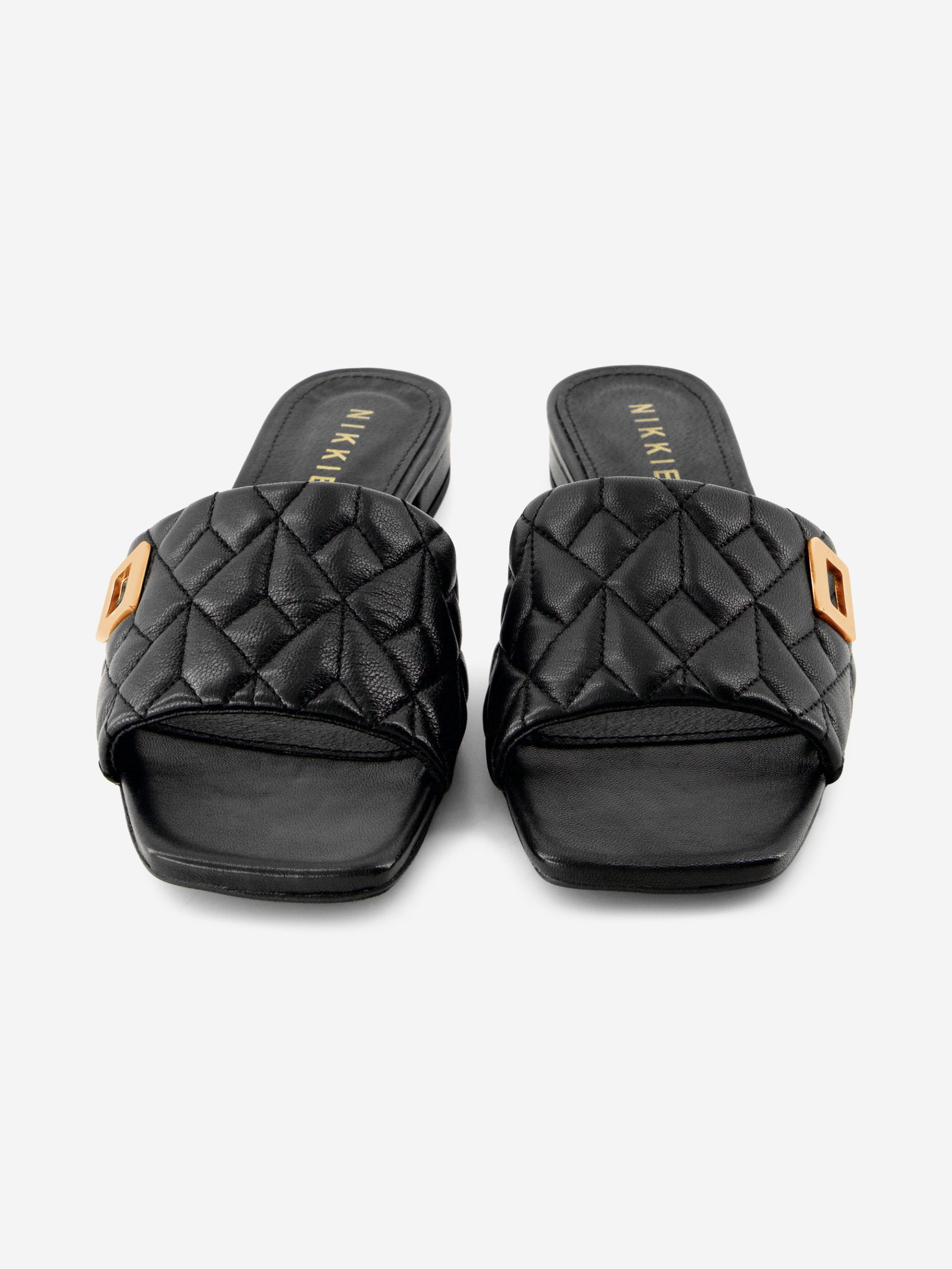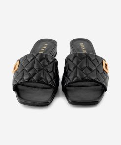 Product descriptionLeather sandal with a stitched, padded instep strap, a square toe and a low block heel.