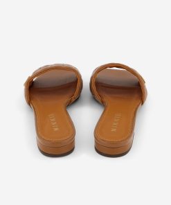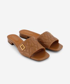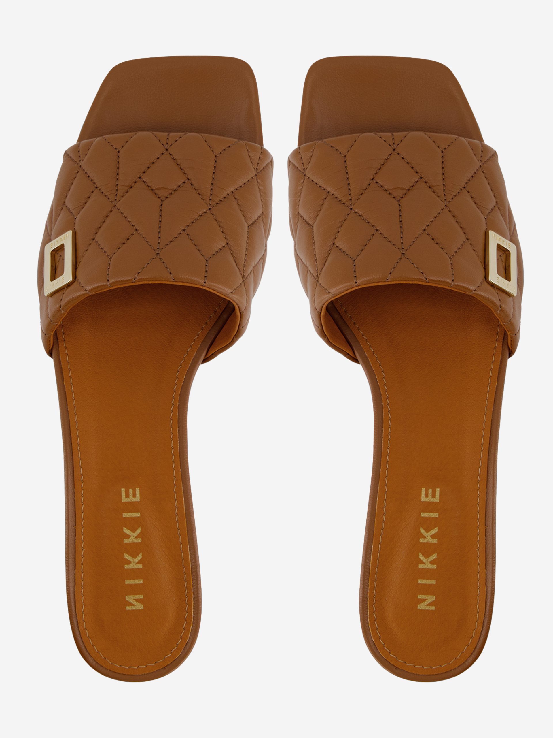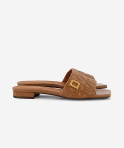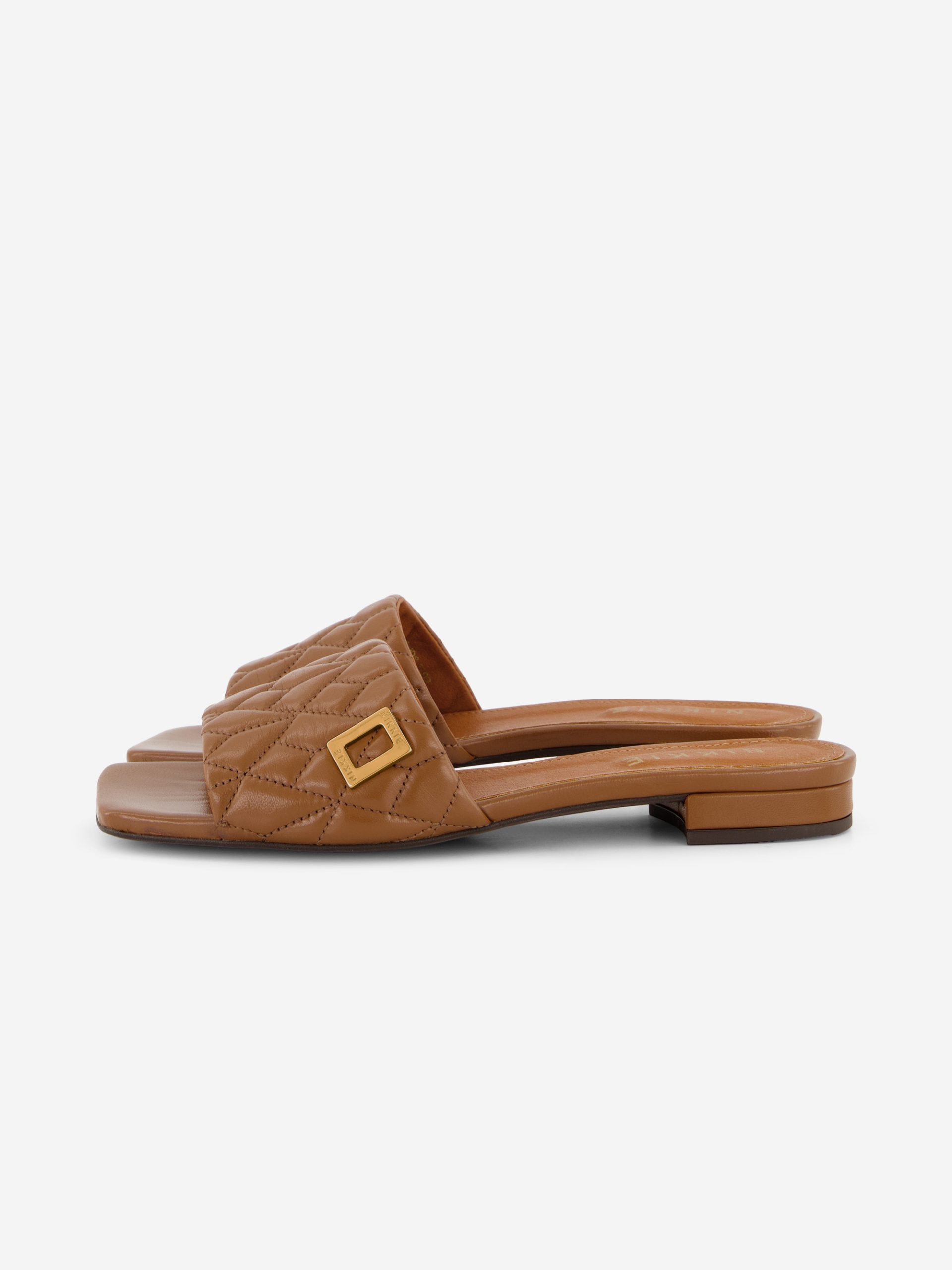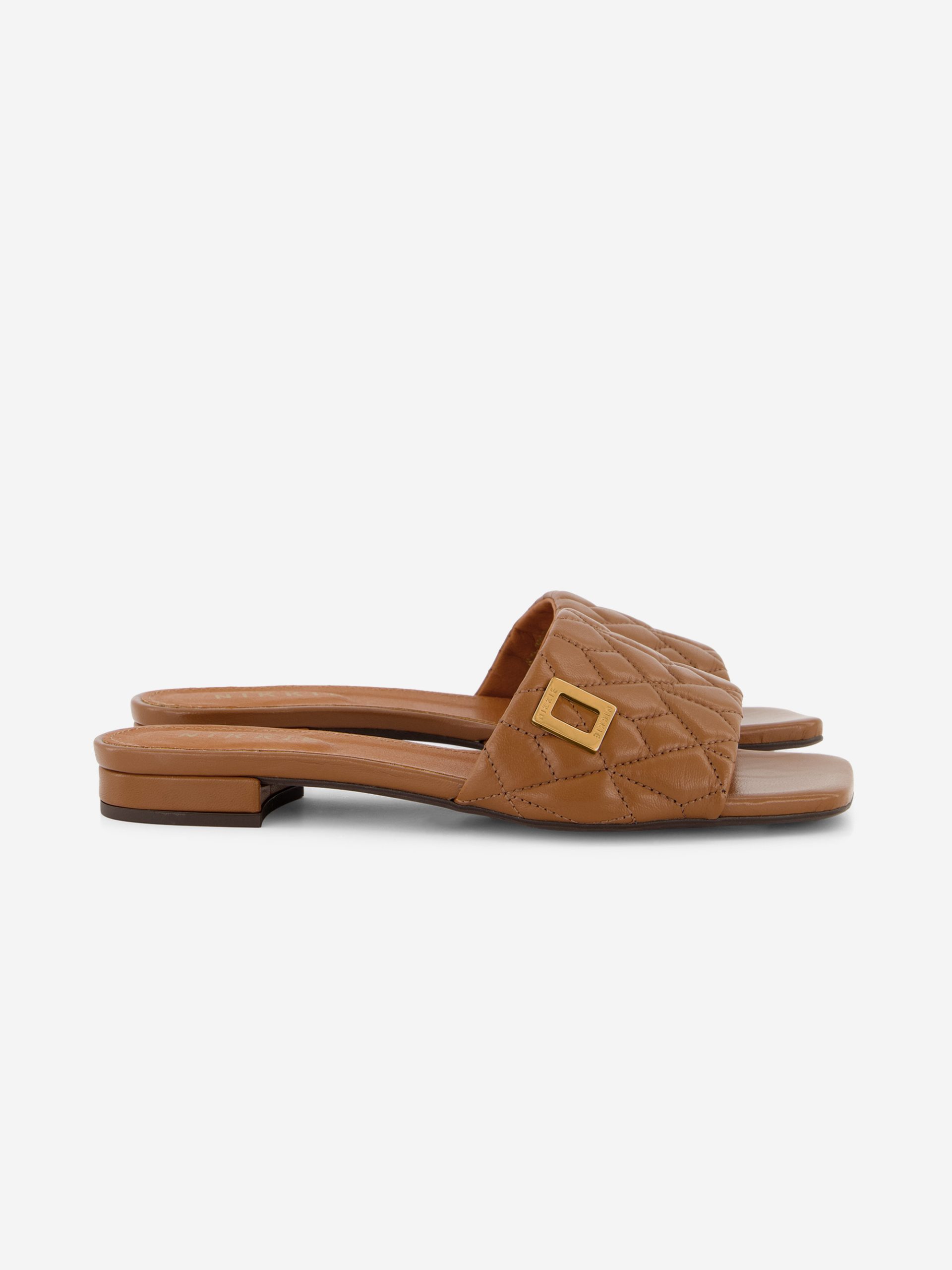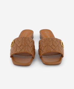 Product descriptionLeather sandal with a stitched, padded instep strap, a square toe and a low block heel.