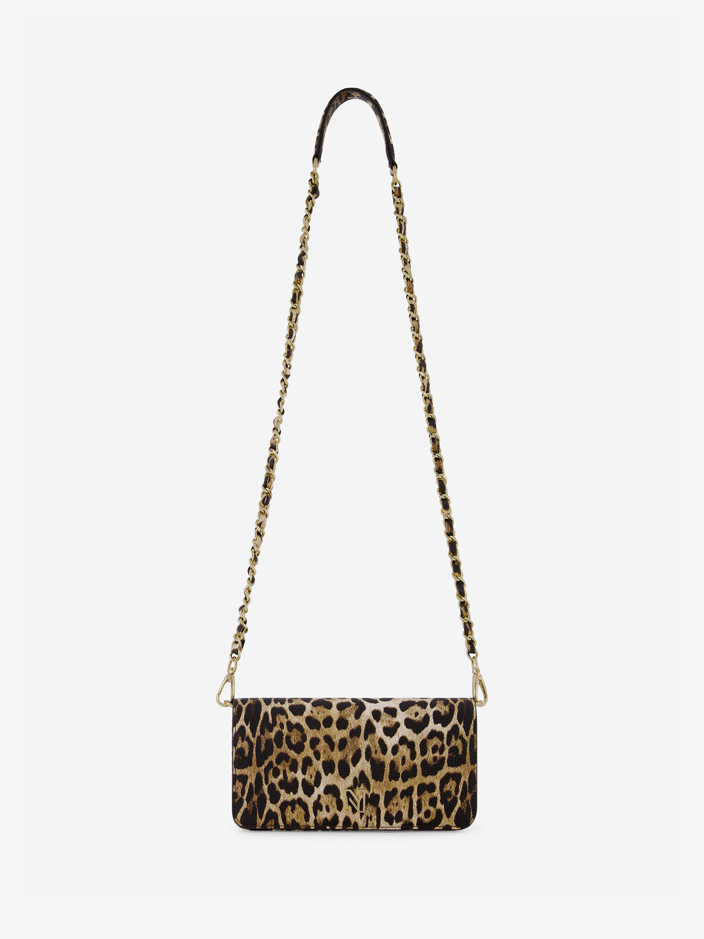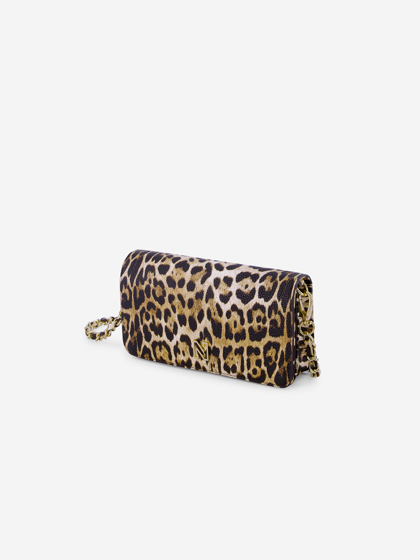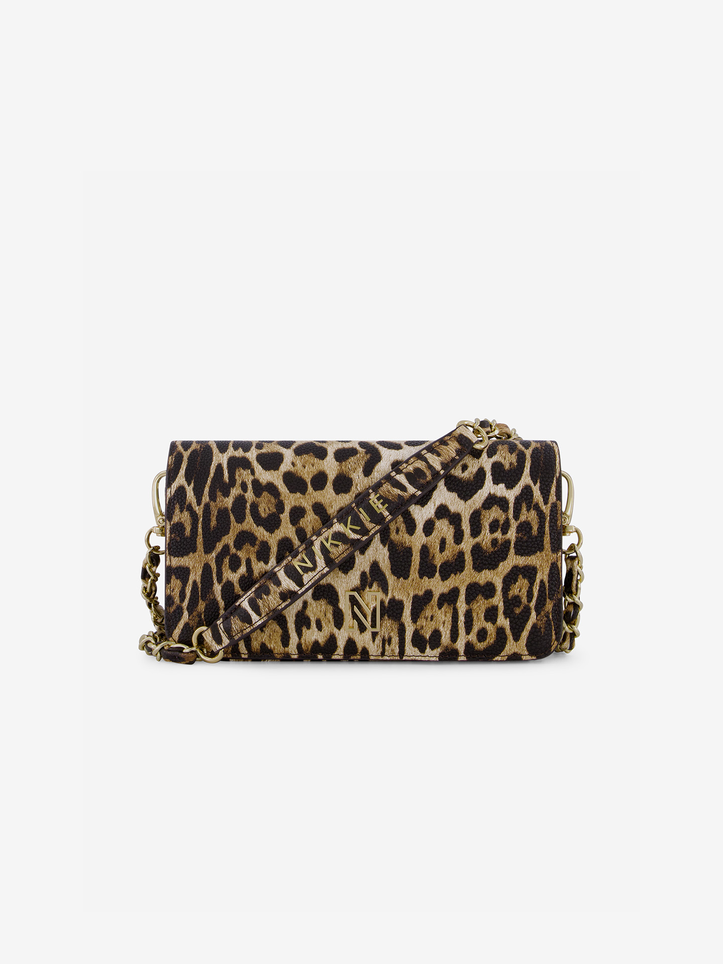 Product descriptionLeopard print shoulder bag with a detachable chain strap, NIKKIE logo, and a flap.